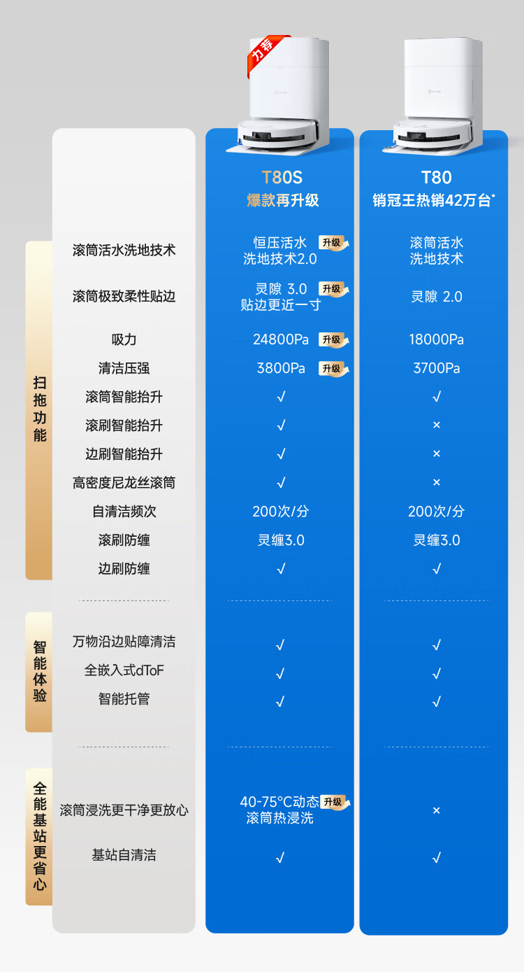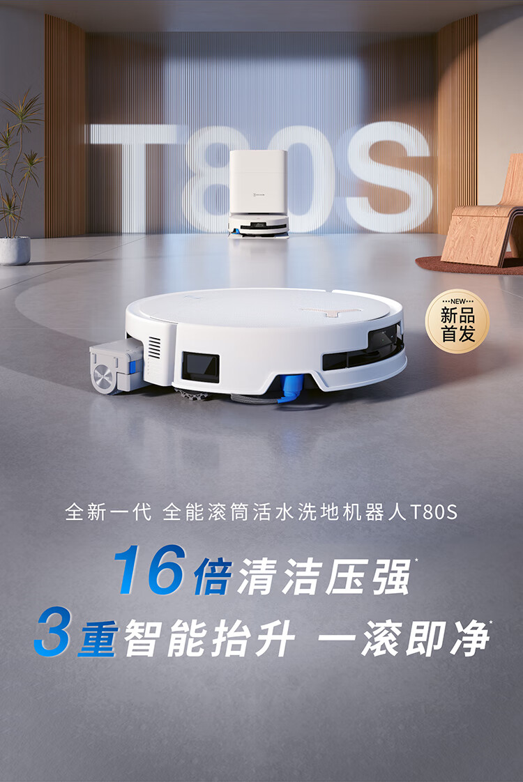 科沃斯T80S PRO滚筒洗地机器人扫拖一体自动清洁白色上下水版 扫地机器人DEX62【国家补贴】
