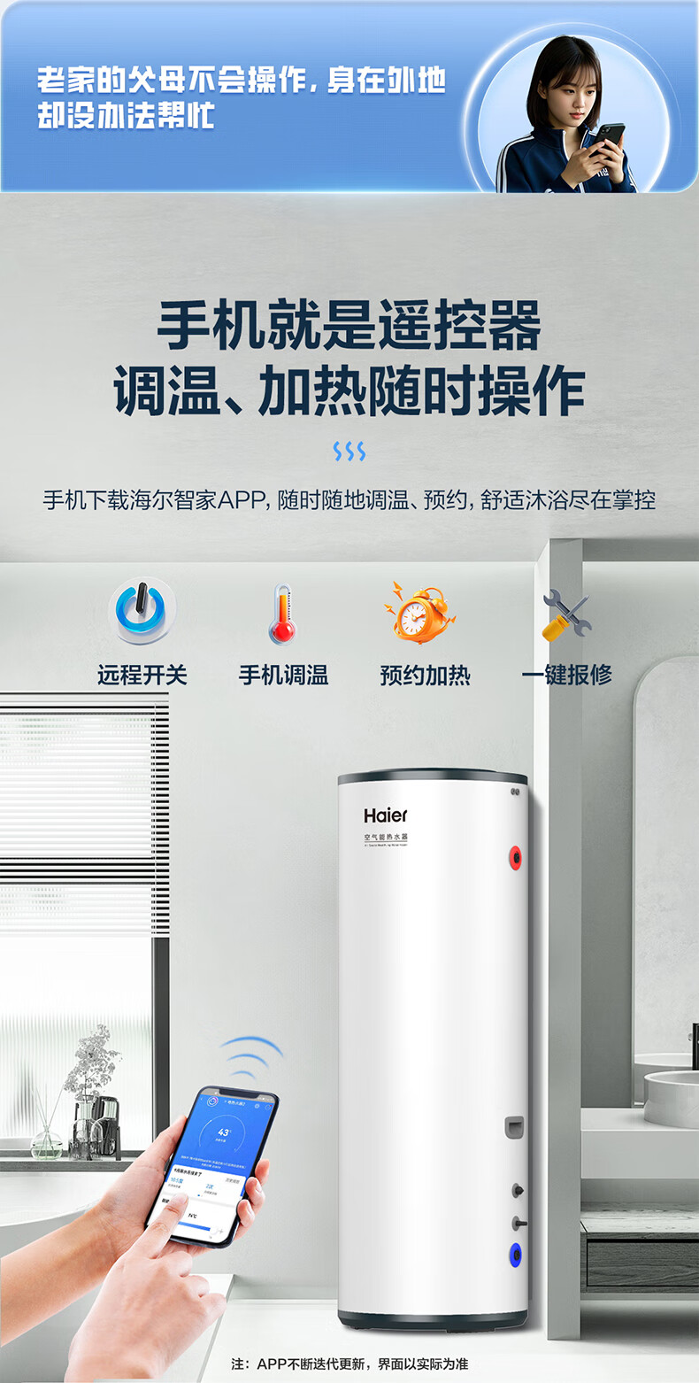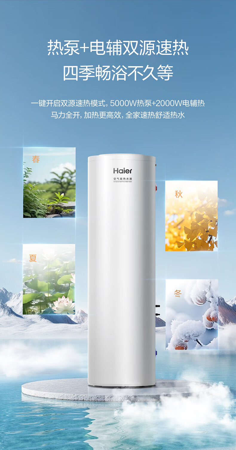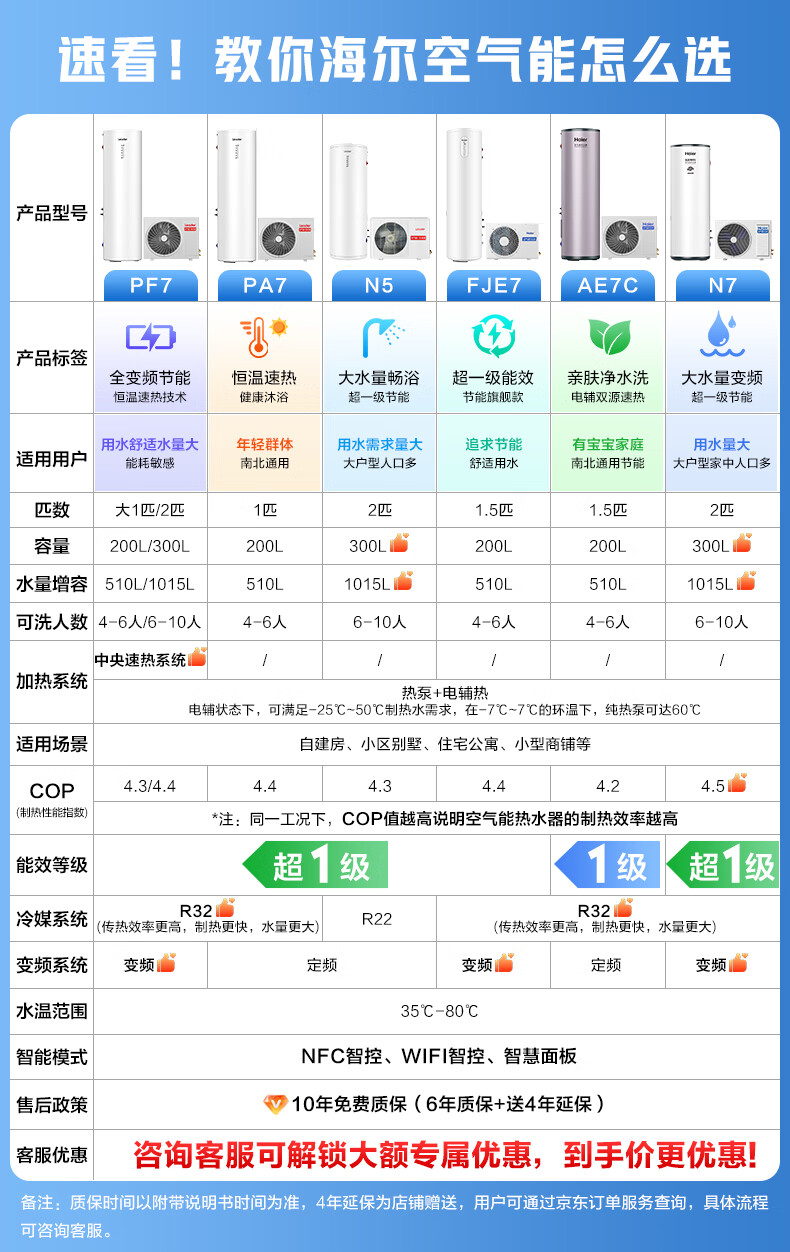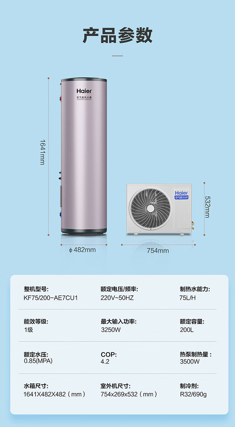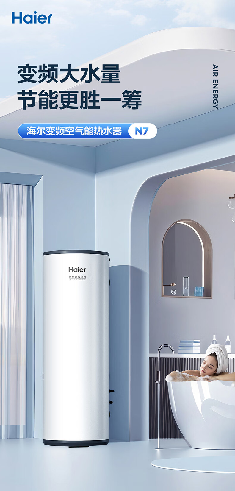 海尔(Haier)智家出品 【咨询客服领补贴】空气能热水器超一级能效PF7南北通用热水器节能以旧换新【10年质保】 【200L PF7】统帅-全变频节能超省电