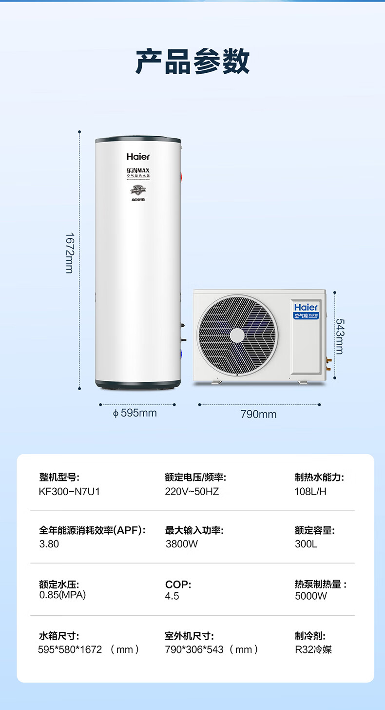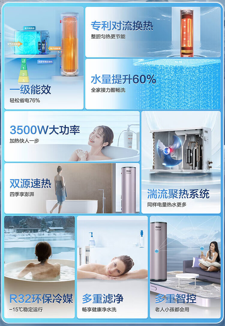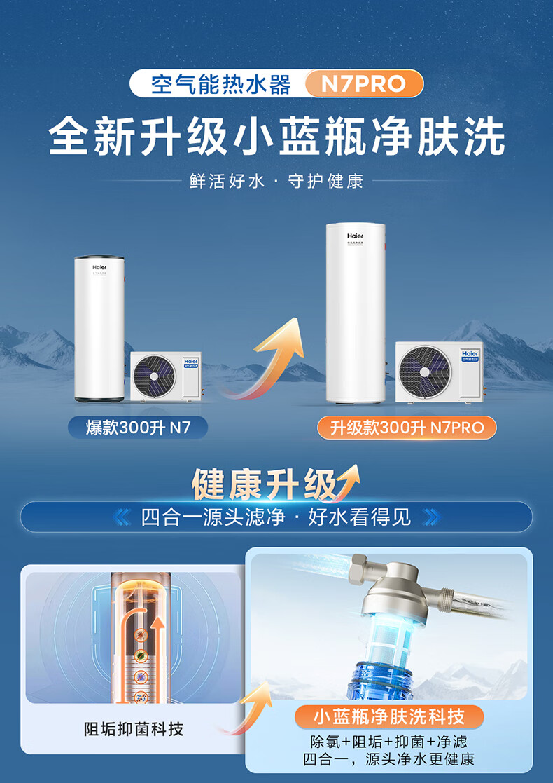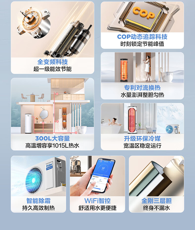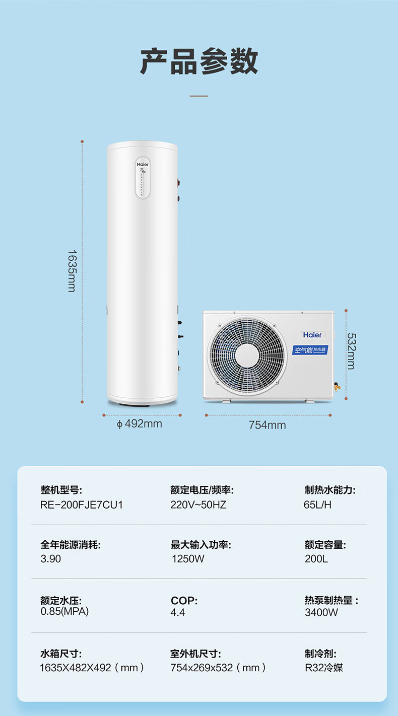 海尔(Haier)智家出品 【咨询客服领补贴】空气能热水器超一级能效PF7南北通用热水器节能以旧换新【10年质保】 【200L PF7】统帅-全变频节能超省电