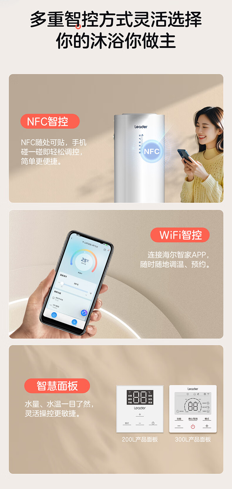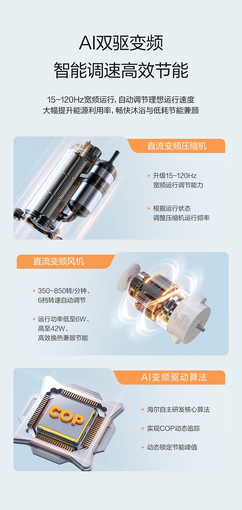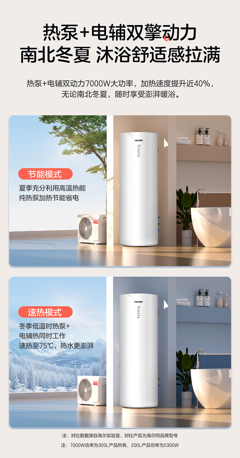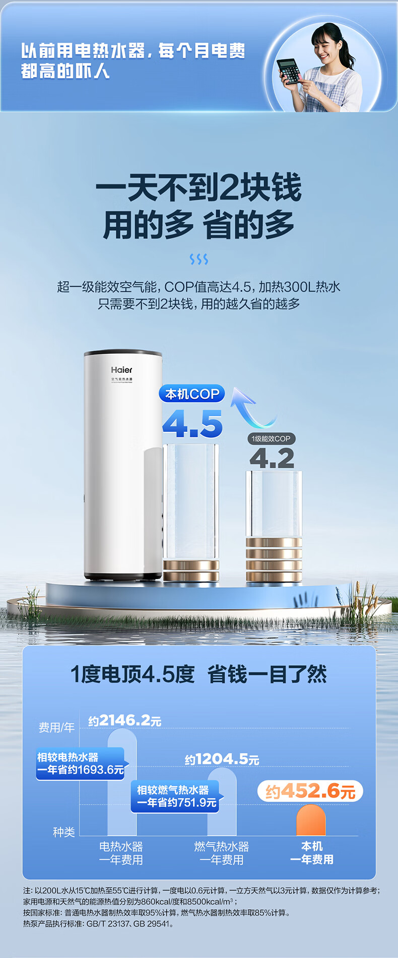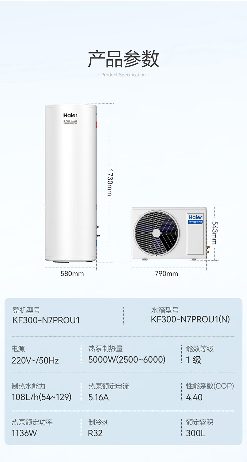 海尔(Haier)智家出品 【咨询客服领补贴】空气能热水器超一级能效PF7南北通用热水器节能以旧换新【10年质保】 【200L PF7】统帅-全变频节能超省电