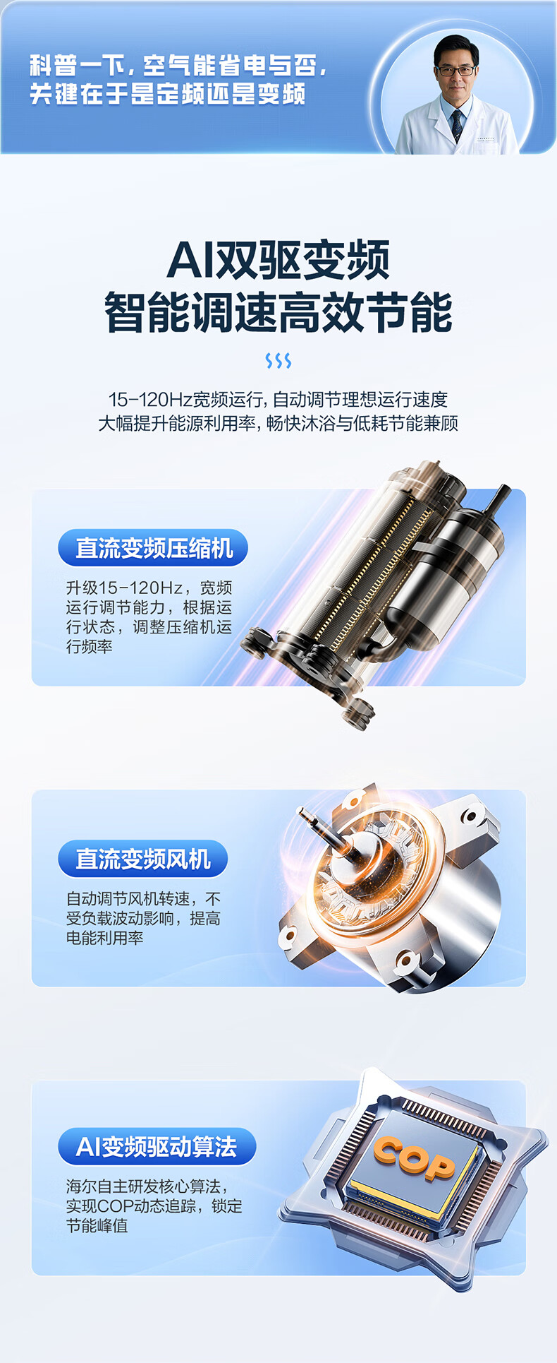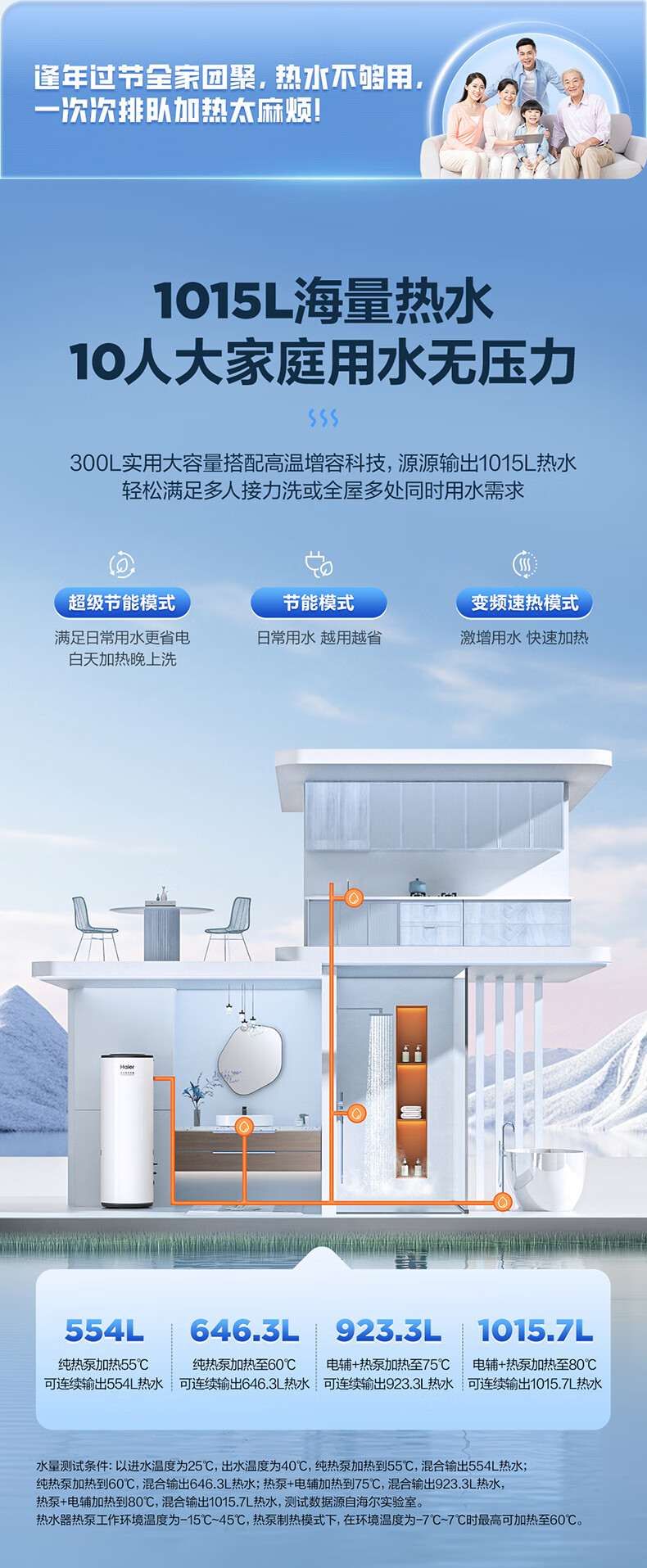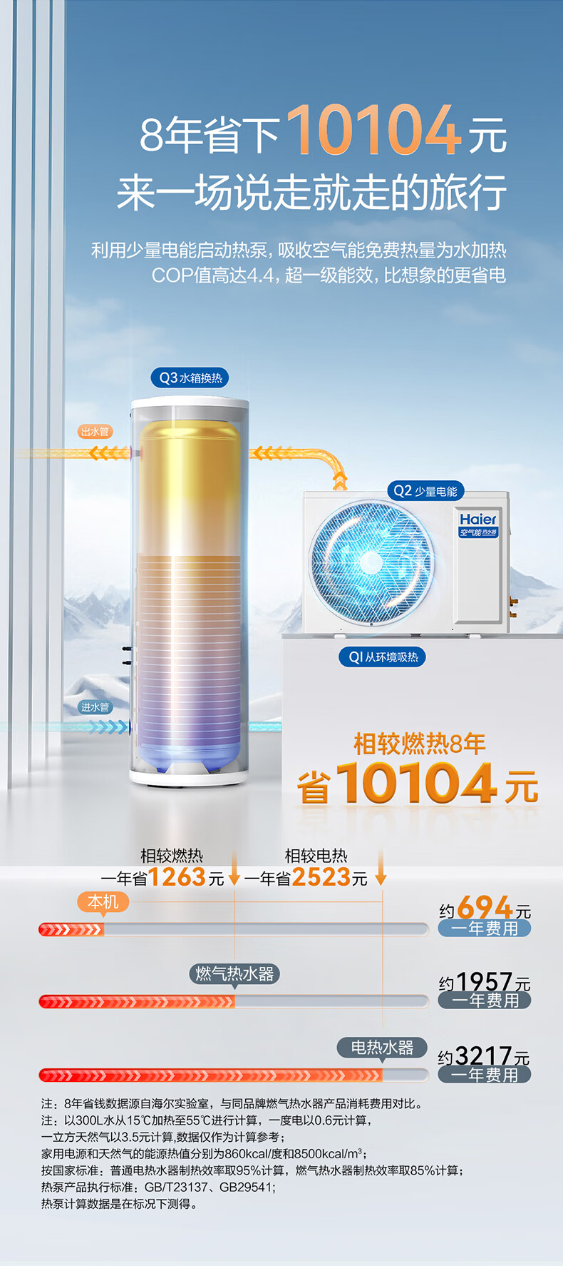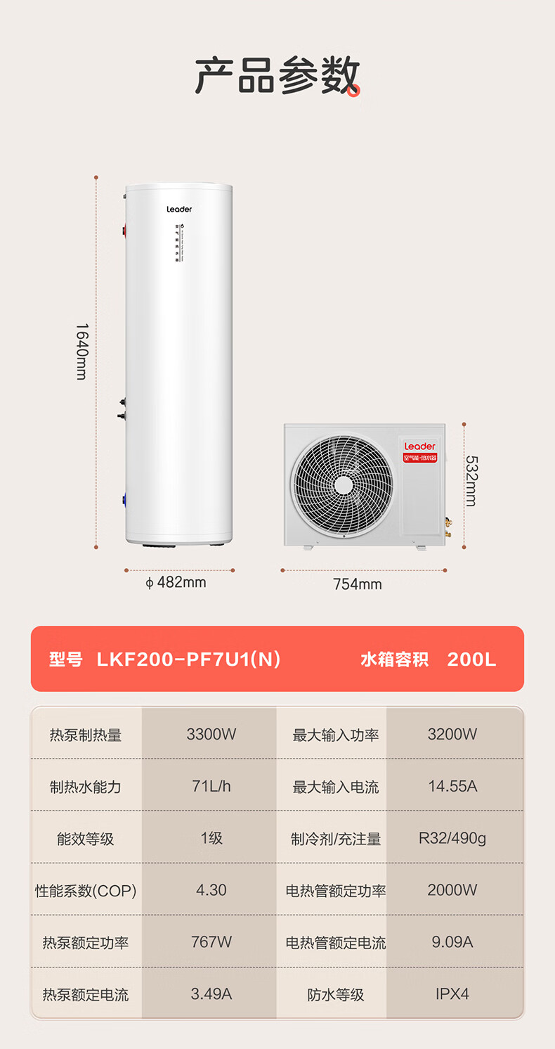 海尔(Haier)智家出品 【咨询客服领补贴】空气能热水器超一级能效PF7南北通用热水器节能以旧换新【10年质保】 【200L PF7】统帅-全变频节能超省电