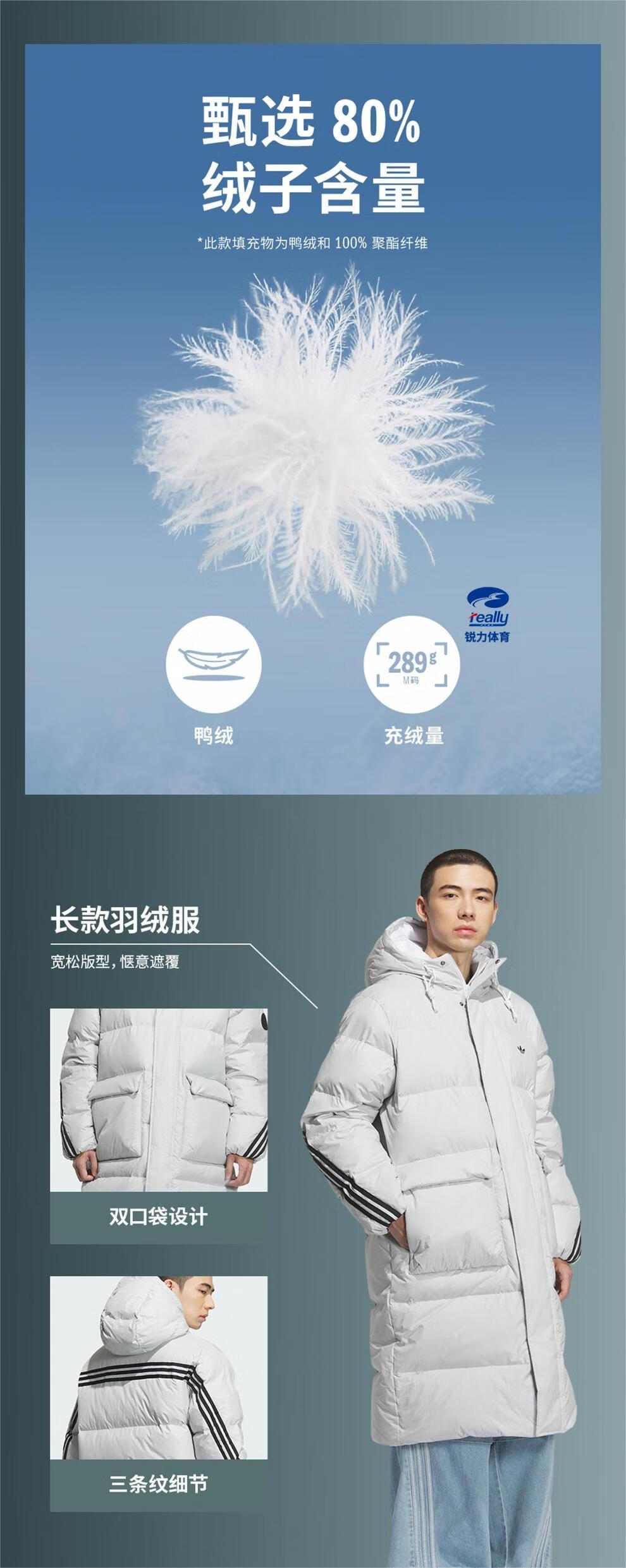 阿迪达斯(adidas)三叶草男女中性3S LONG DOWN U冬季运动休闲羽绒服KC2566 KC2566 XS