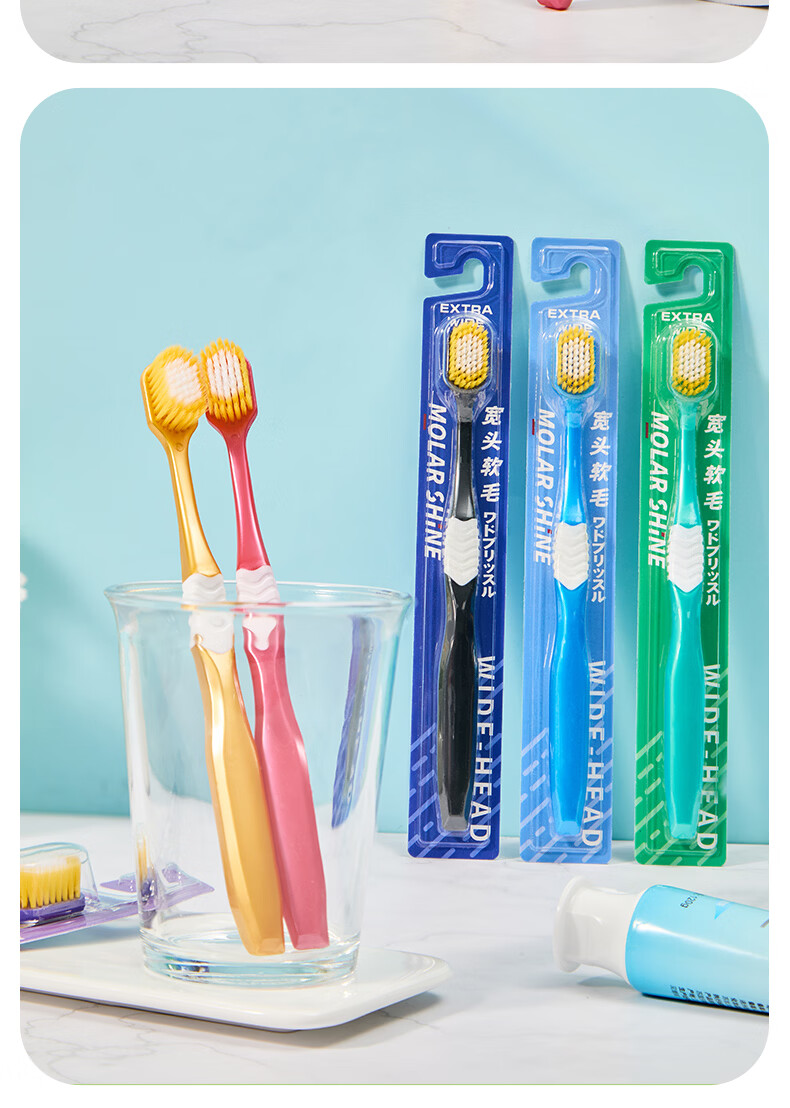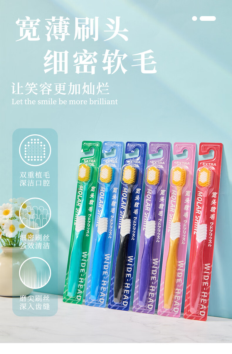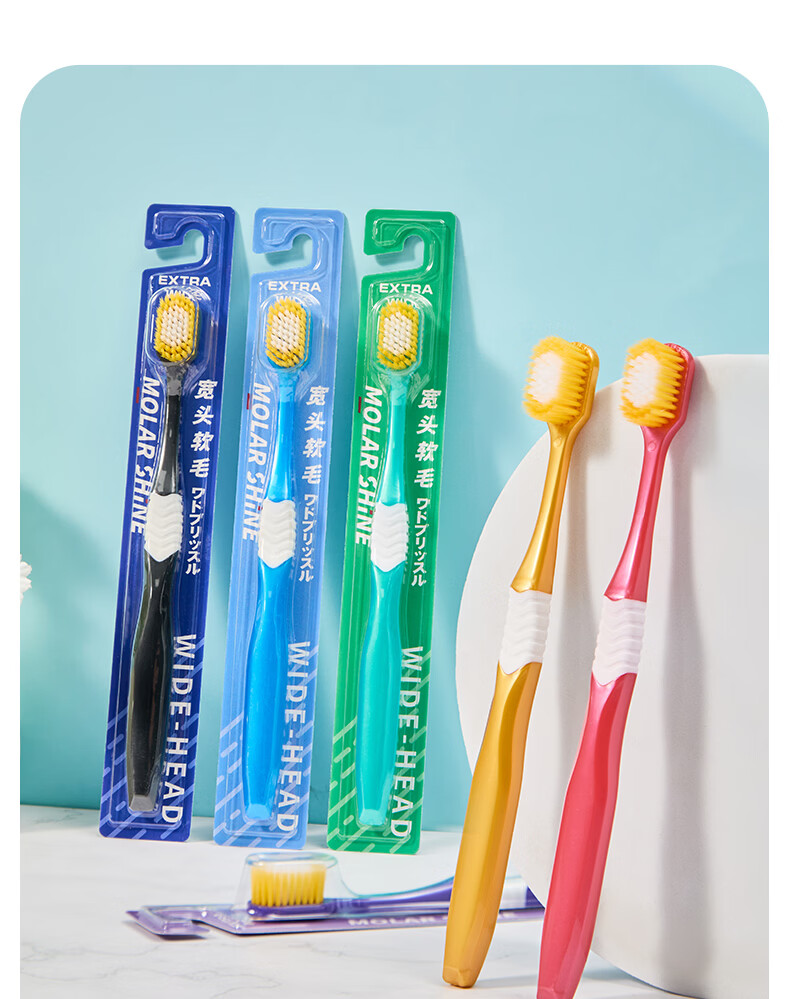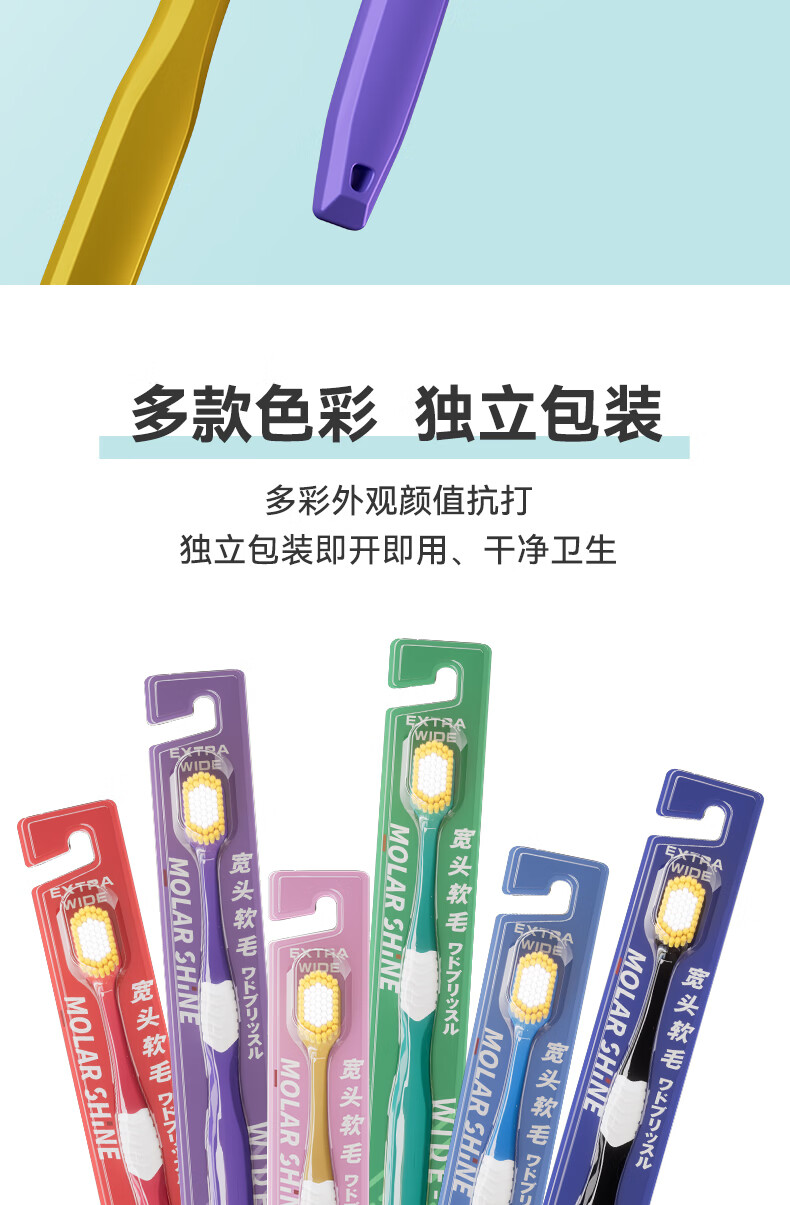 沐暄日式65孔宽幅大头软毛牙刷成人情侣适用独立包装多种色彩随意更换 81款65孔牙刷 10支 吸塑装