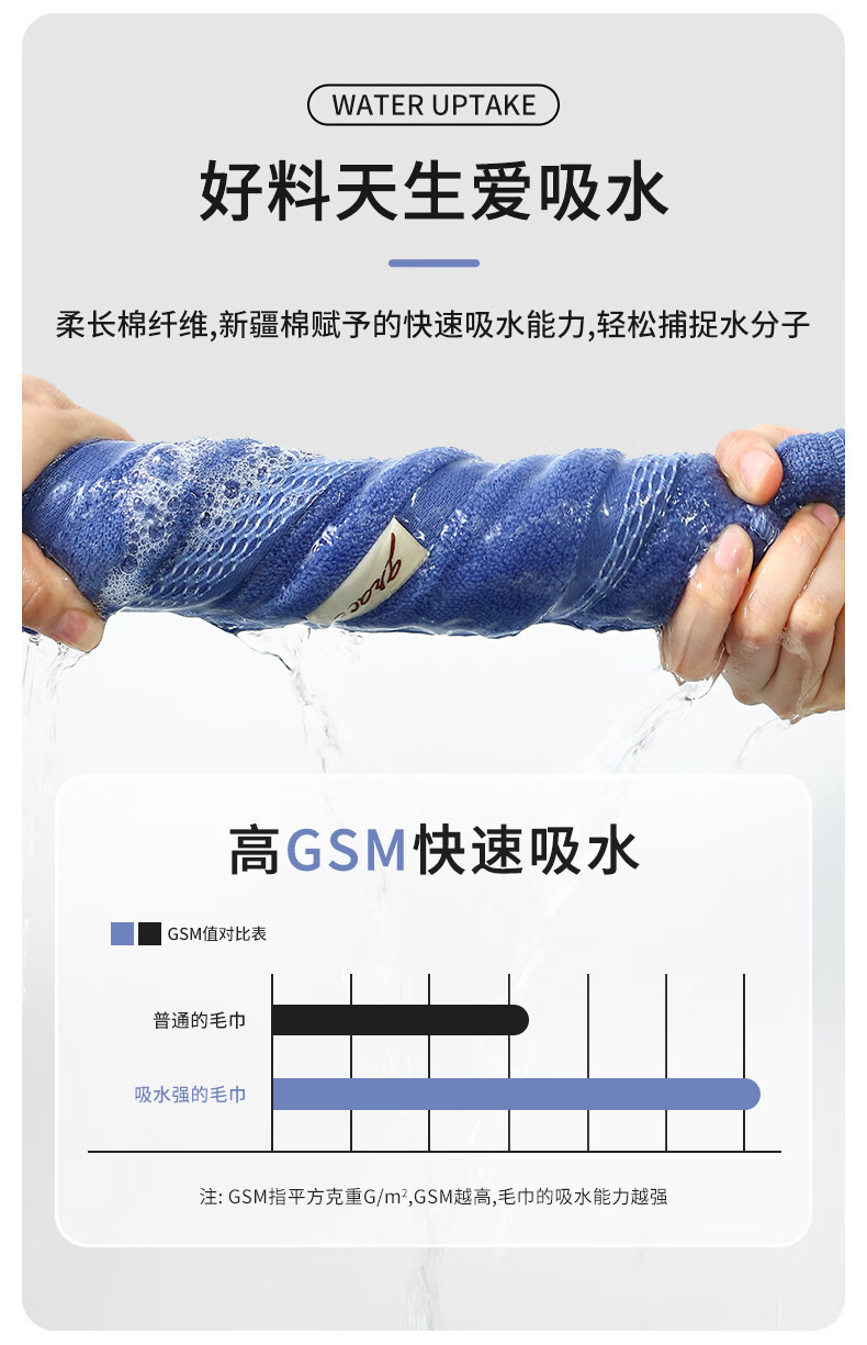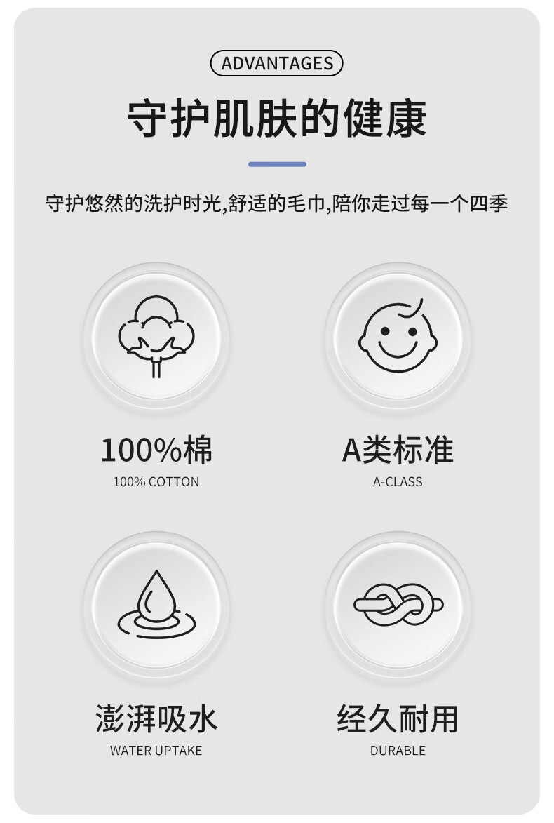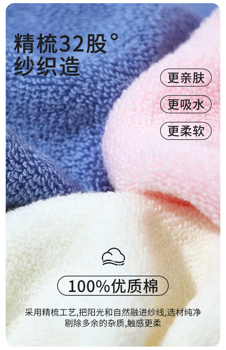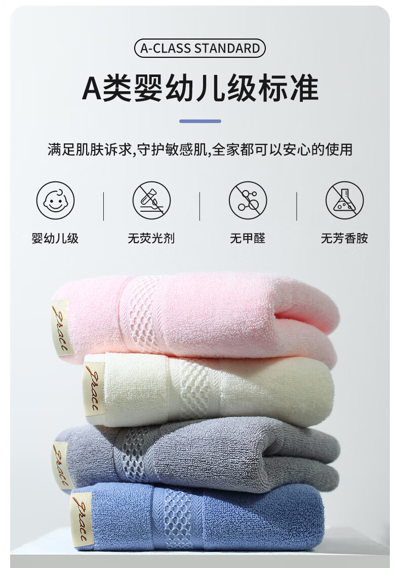 无印良品毛巾2条装7A级抗菌加厚柔软强力吸水不易掉毛A类高档擦脸大毛巾