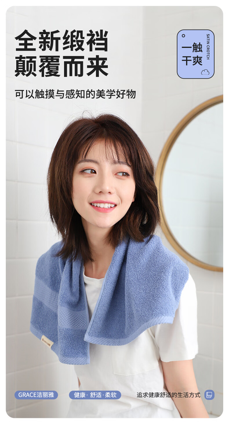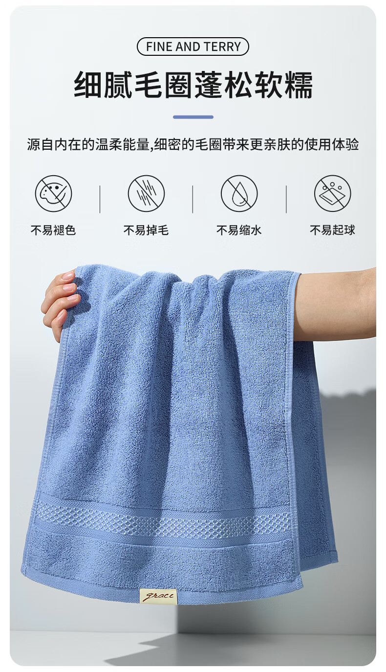 洁丽雅(Grace)新疆长绒棉毛巾4条装 纯棉A类洗脸大面巾洗澡家用柔软吸水