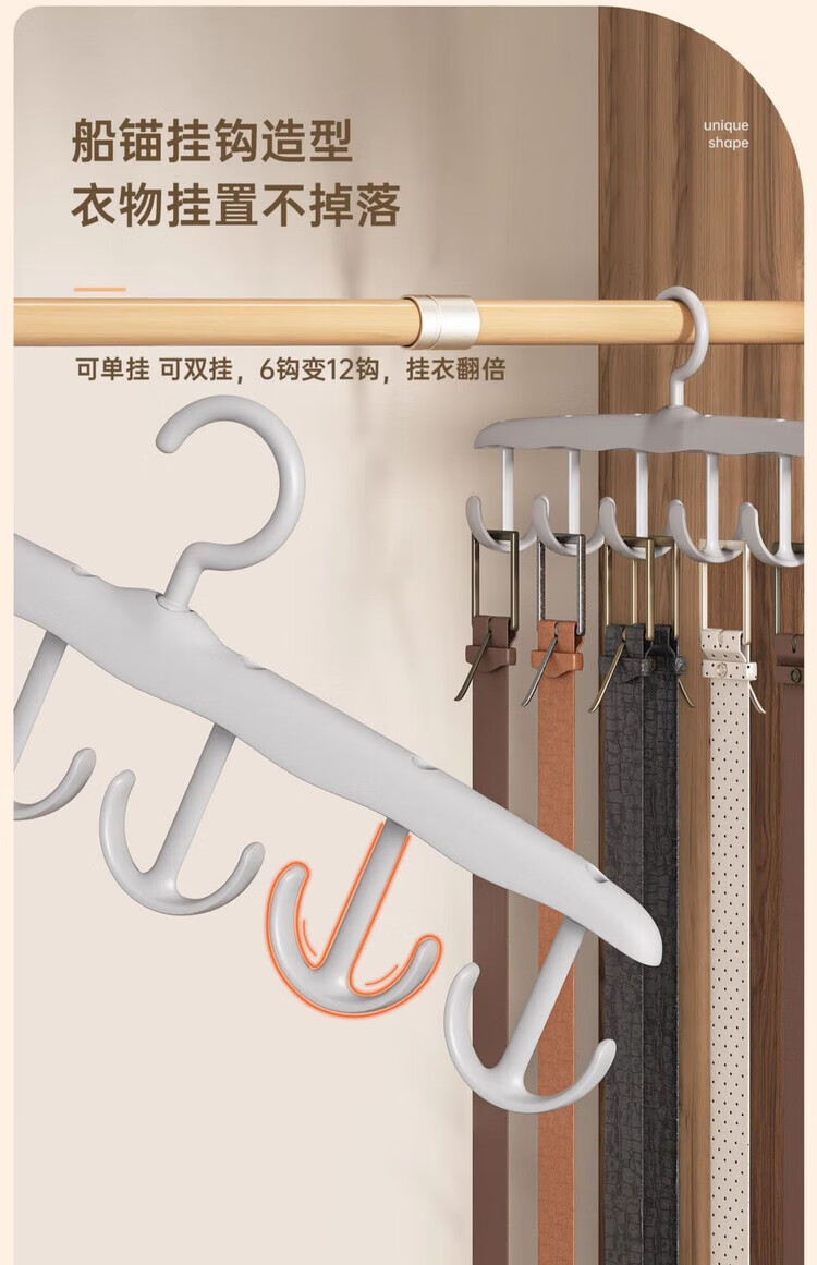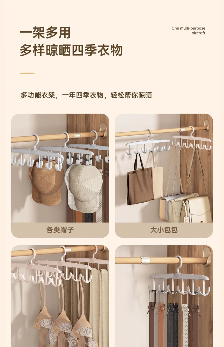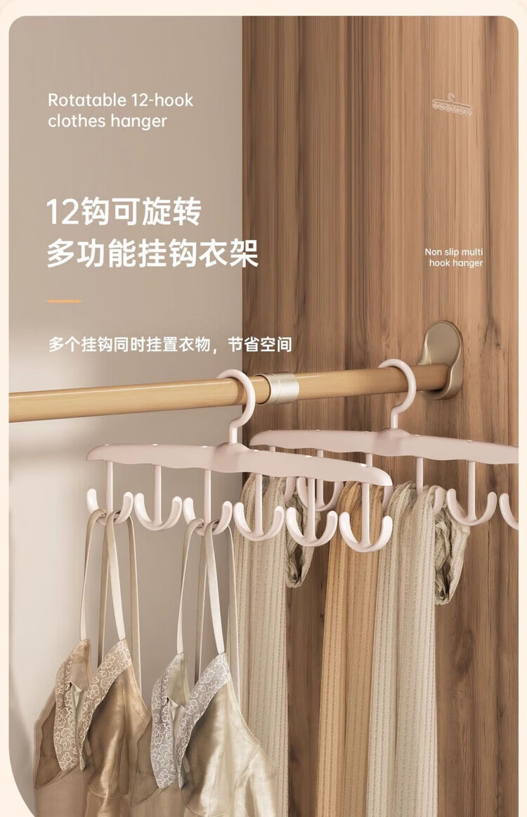 晾衣架可旋转多功能吊带钩收纳架挂钩高档十二钩衣架 吊带衣架【1个】