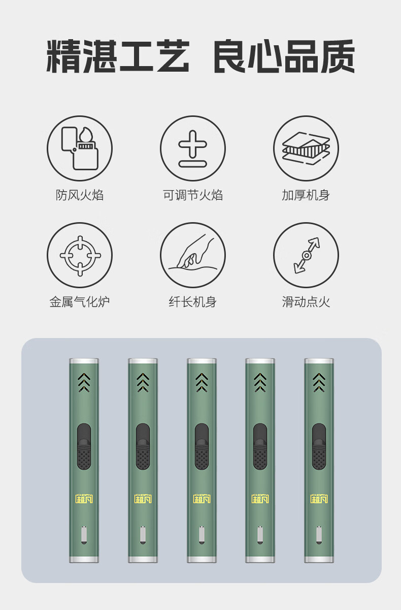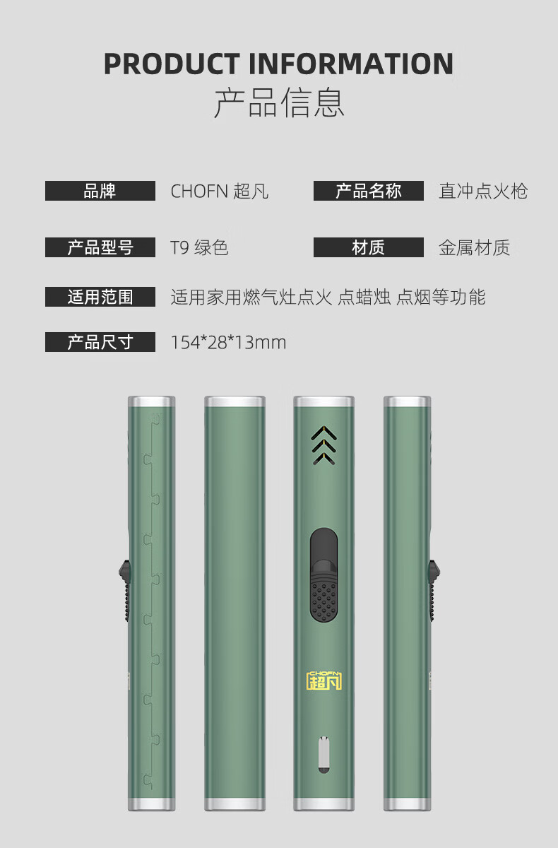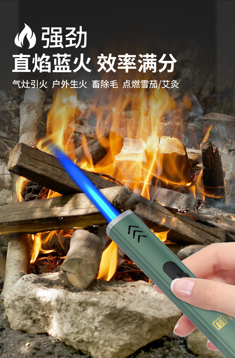超凡点火器燃气灶喷枪防风打火机户外点火神器艾灸点火棒 绿色1支