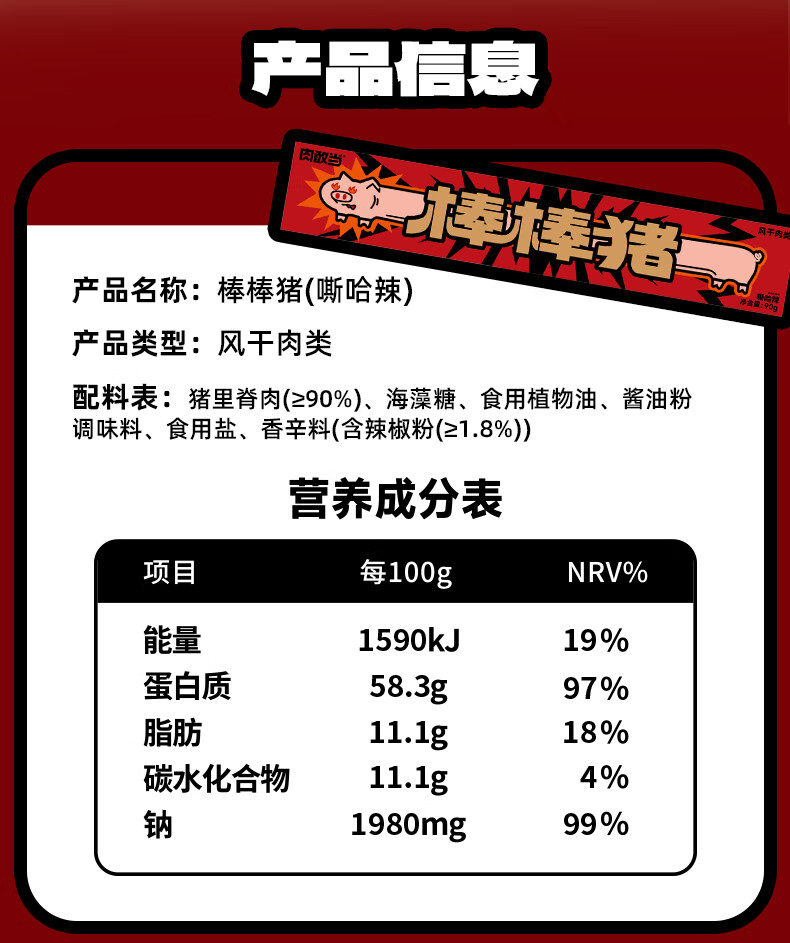 肉敢当棒棒猪一根猪超长猪肉条90g原味风干肉干猪肉脯追解馋剧休闲零食