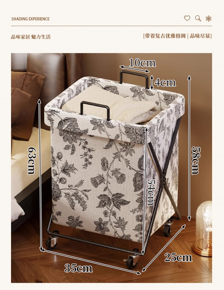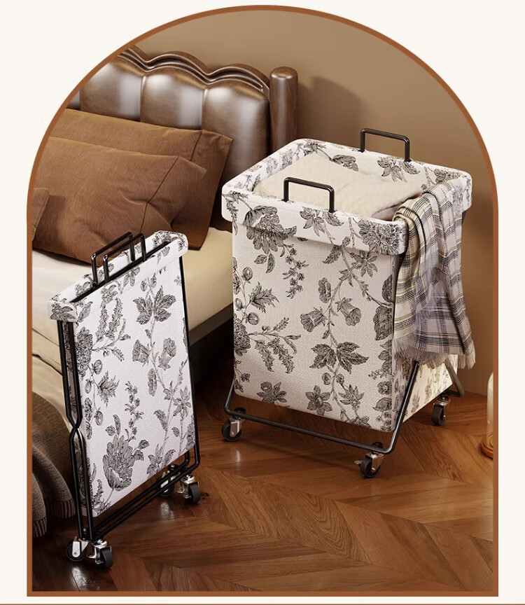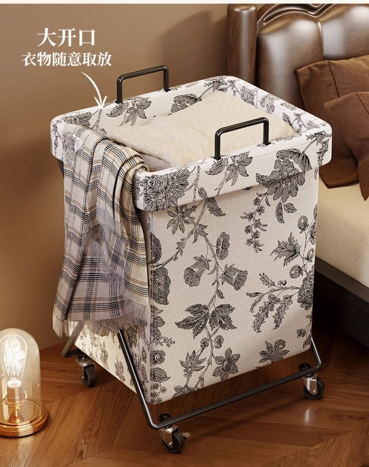 尔思家脏衣收纳篓家用高颜值卫生间放衣服神器可折叠布艺大容量洗衣篮 林间秘境-带轮