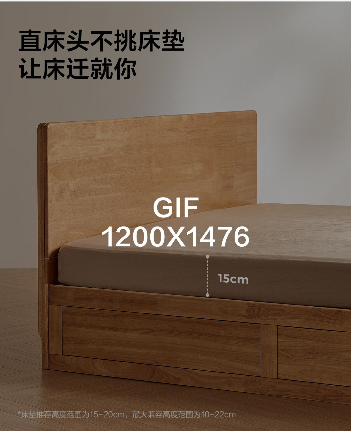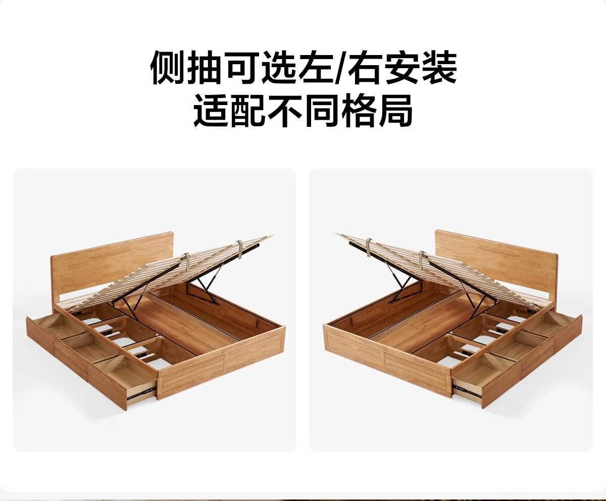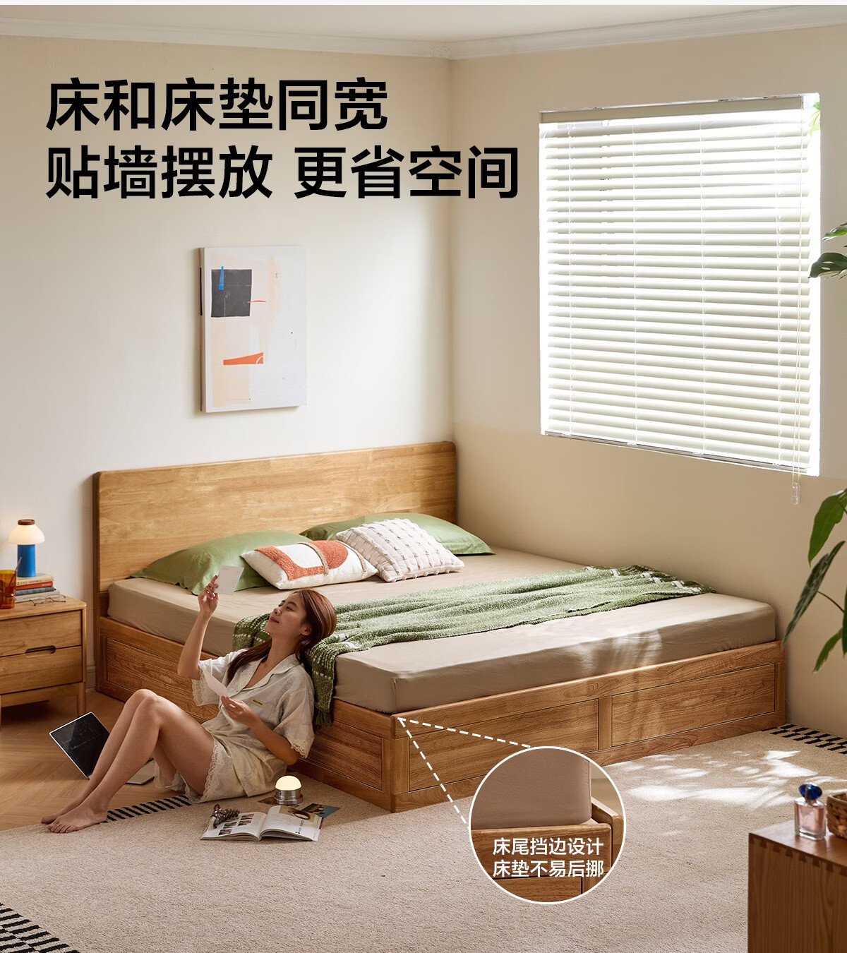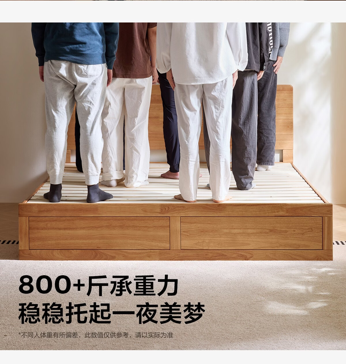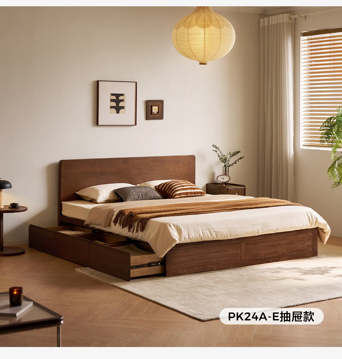 林氏家居全实木床落地储物床1米8双人床小户型家具主卧室小满系列PK24A 【全实木|胡桃色】三抽储物床 1.5米x2米