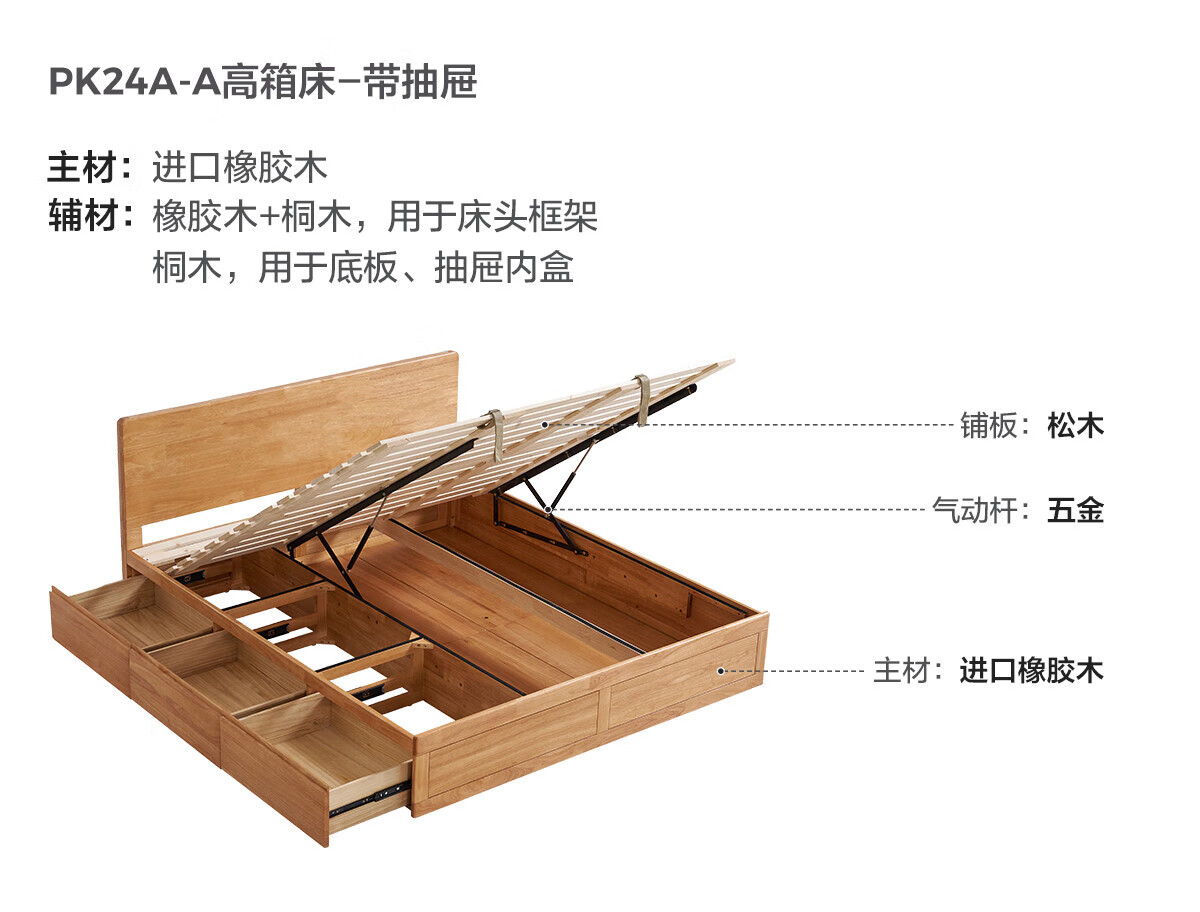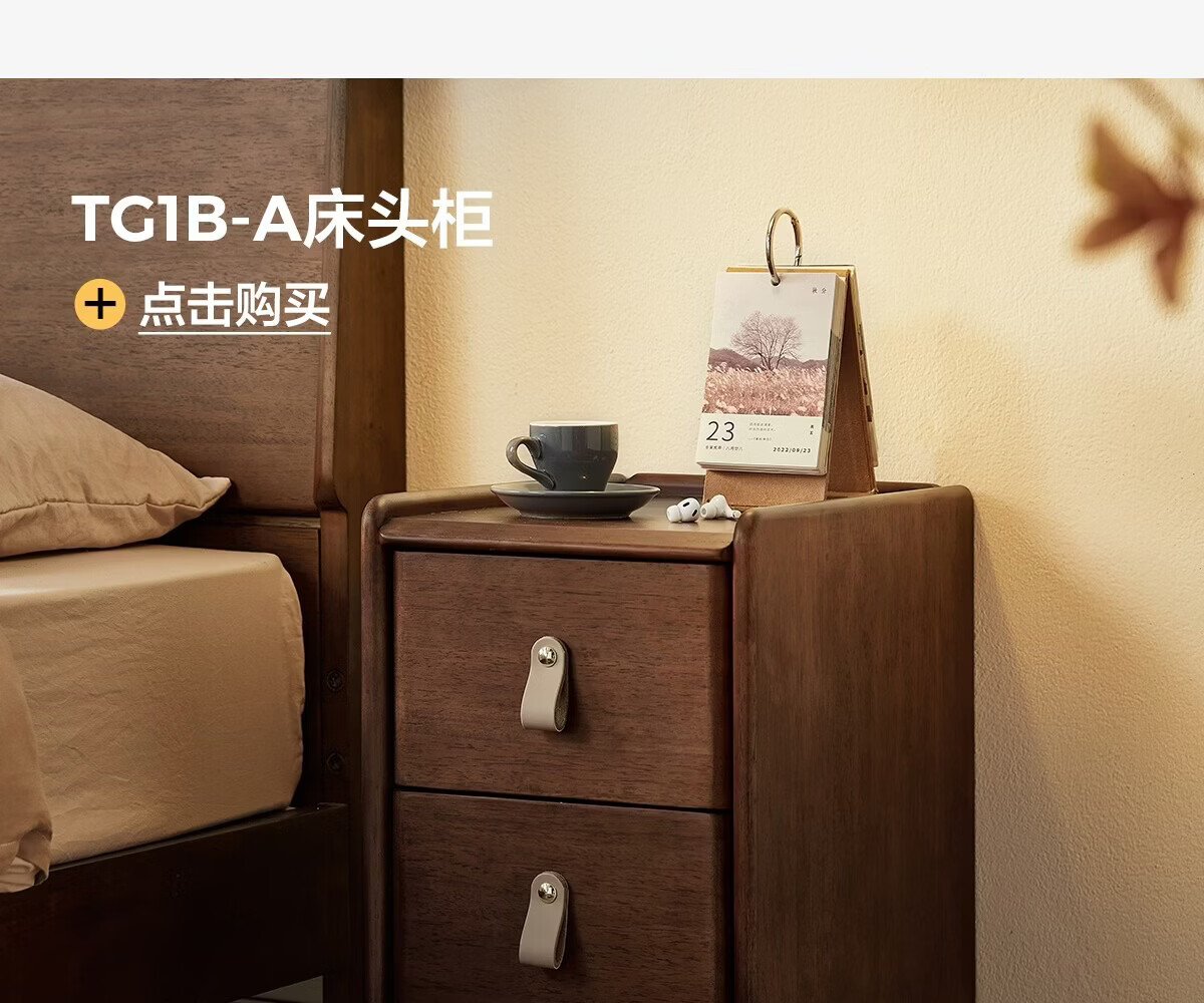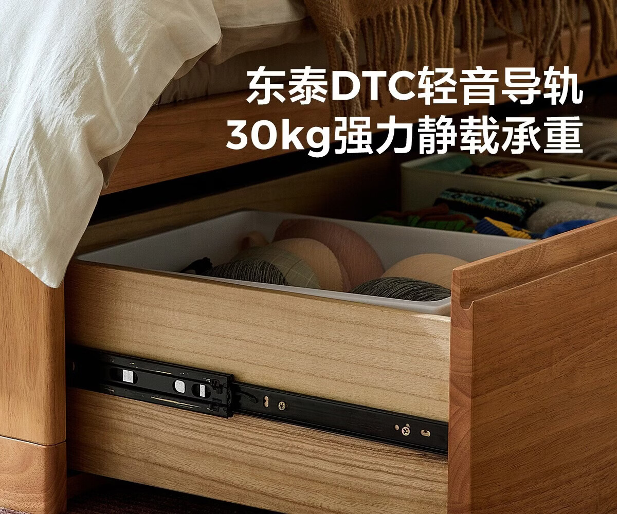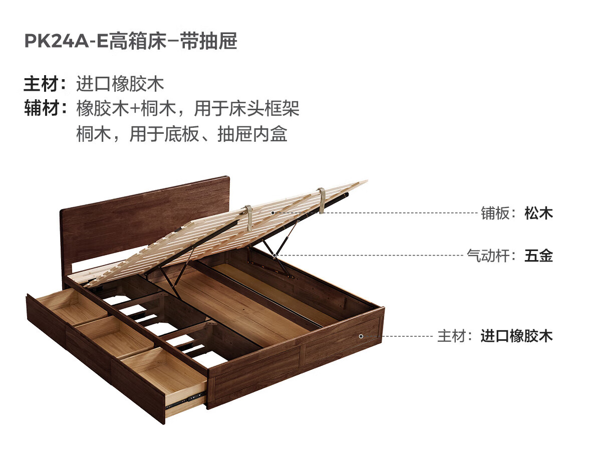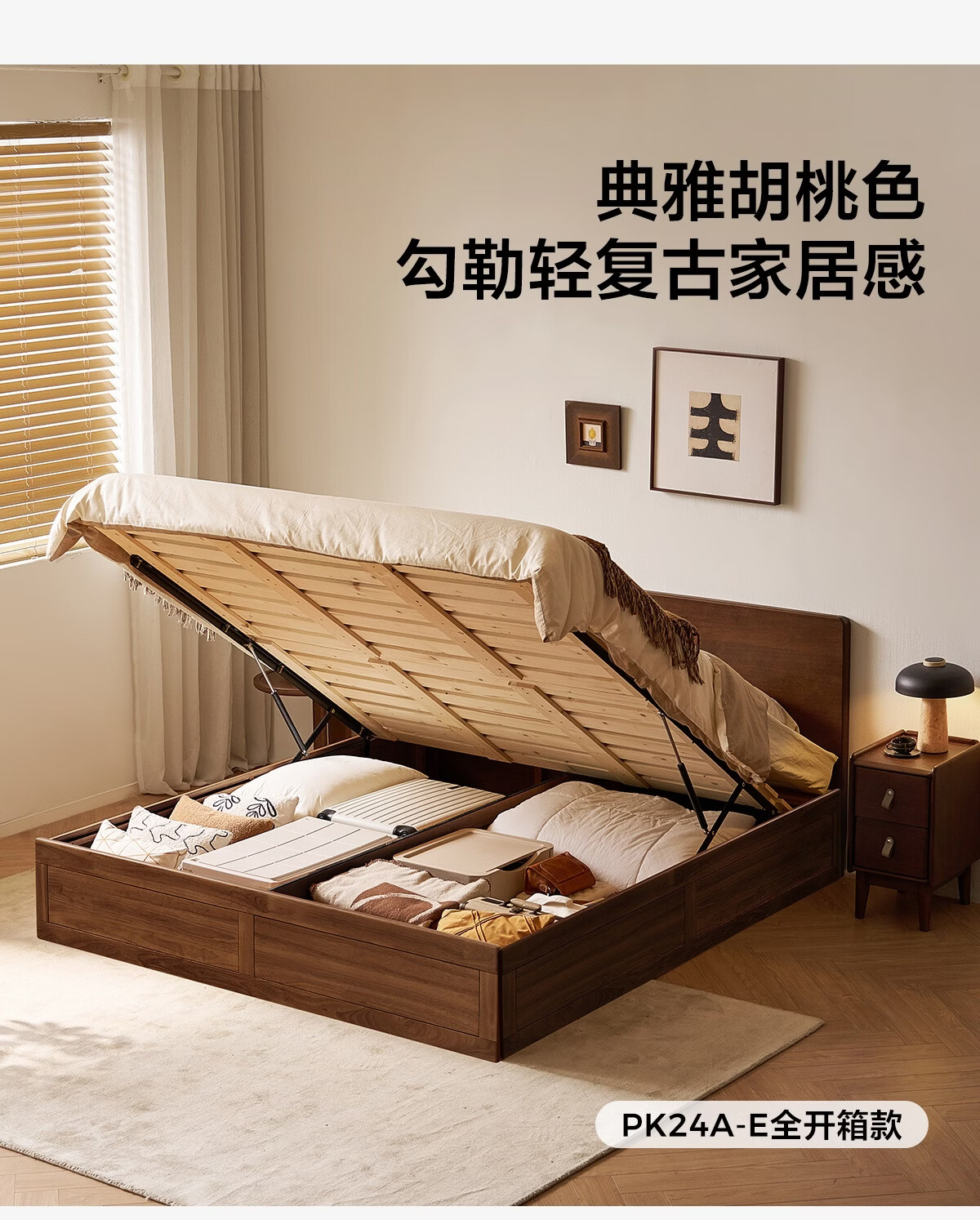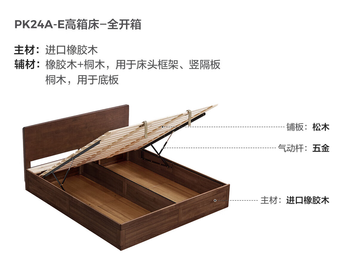 林氏家居全实木床落地储物床1米8双人床小户型家具主卧室小满系列PK24A 【全实木|胡桃色】三抽储物床 1.5米x2米