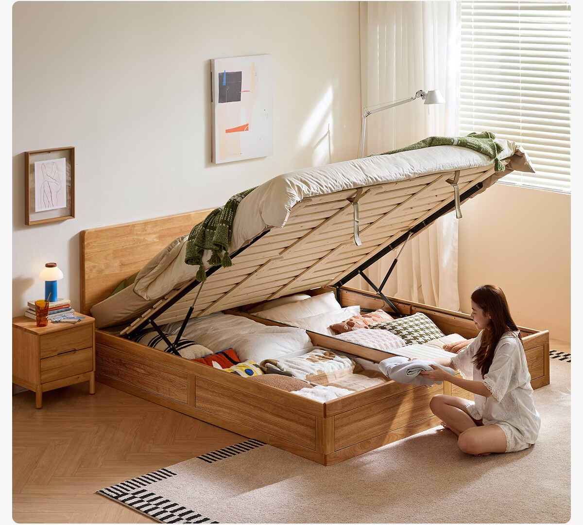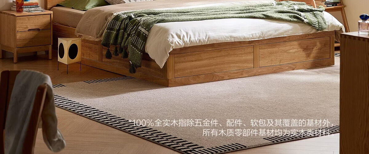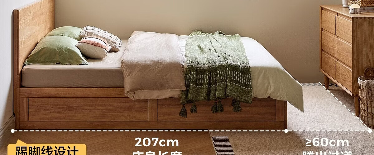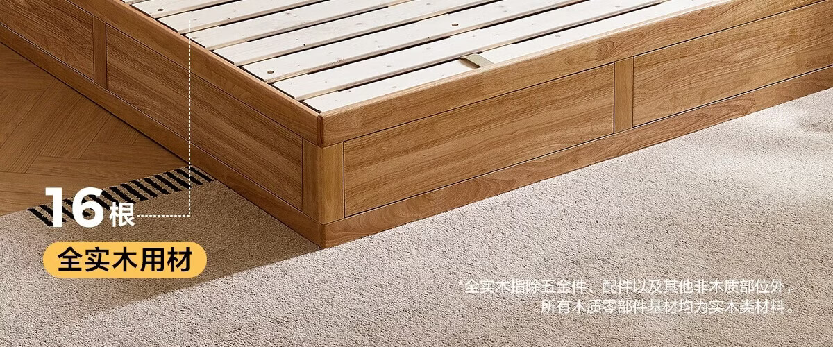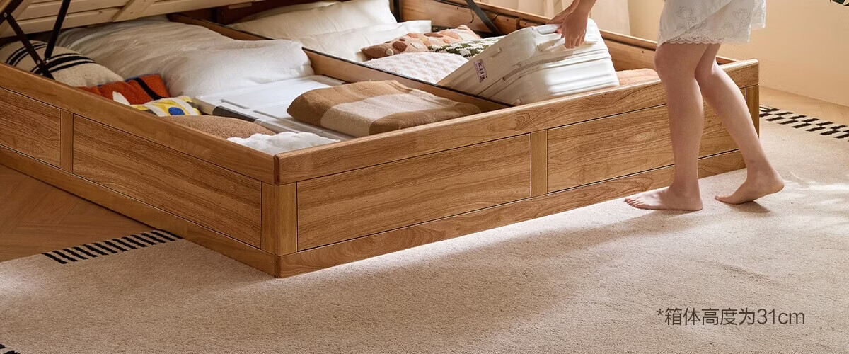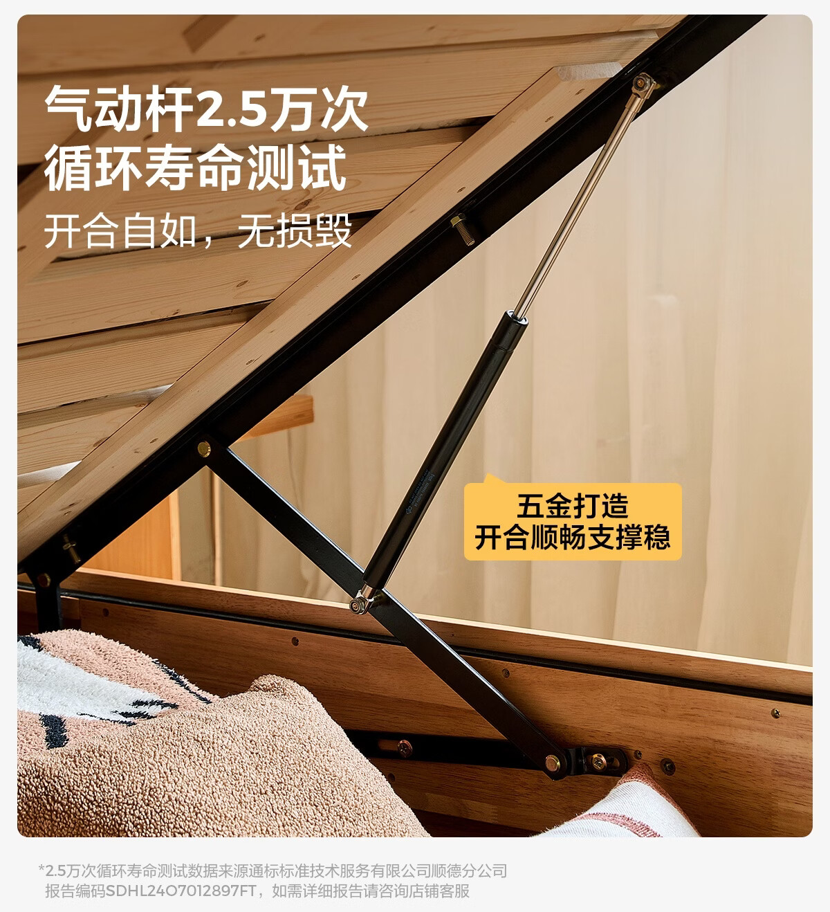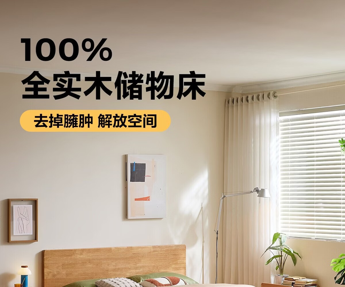 林氏家居全实木床落地储物床1米8双人床小户型家具主卧室小满系列PK24A 【全实木|胡桃色】三抽储物床 1.5米x2米