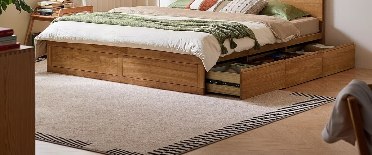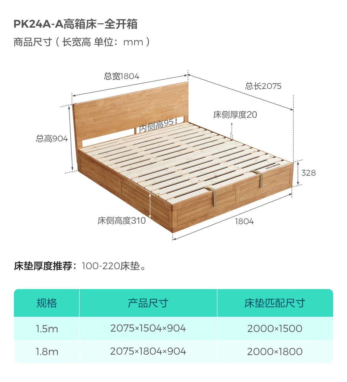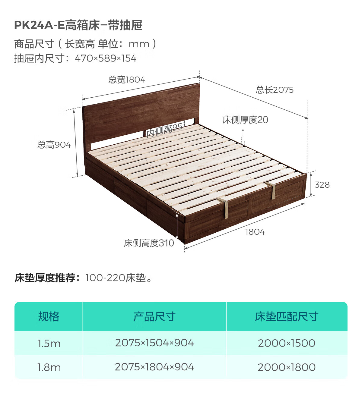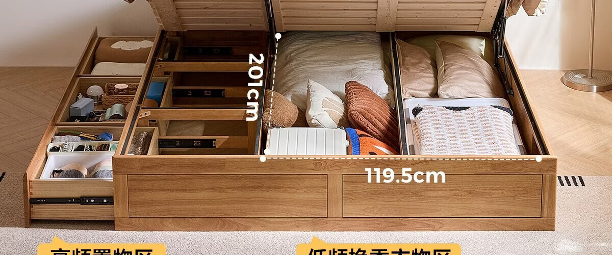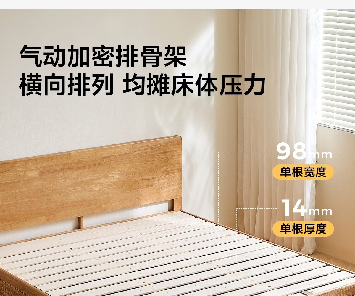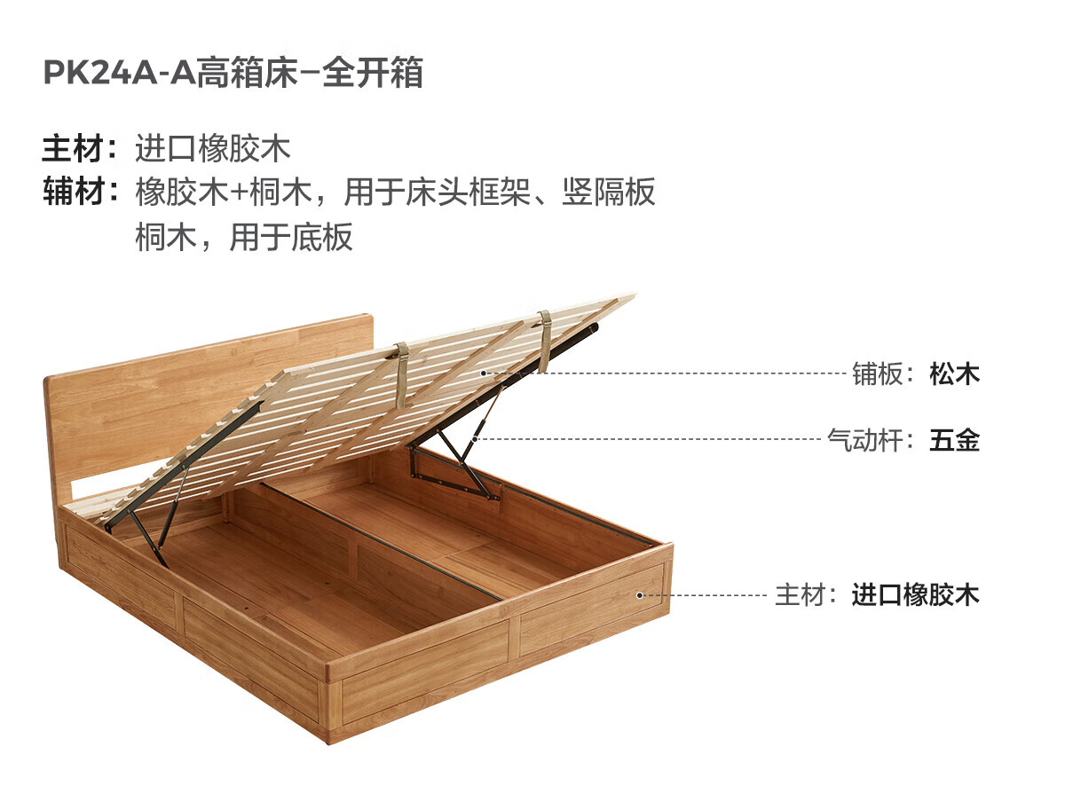 林氏家居全实木床落地储物床1米8双人床小户型家具主卧室小满系列PK24A 【全实木|胡桃色】三抽储物床 1.5米x2米
