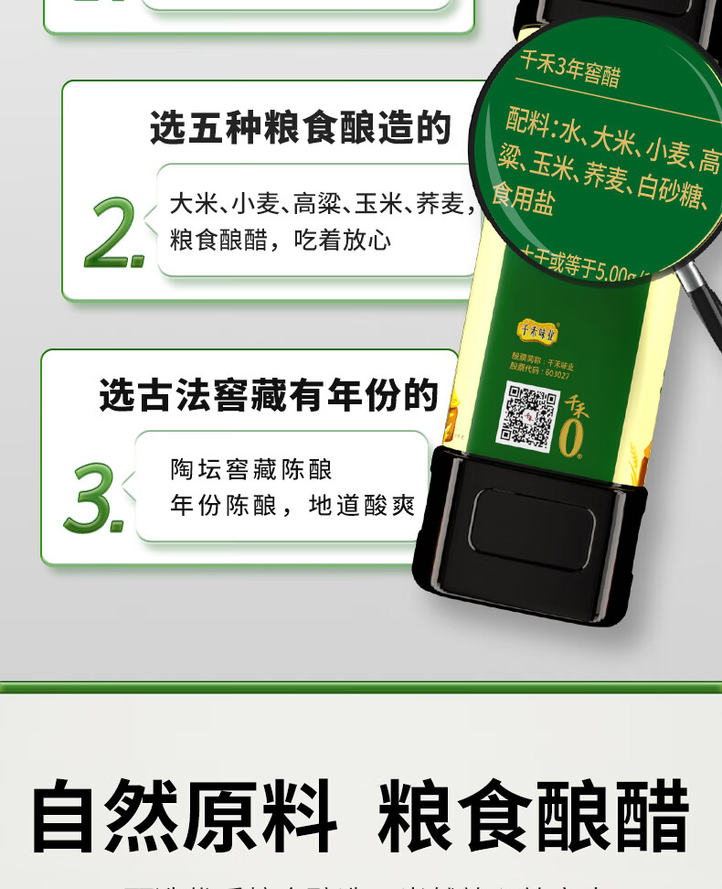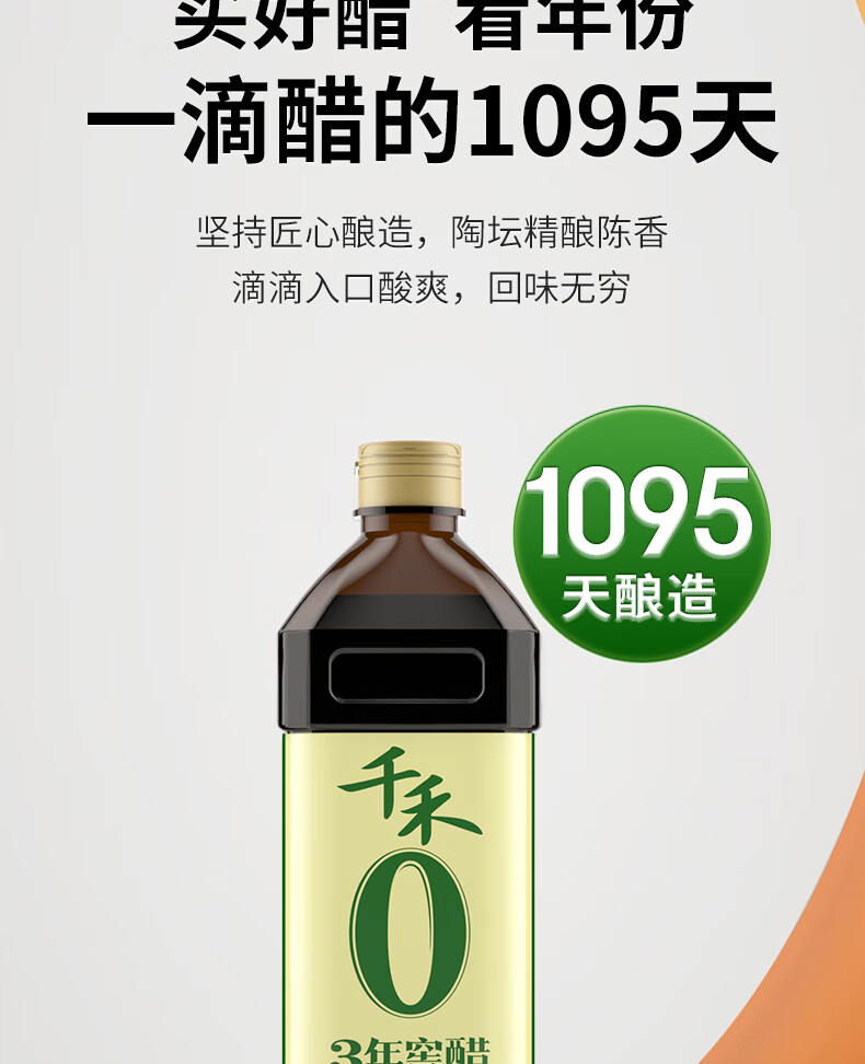 千禾3年窖醋5度 1L 【0添加】老陈醋凉拌饺子食用炒菜蘸食