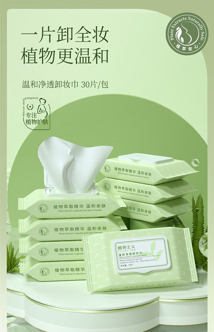 植物主义准孕妇彩妆卸妆液巾脸部水润深层清洁卸妆湿巾温和净透卸妆化妆品
