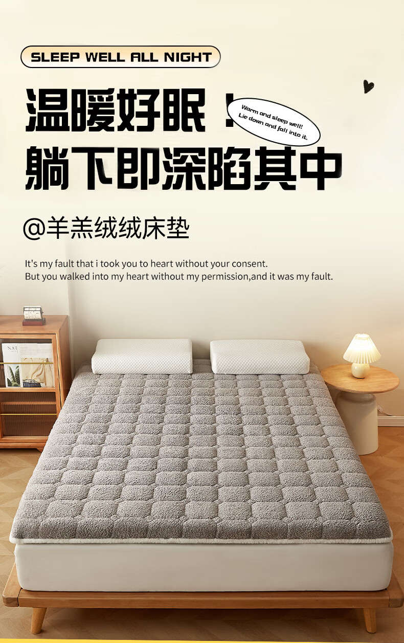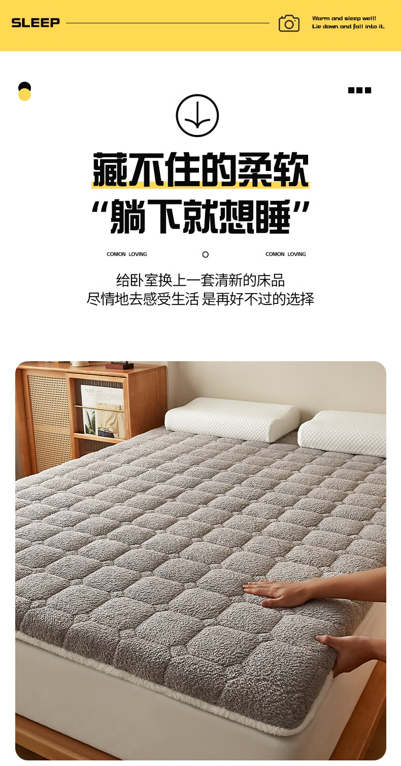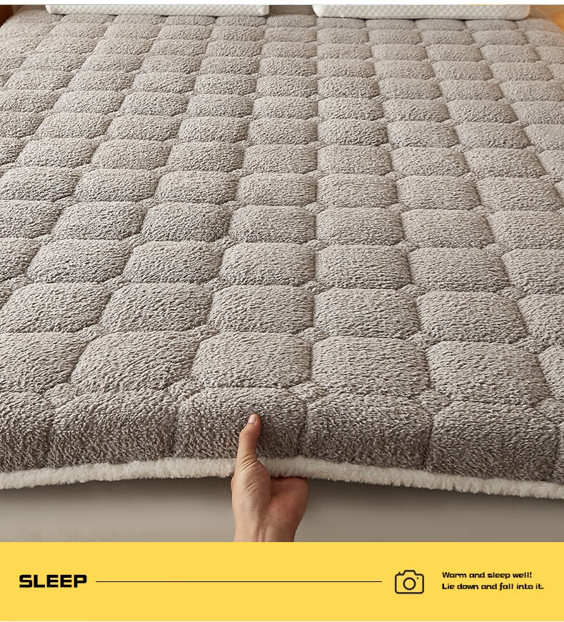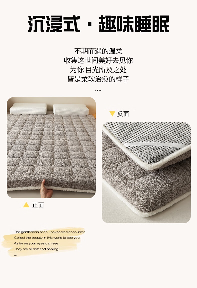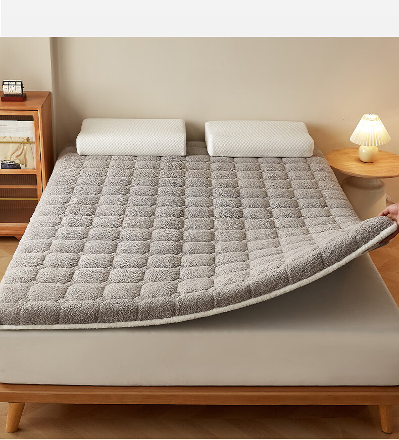 朵亚之星羊羔绒床垫软垫家用秋冬季加厚学生宿舍单人海绵保暖被褥垫子 灰色【厚约9cm】 180x200cm