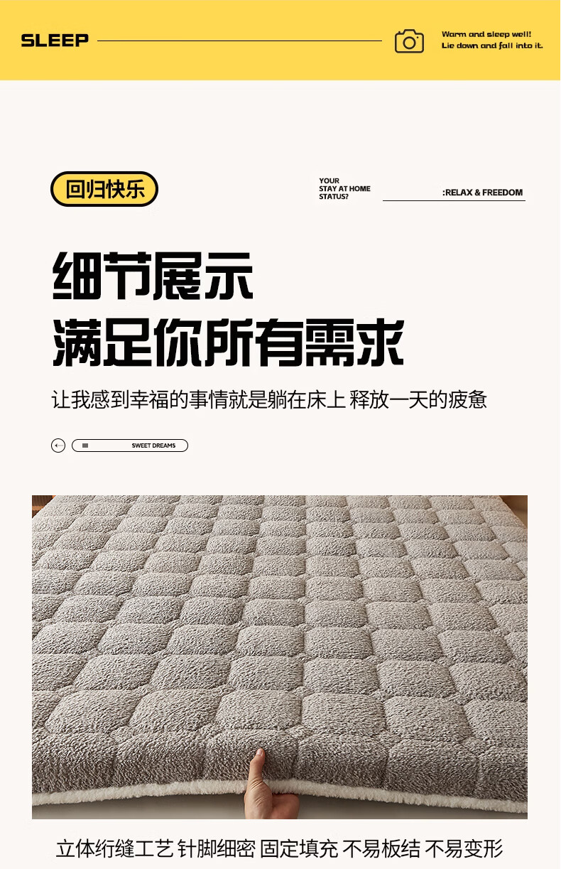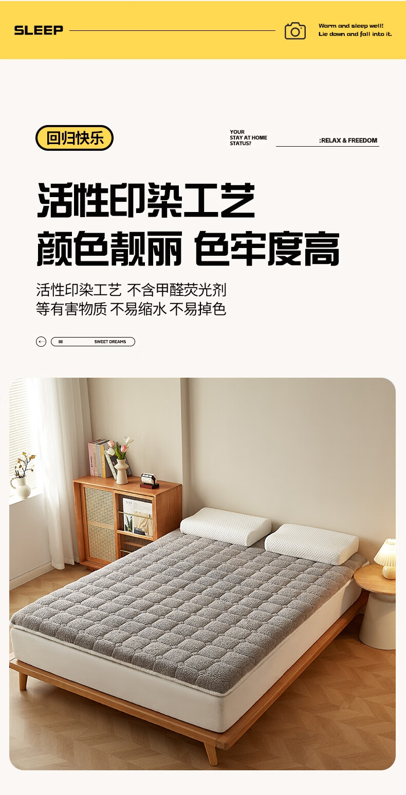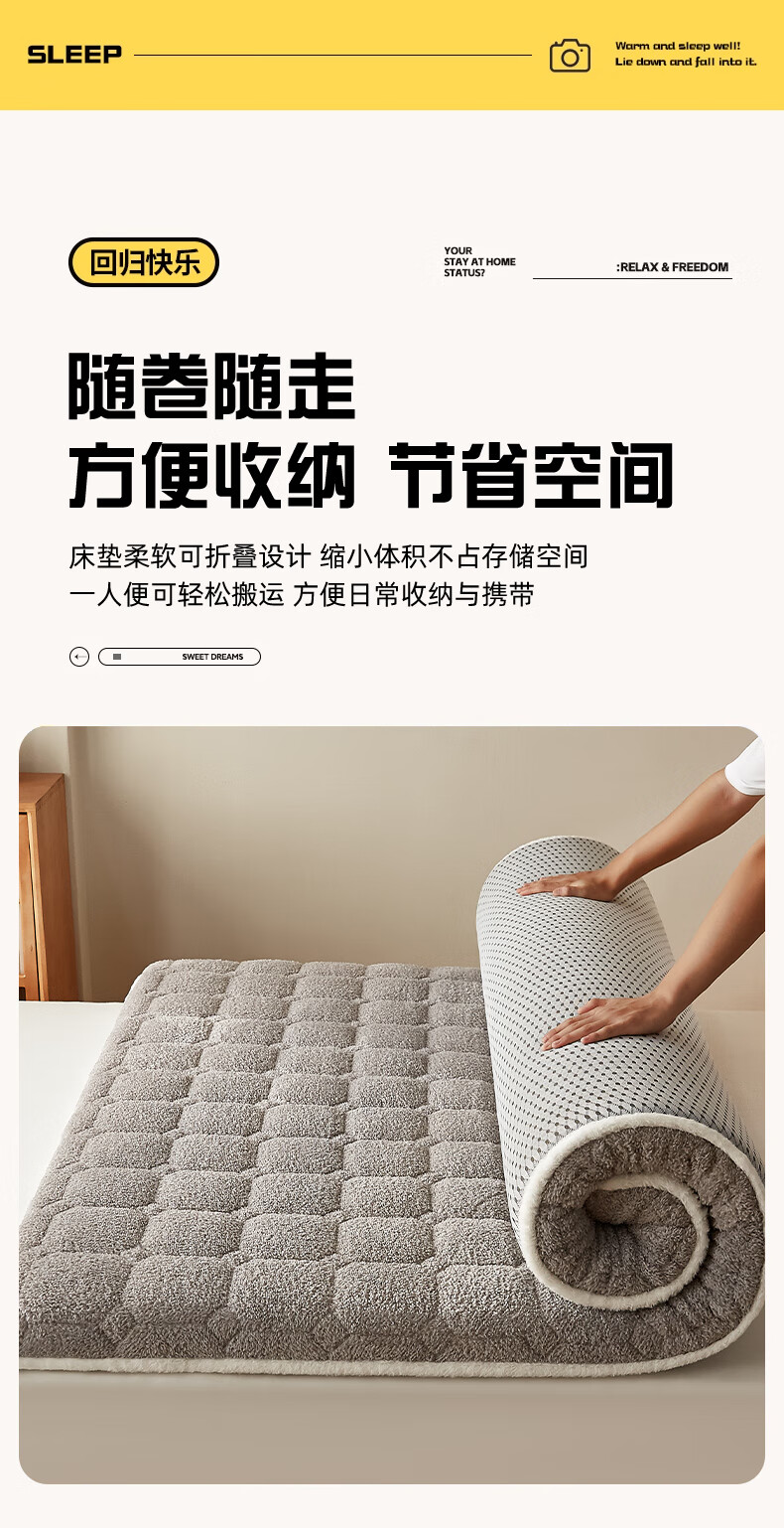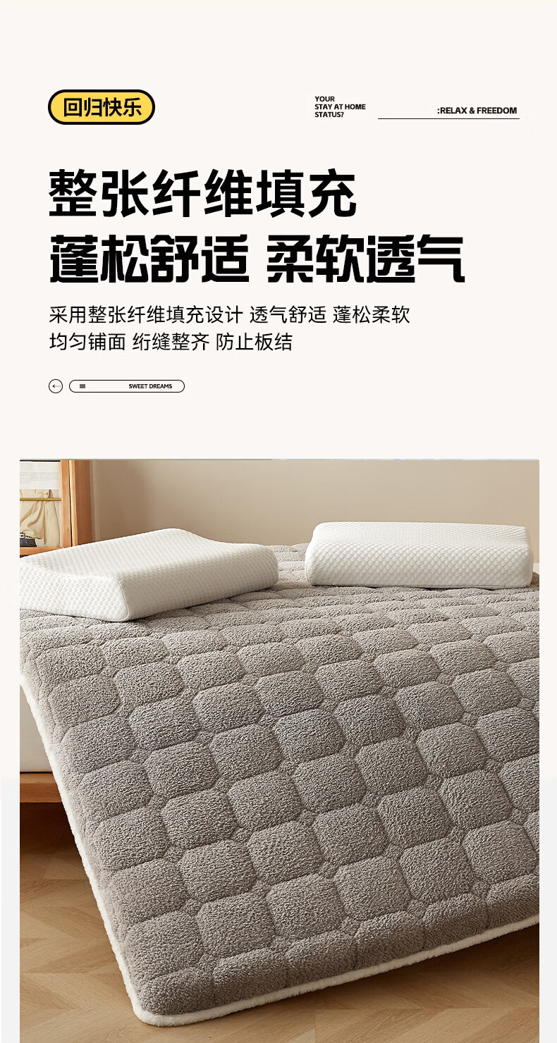 朵亚之星羊羔绒床垫软垫家用秋冬季加厚学生宿舍单人海绵保暖被褥垫子 灰色【厚约9cm】 180x200cm
