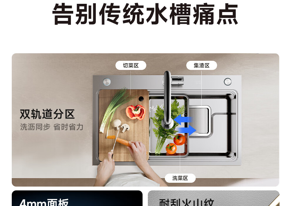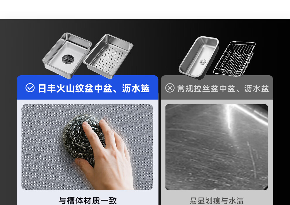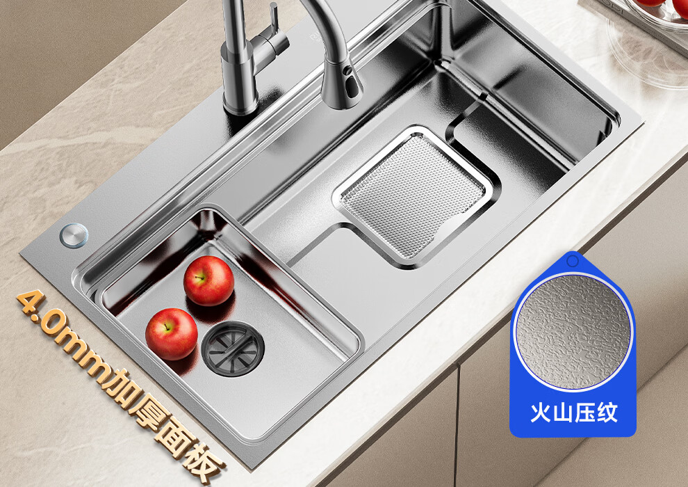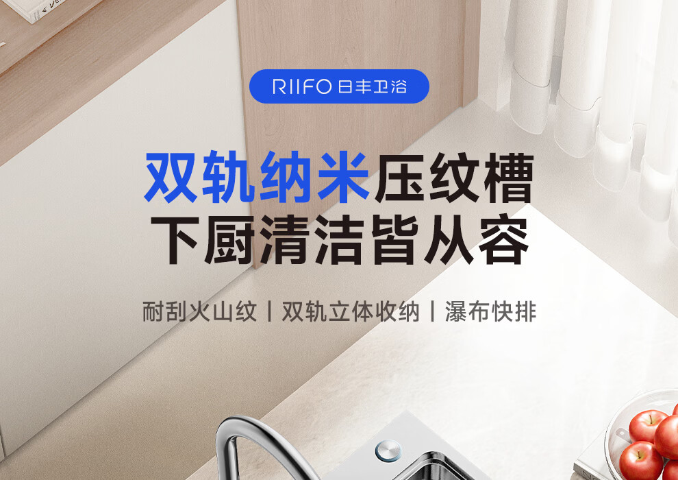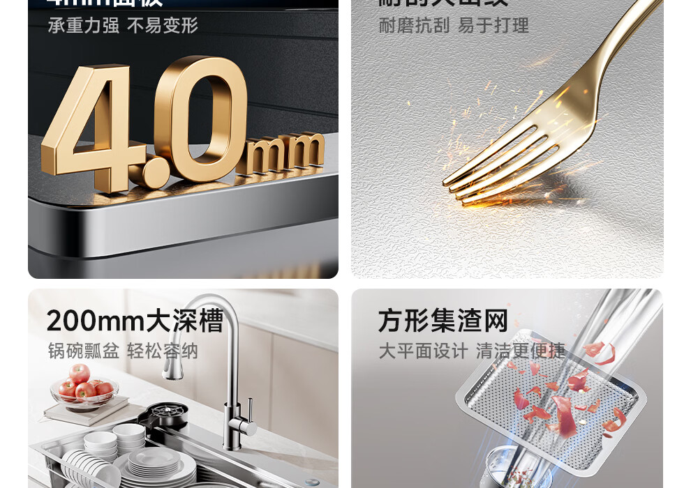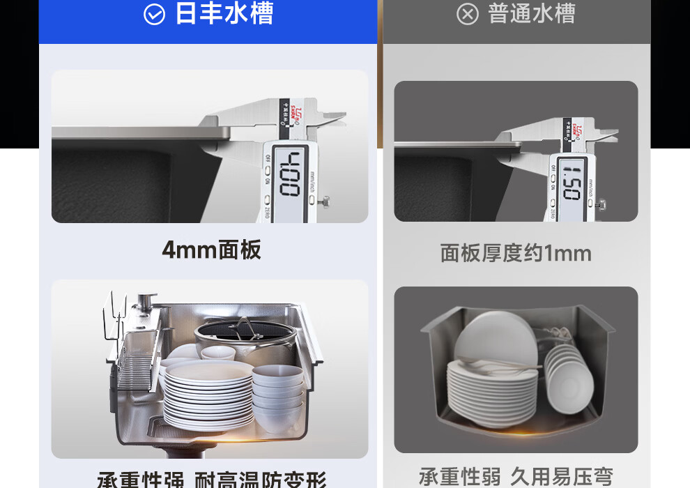 日丰集渣水槽厨房洗菜盆单槽 304不锈钢洗菜池 压纹台下盆洗碗槽 76*46【双轨集渣|4mm面板】+不锈钢天鹅颈
