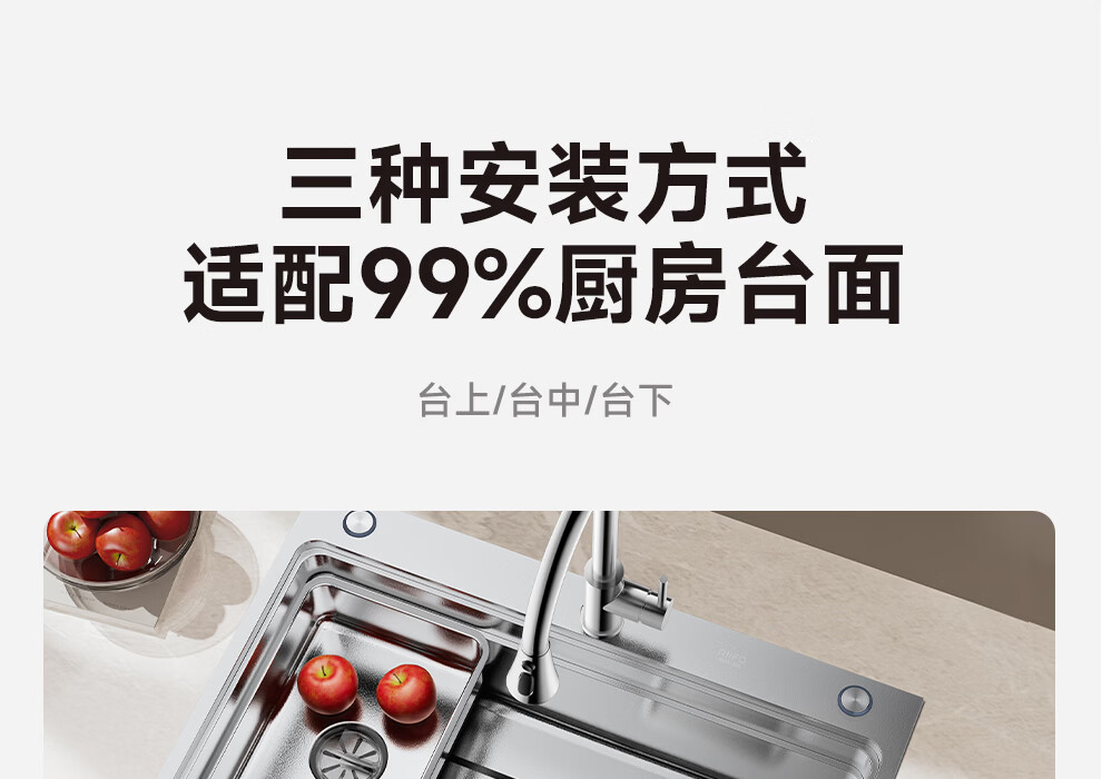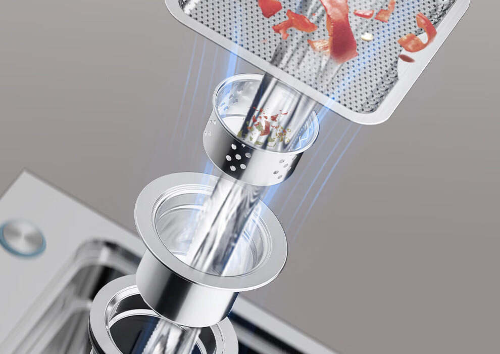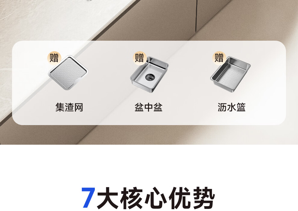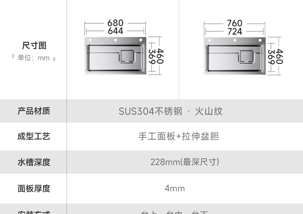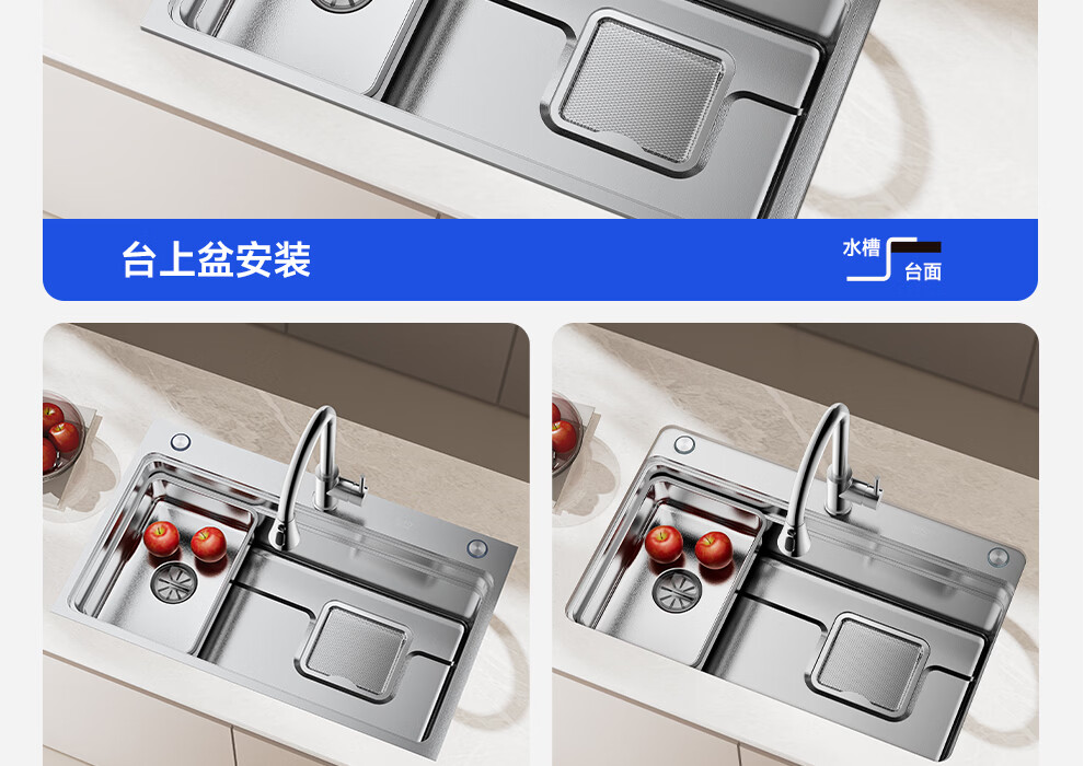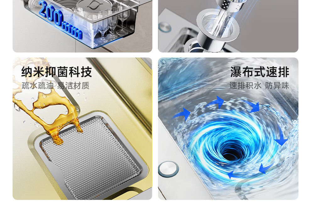 日丰集渣水槽厨房洗菜盆单槽 304不锈钢洗菜池 压纹台下盆洗碗槽 76*46【双轨集渣|4mm面板】+不锈钢天鹅颈