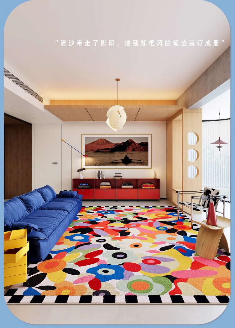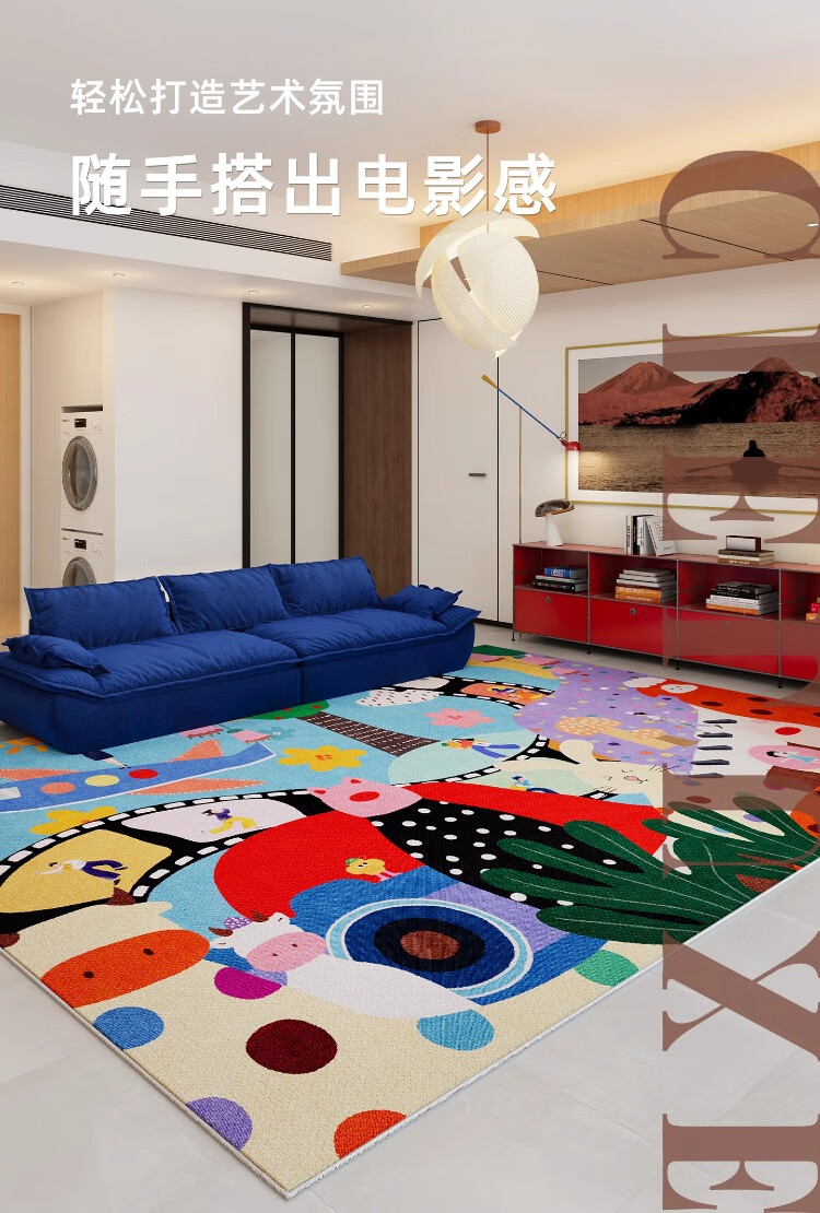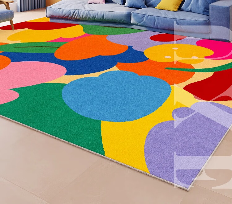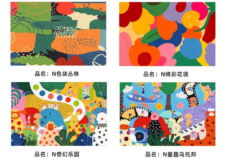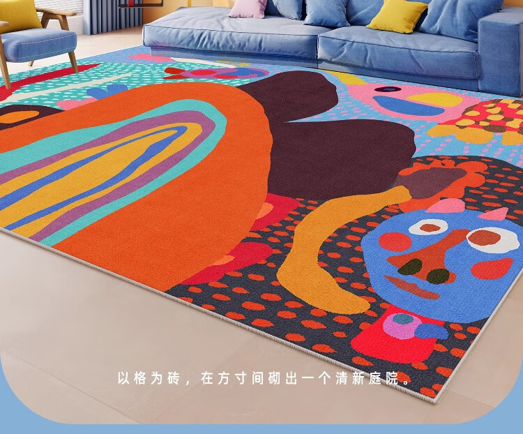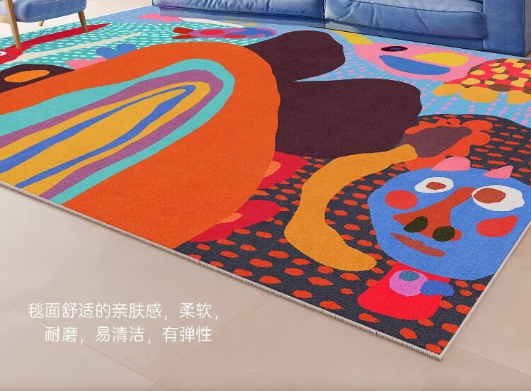 织百佳多巴胺艺术地毯客厅2026新款抽象卡通彩色地垫室内儿童房间布置毯 N童趣秘境 120*160CM