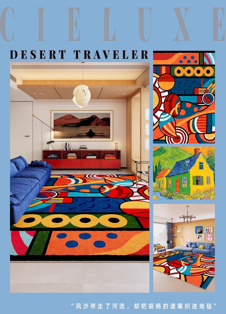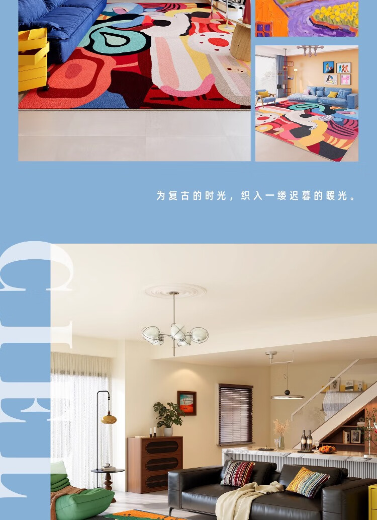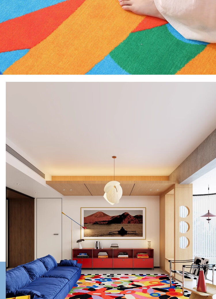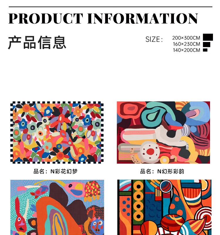 织百佳多巴胺艺术地毯客厅2026新款抽象卡通彩色地垫室内儿童房间布置毯 N童趣秘境 120*160CM