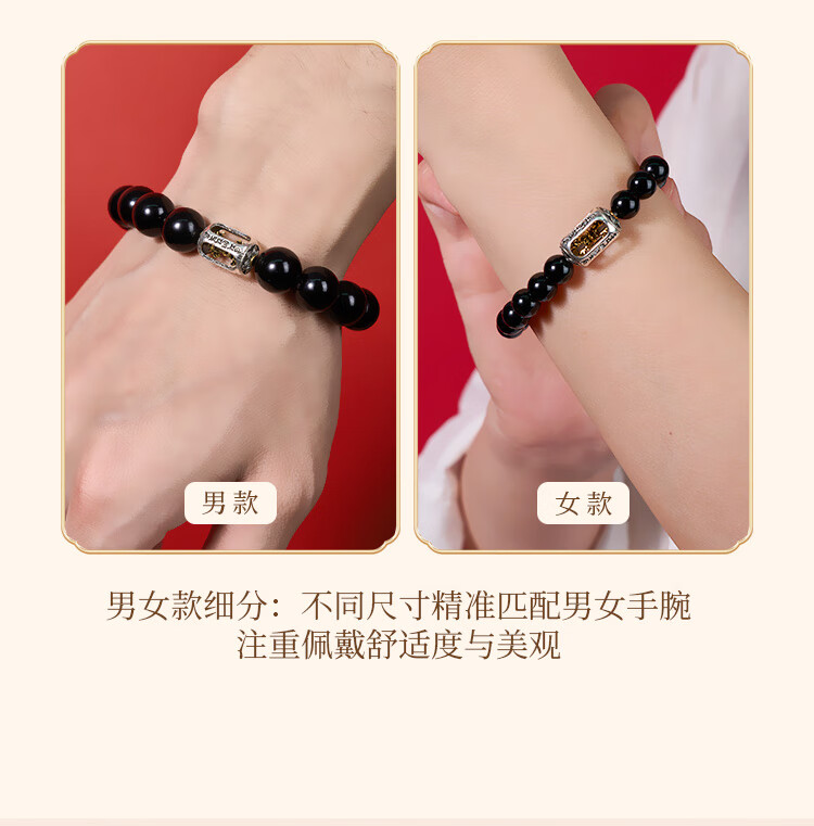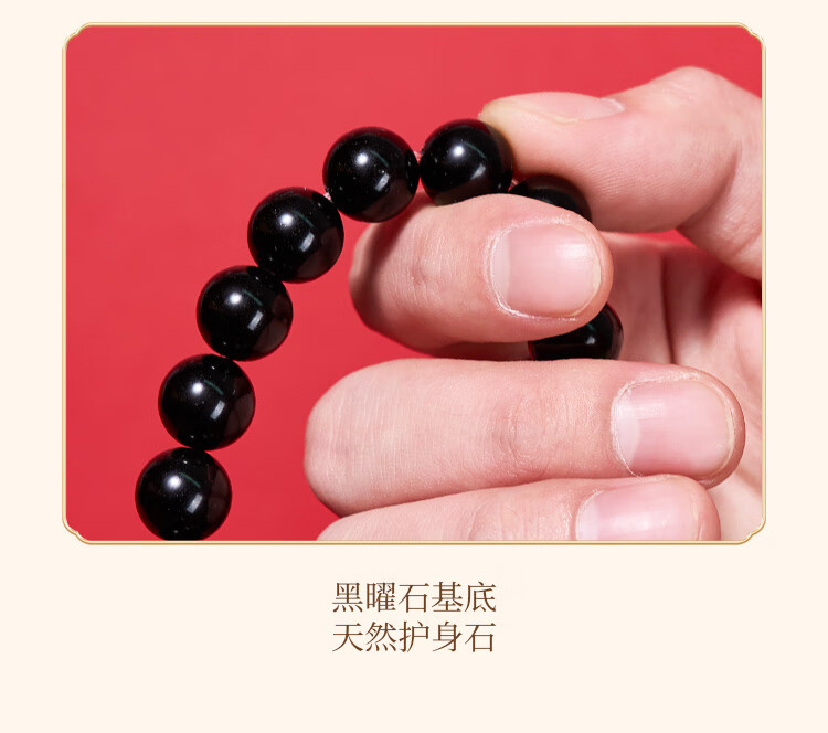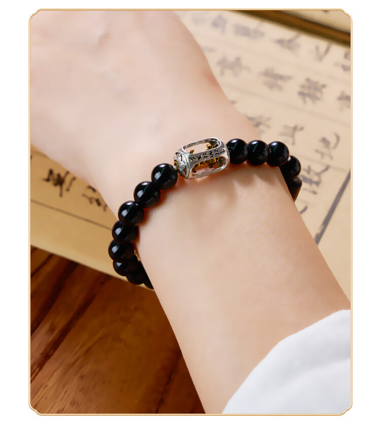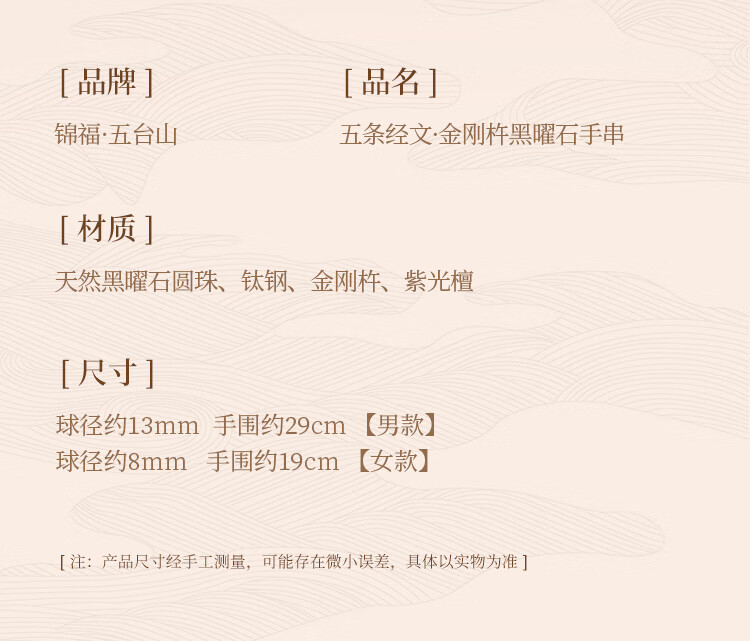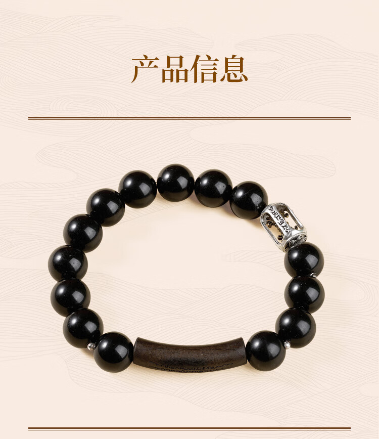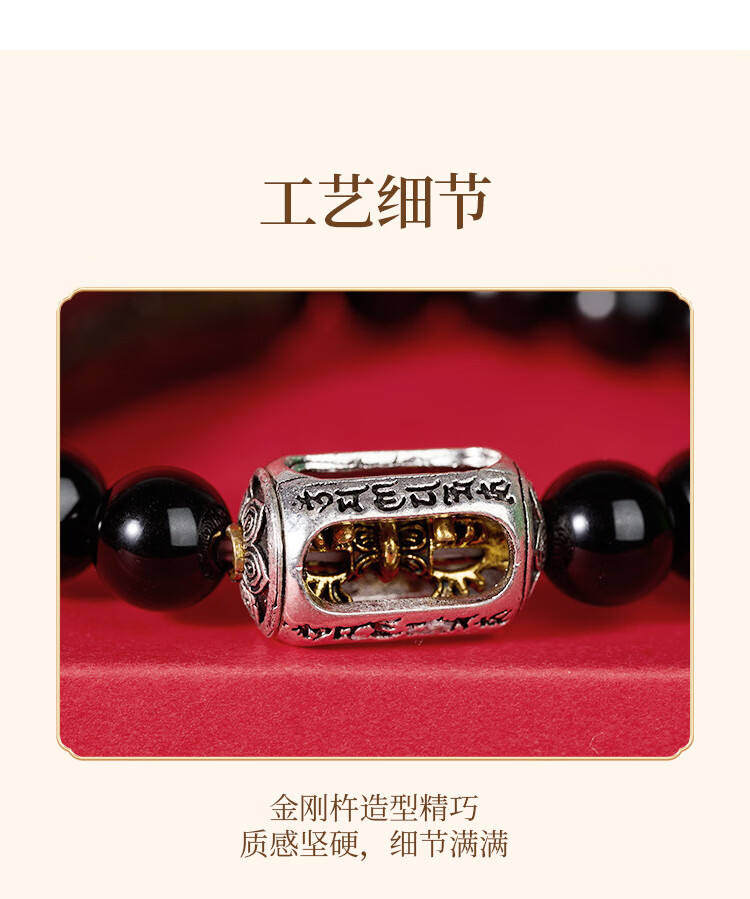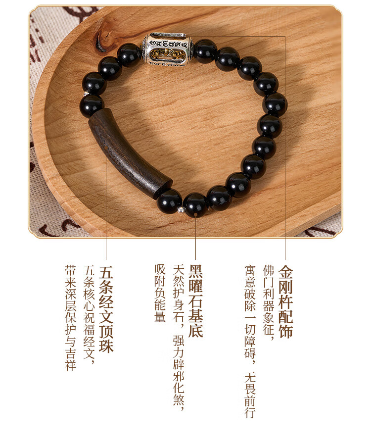 锦福五台山黑曜石金刚杵檀木手串木质文玩盘串男女情侣款手链 黑曜石金刚杵檀木手串 男款