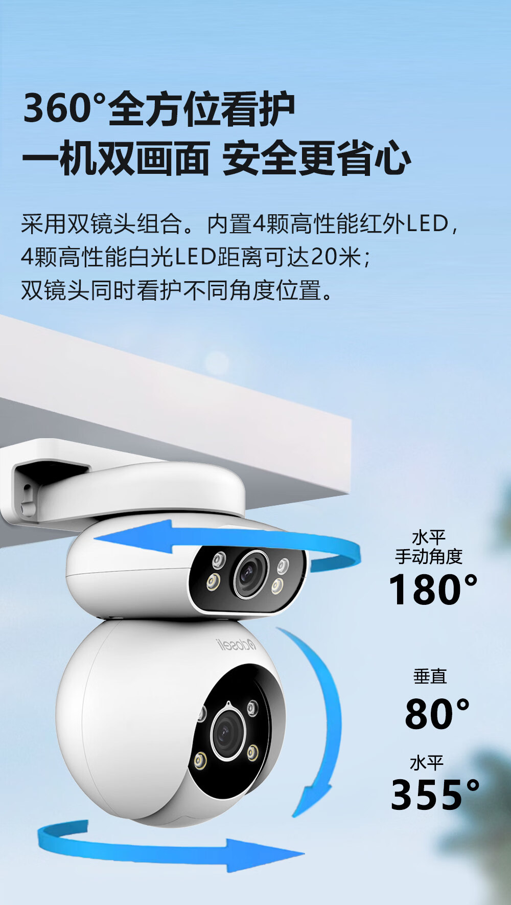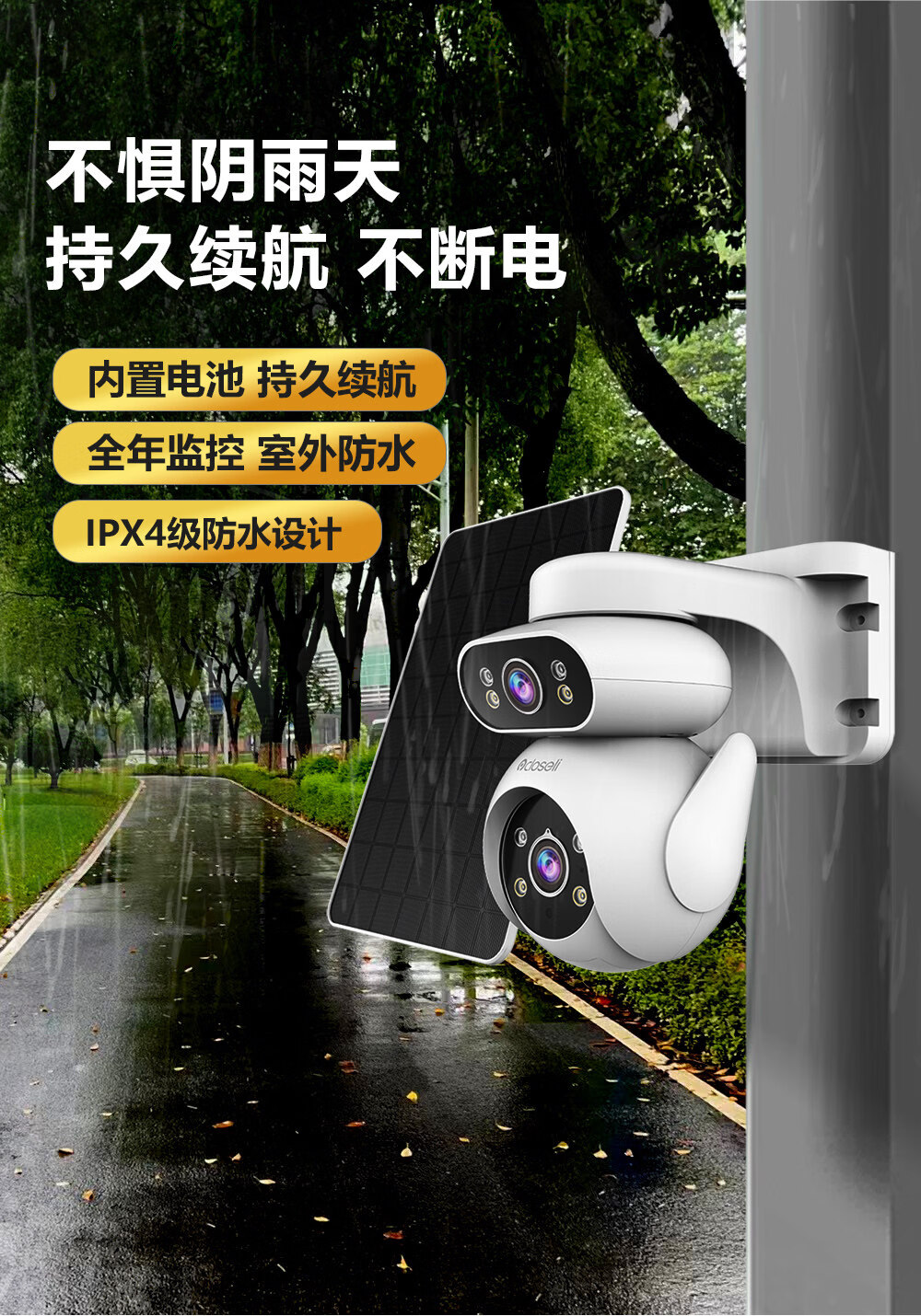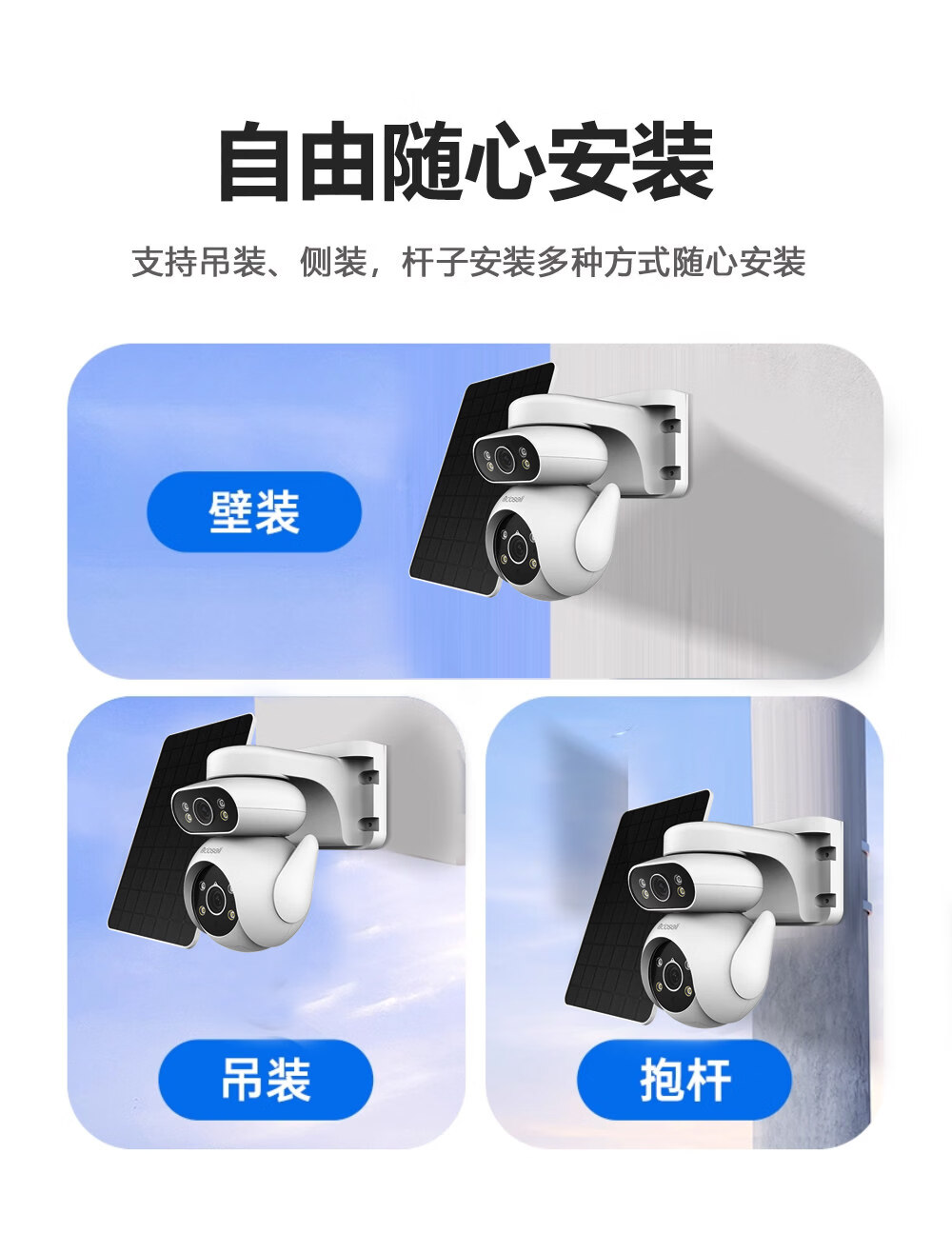 可梨免充值太阳能板4G无线室外监控摄像头手机远程摄影机插卡免流量监控器360度全景高清双镜头低功耗 [太阳能套装]【4G免充值】500万高清*无电无网 30天监控高速循环录像卡