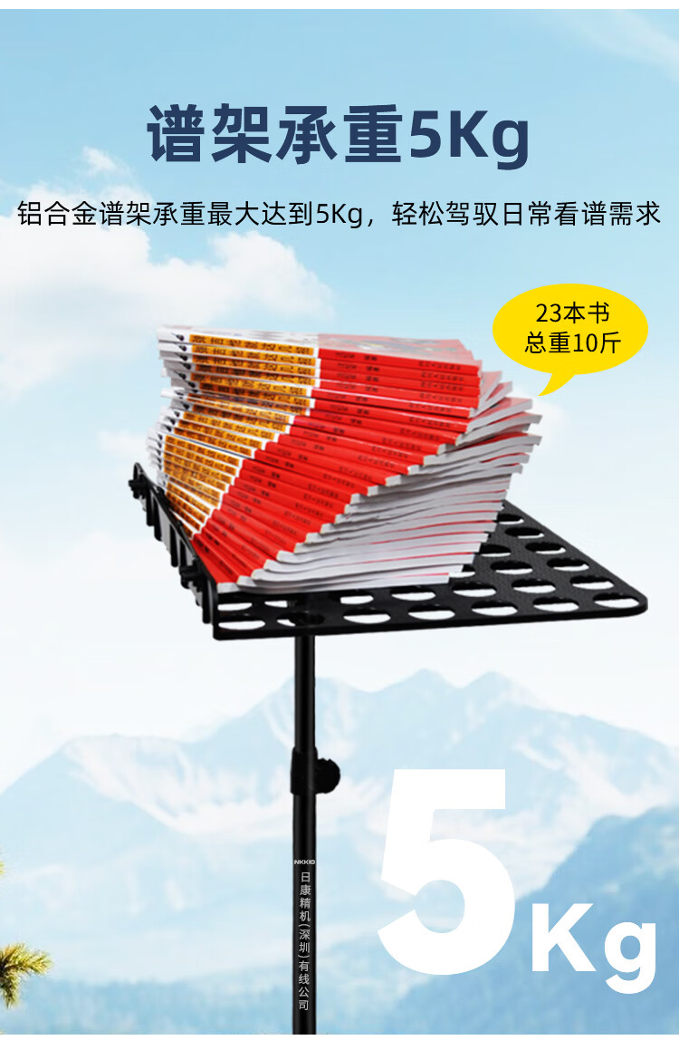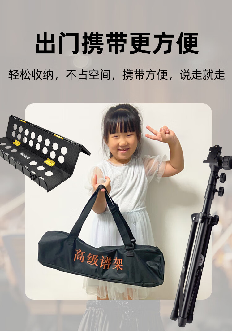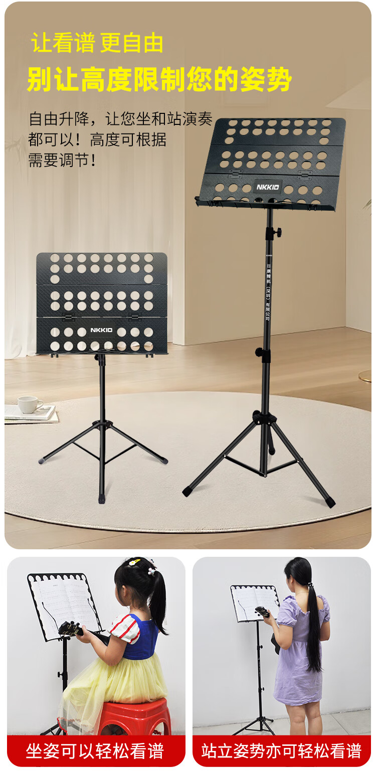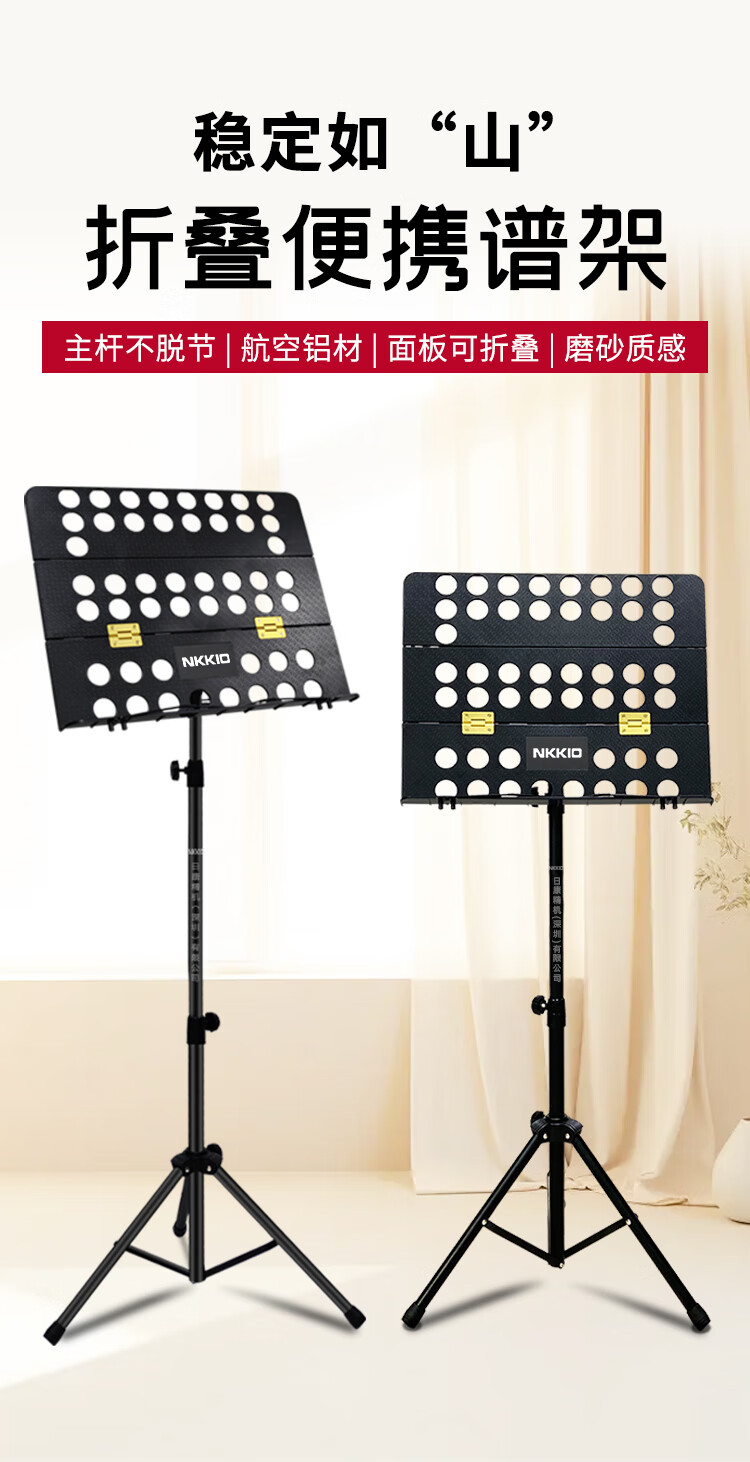 NKKIO尼康铝合金乐谱架便携可折叠升降吉他古筝琴歌谱台 黑色合页