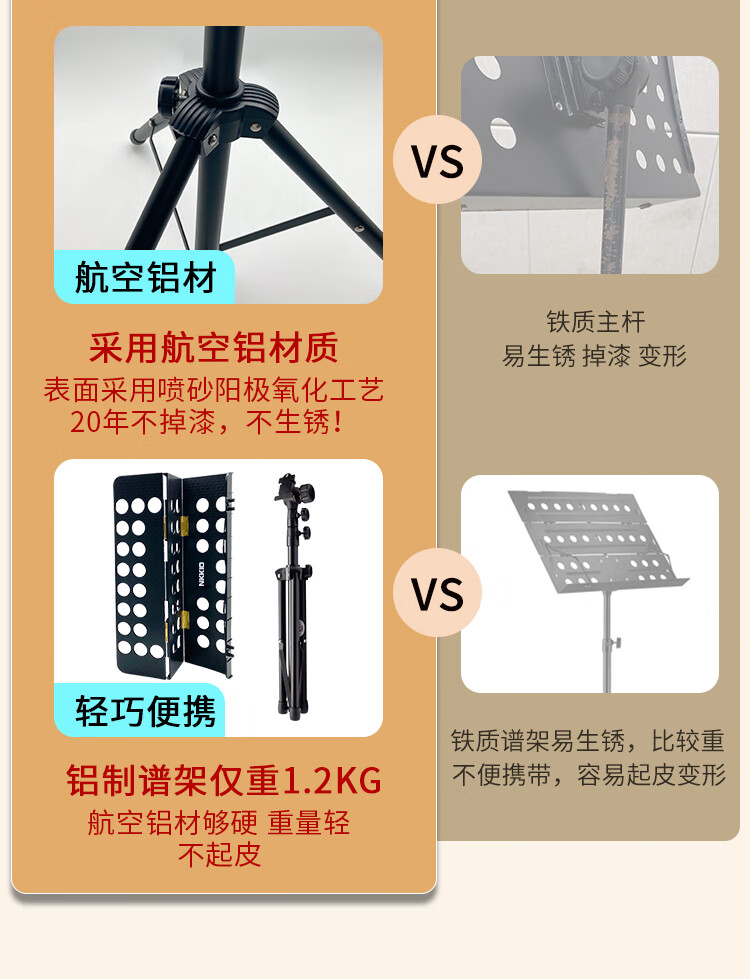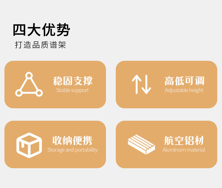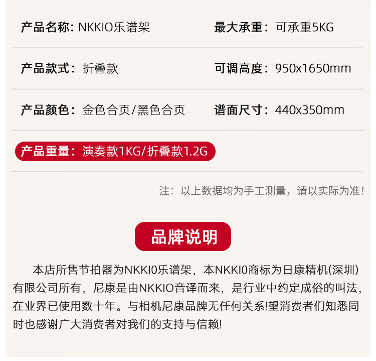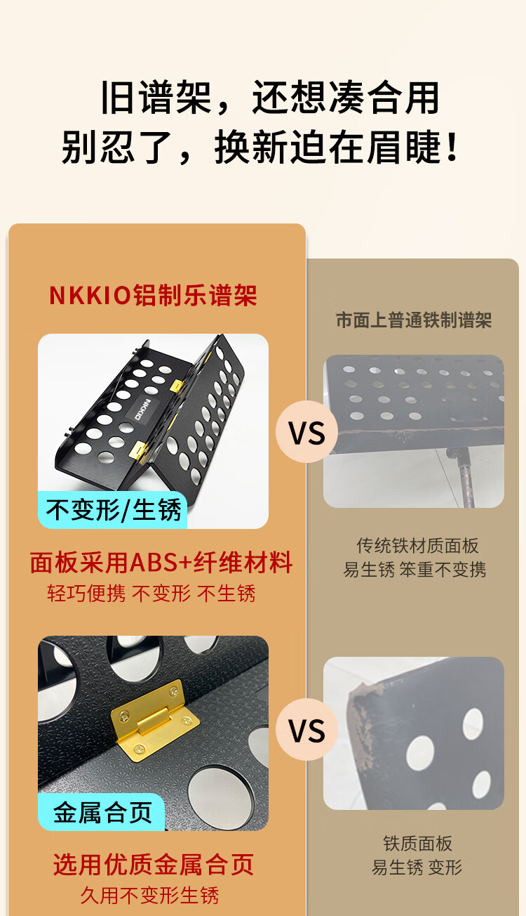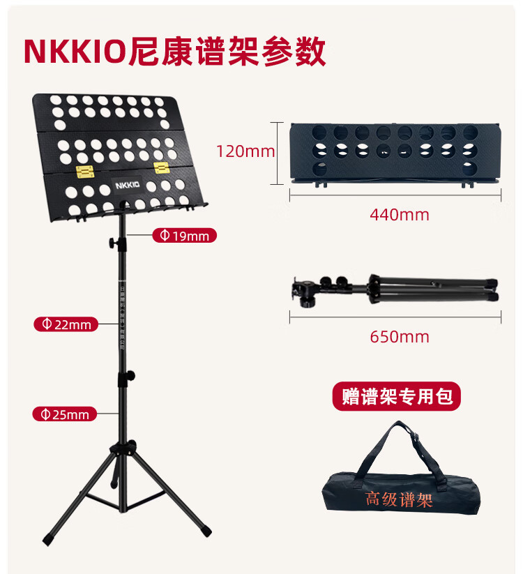 NKKIO尼康铝合金乐谱架便携可折叠升降吉他古筝琴歌谱台 黑色合页