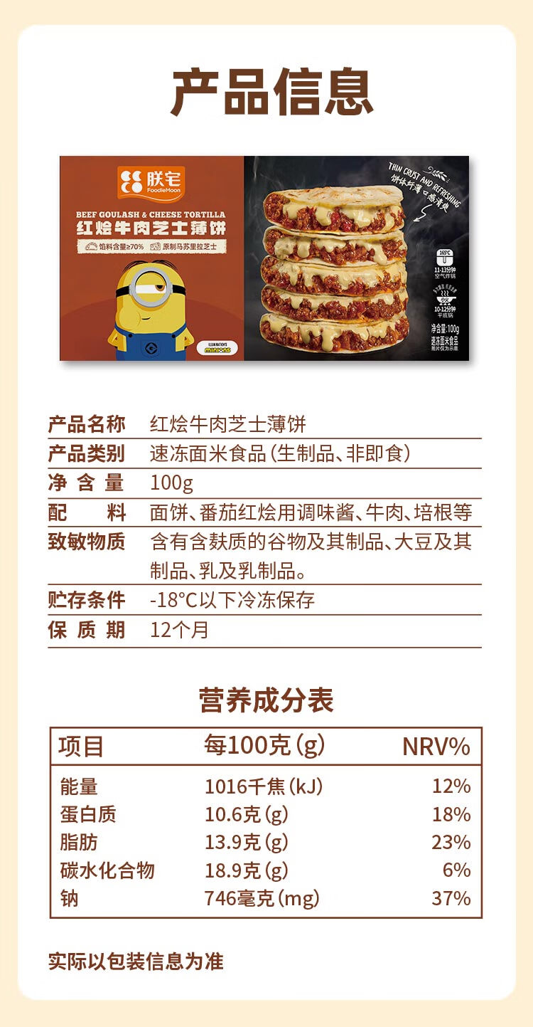 朕宅红烩牛肉芝士薄饼100g*2 早餐卷饼 半成品加热即食空气炸锅食材
