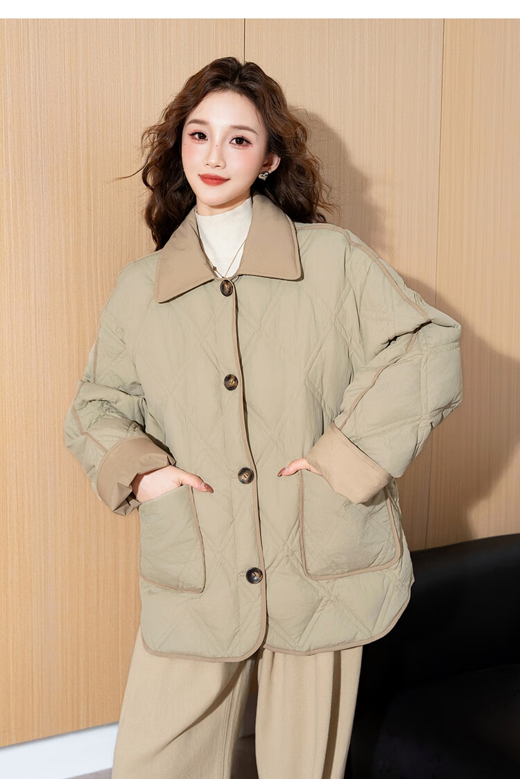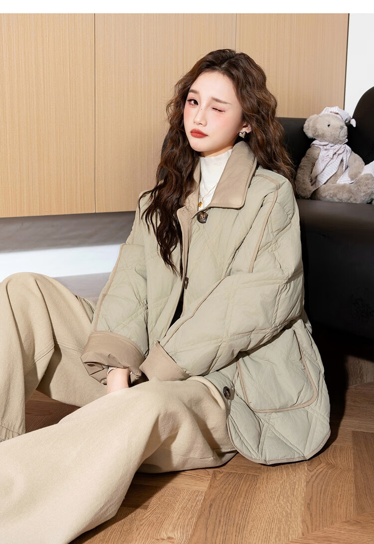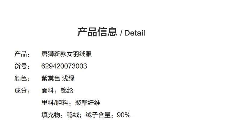 唐狮(TonLion)2025女撞色拼接翻领羽绒服 浅绿 M