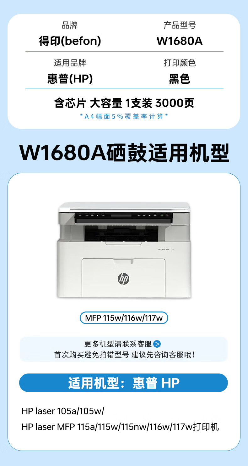 得印(befon)适用惠普116w硒鼓W1680A硒鼓大容量168a硒鼓 惠普105a硒鼓 105w硒鼓 mfp115w/nw硒鼓hp116w 117w打印机硒鼓