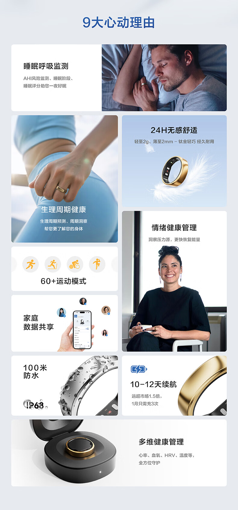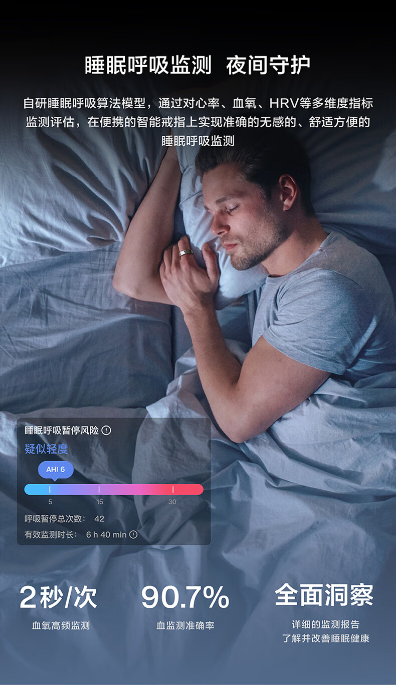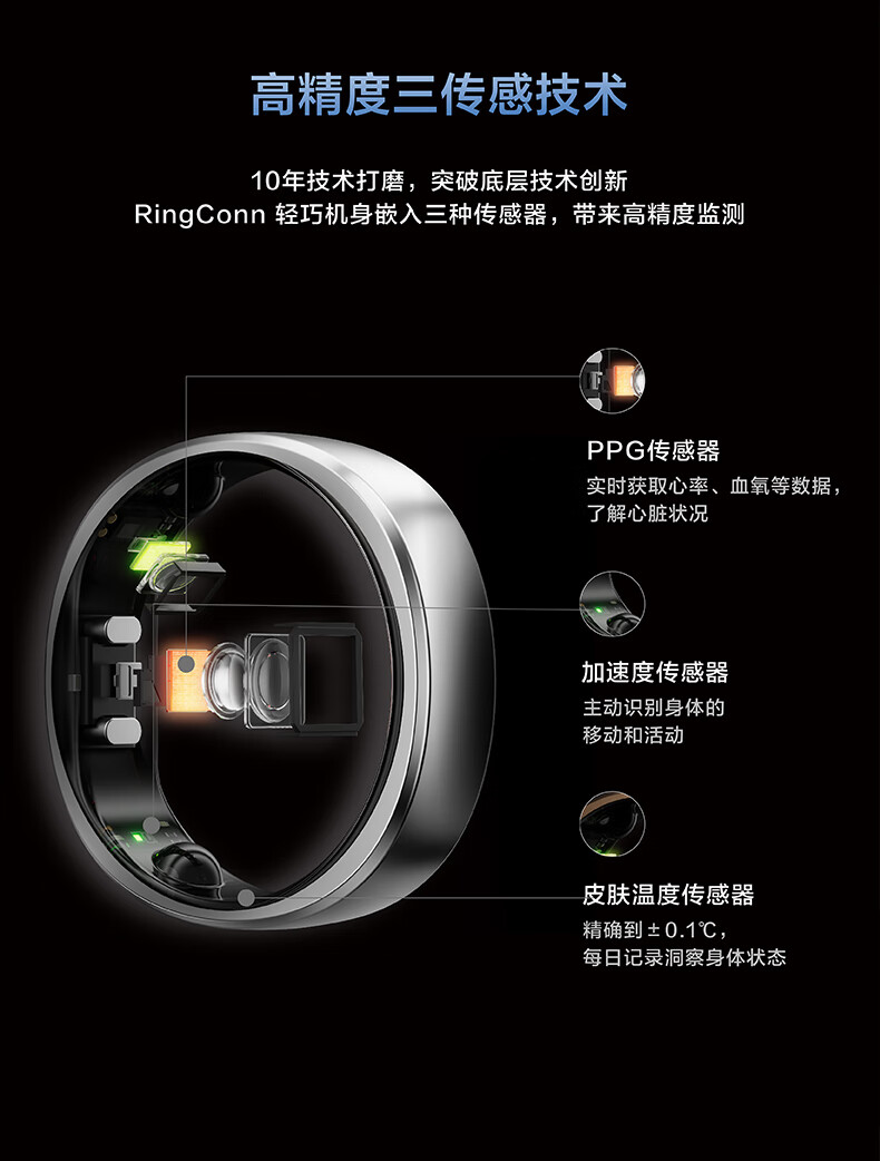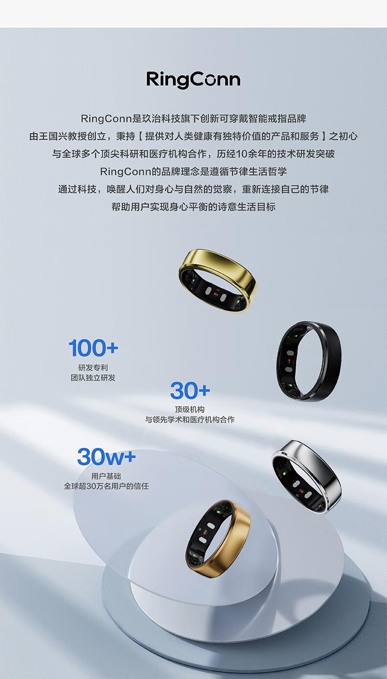 RingConn Gen 2 智能戒指 睡眠呼吸暂停监测心率异变血氧女性生理期预测 健康指导12天长续航 未来银9号