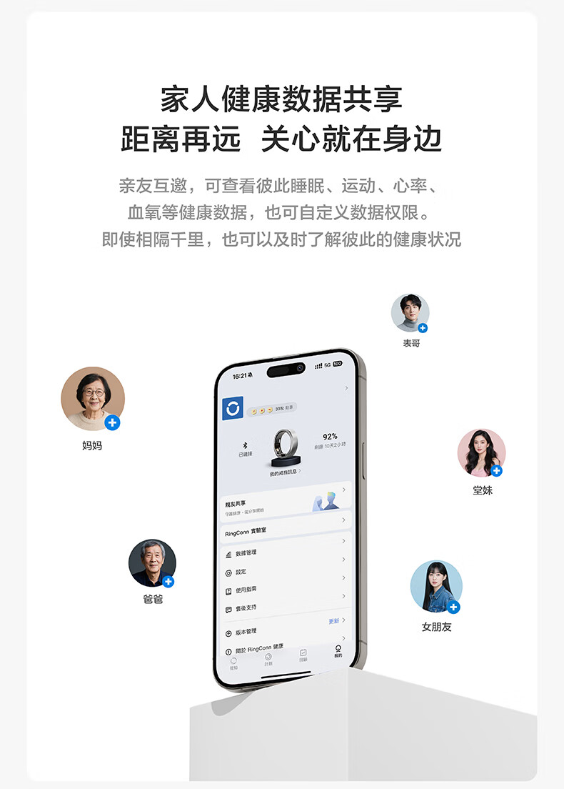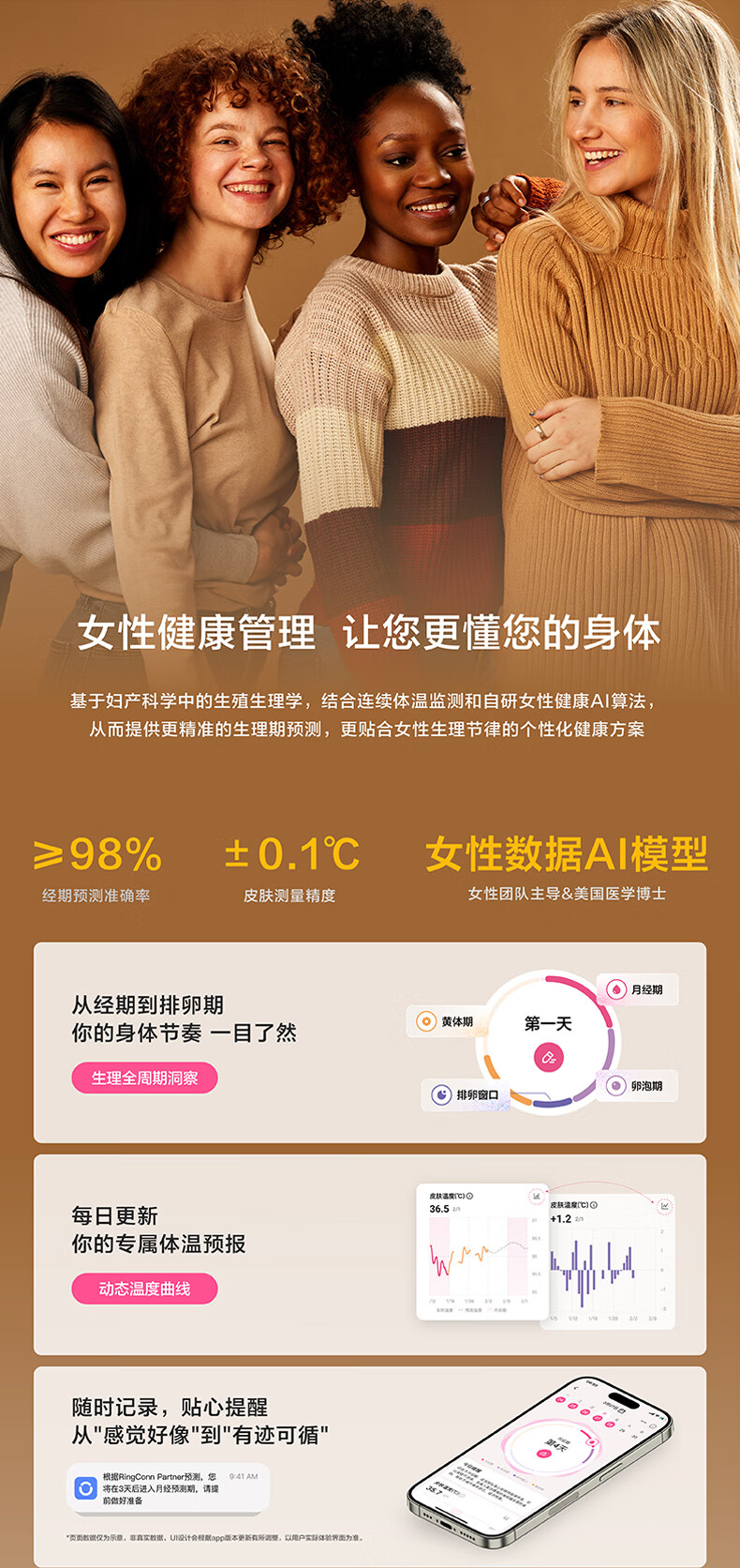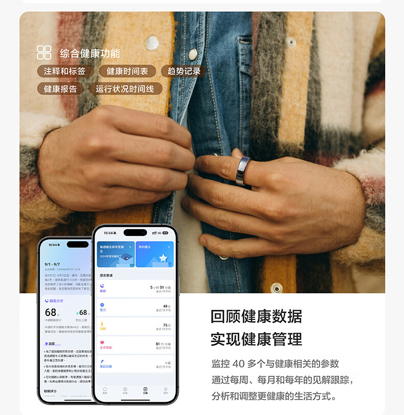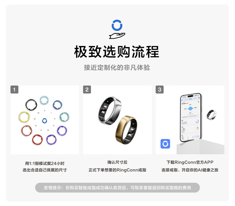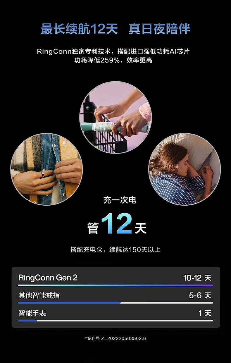 RingConn Gen 2 智能戒指 睡眠呼吸暂停监测心率异变血氧女性生理期预测 健康指导12天长续航 未来银9号