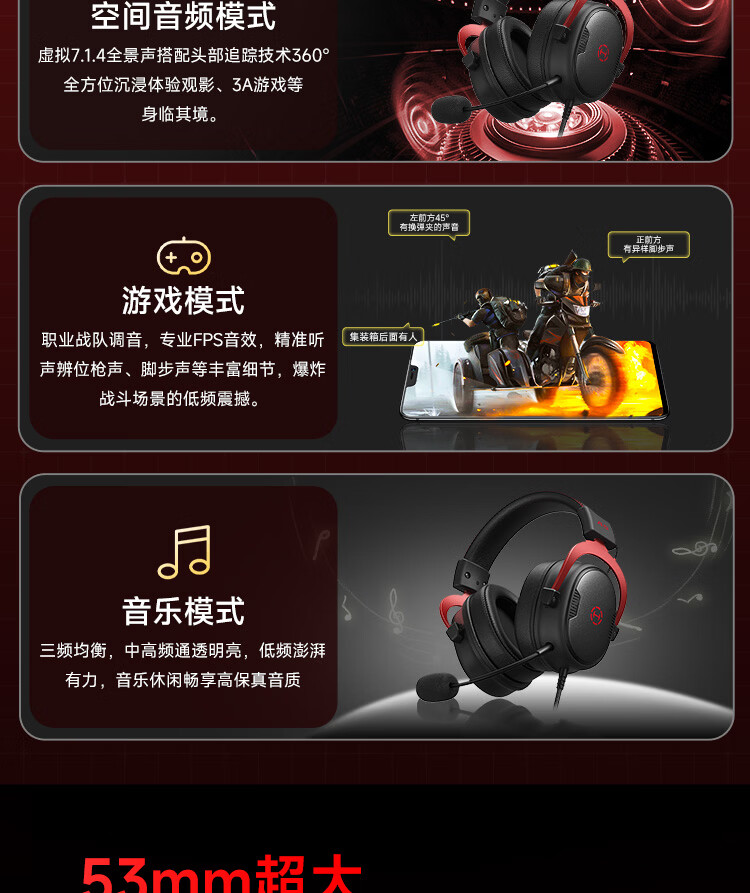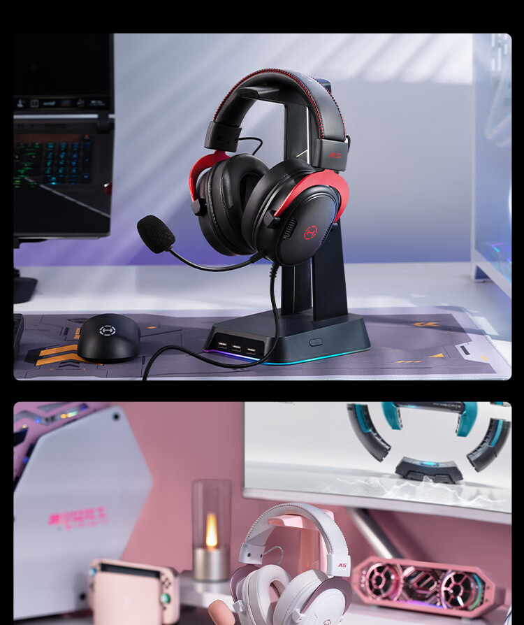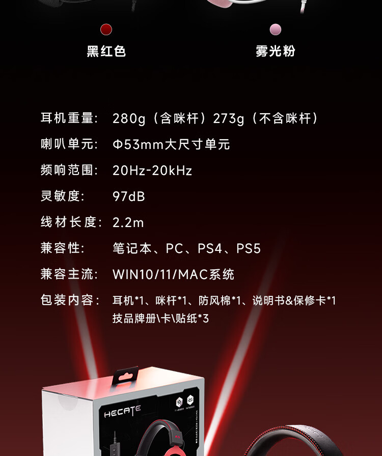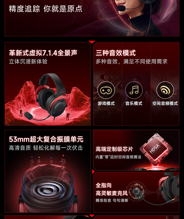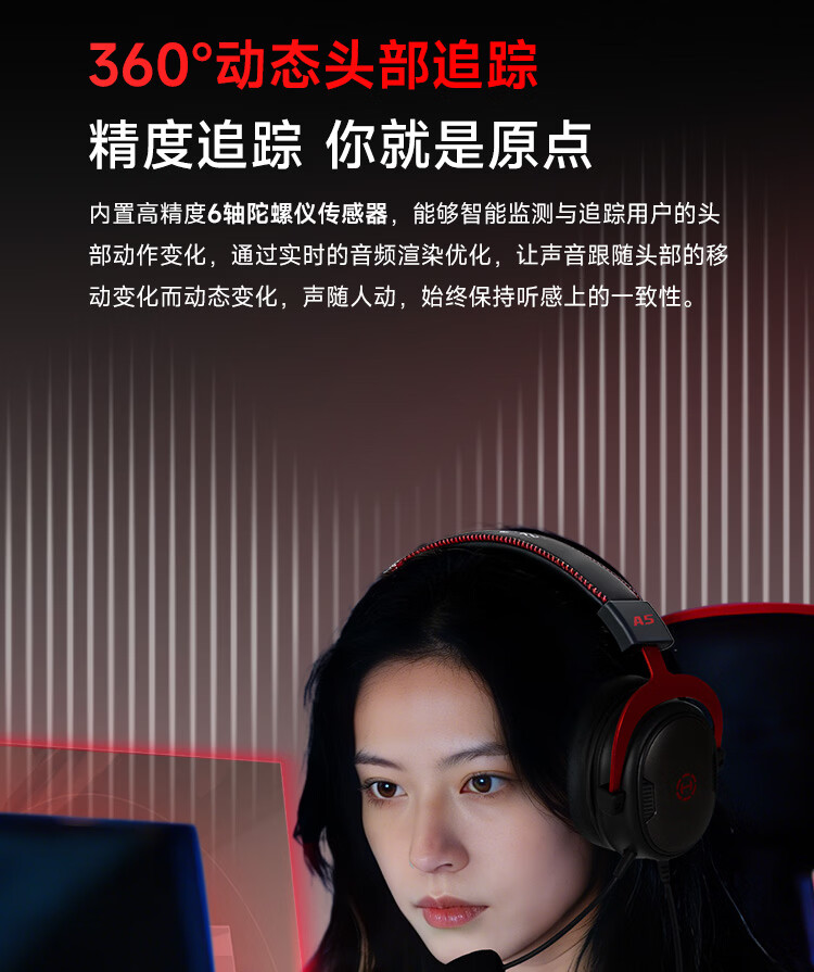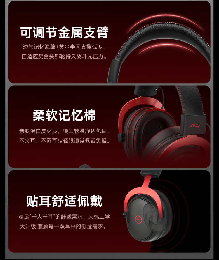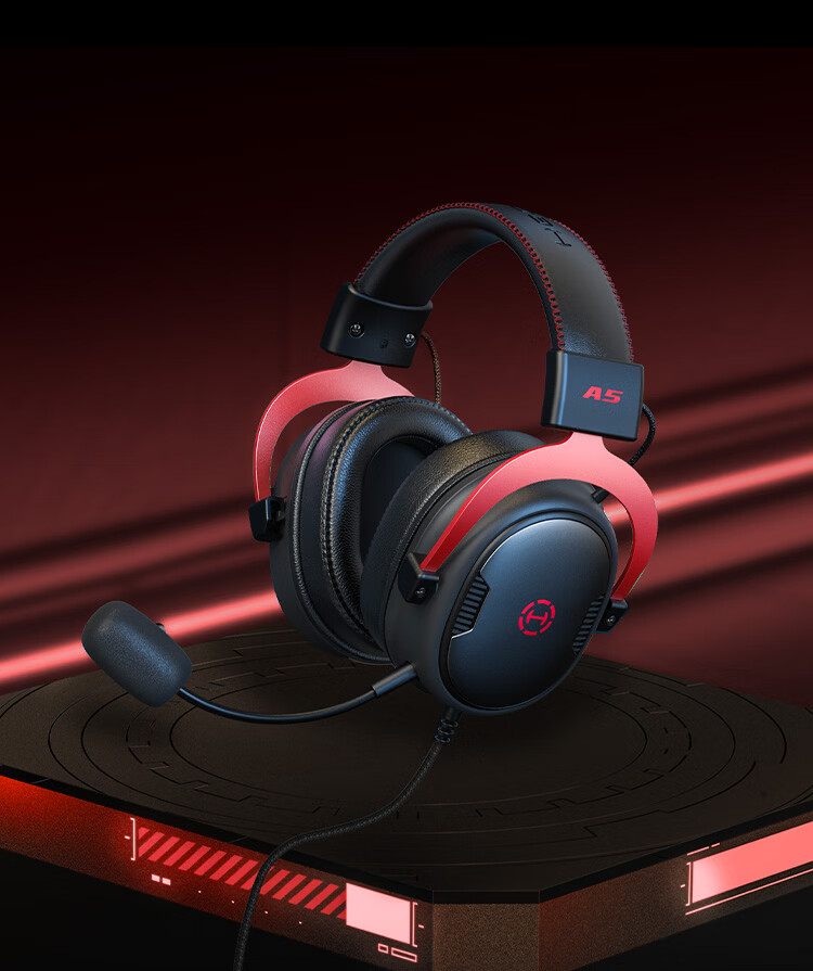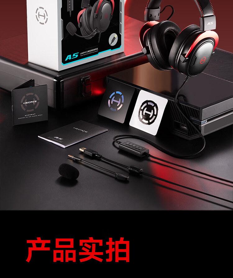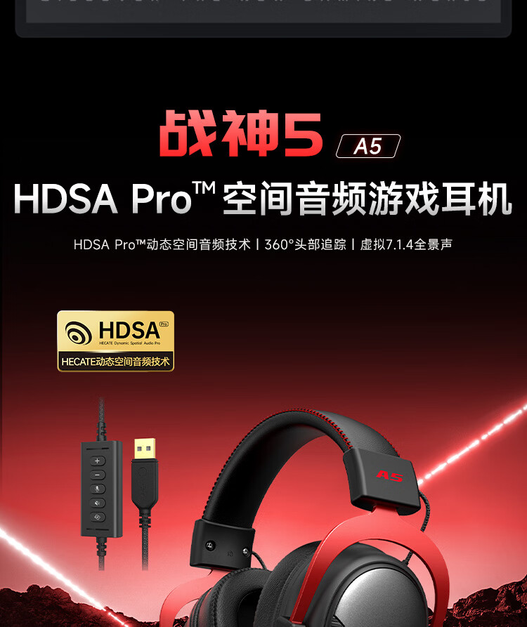 漫步者(EDIFIER)HECATE战神5头戴式游戏有线耳机电竞赛事专用台式电脑耳麦麦克风吃鸡fpsA5空间音频USB7.1.4陀螺仪 黑红色+耳机支架+晒单赢红包