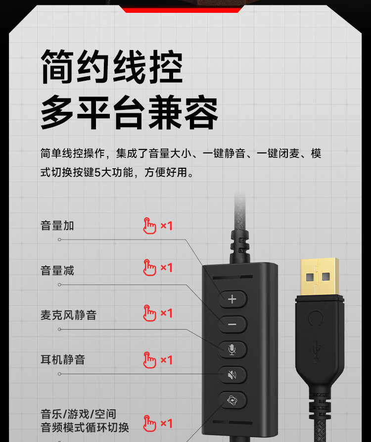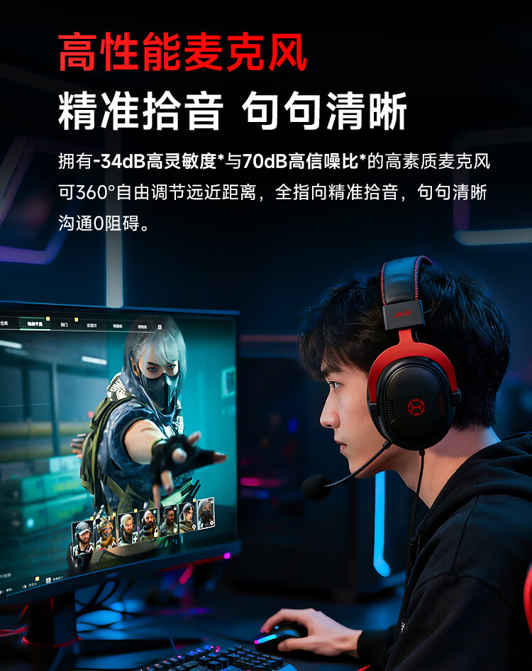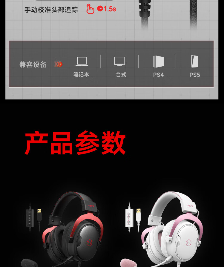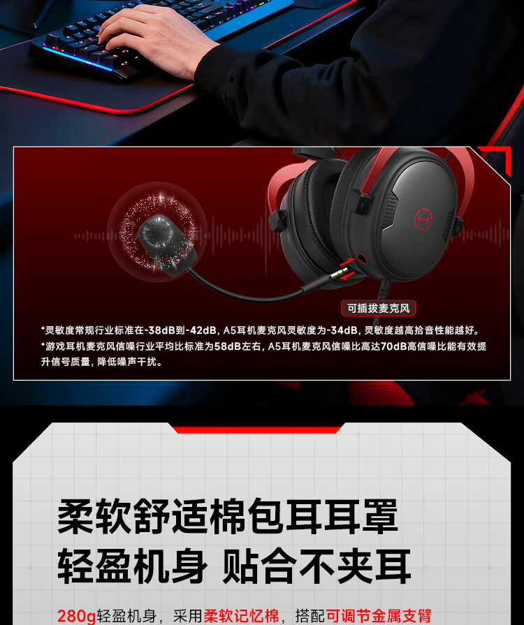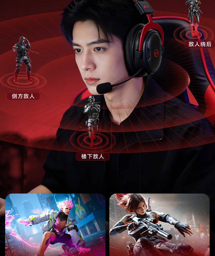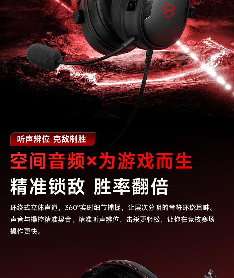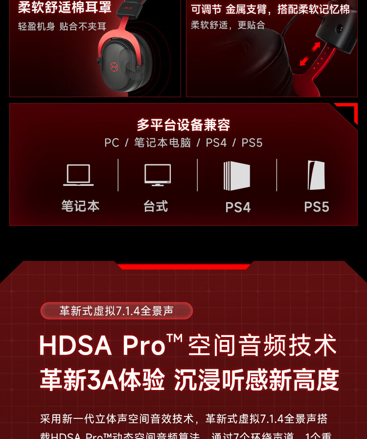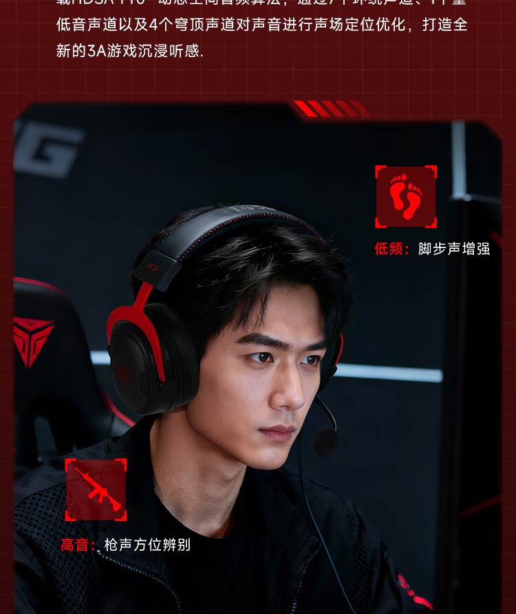 漫步者(EDIFIER)HECATE战神5头戴式游戏有线耳机电竞赛事专用台式电脑耳麦麦克风吃鸡fpsA5空间音频USB7.1.4陀螺仪 黑红色+耳机支架+晒单赢红包