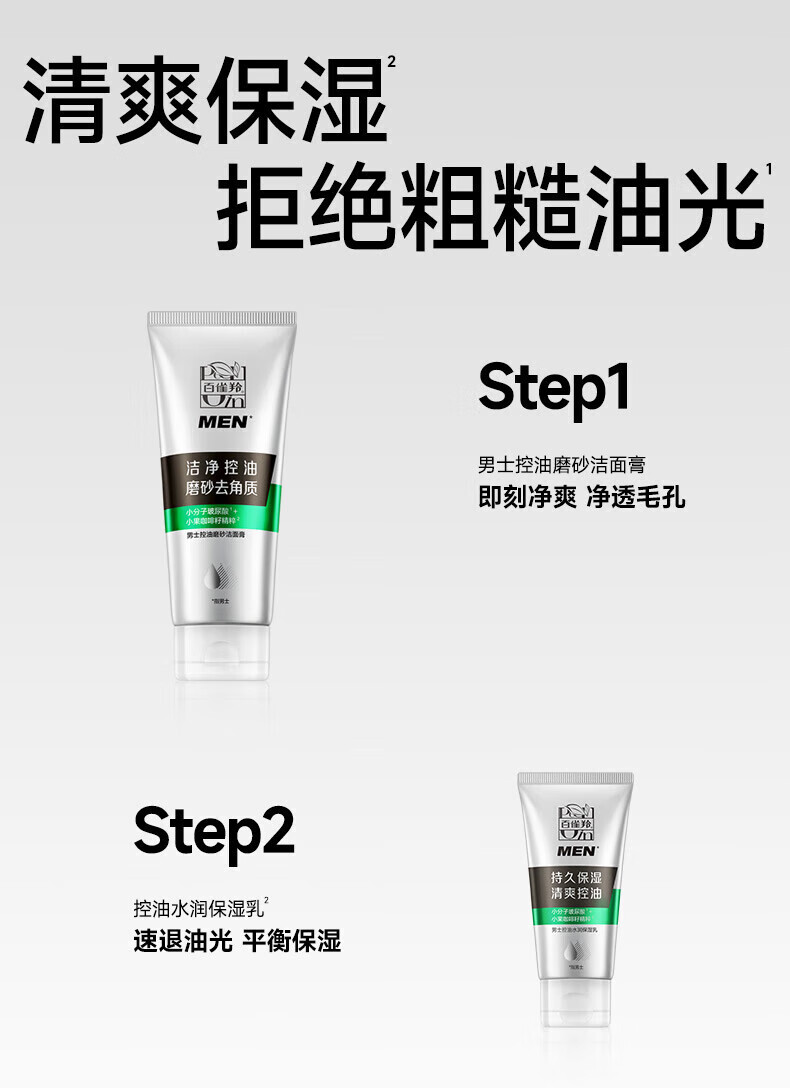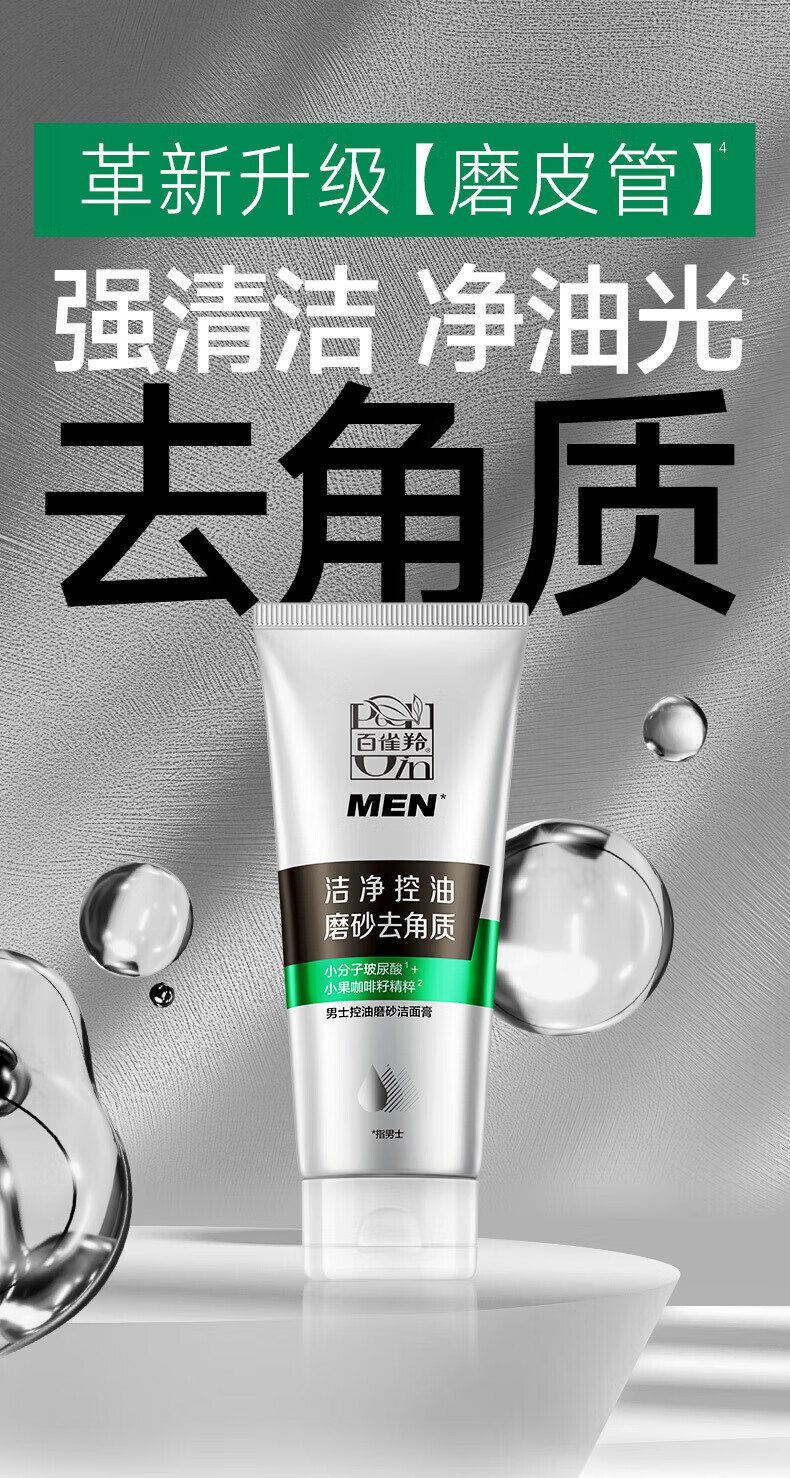 百雀羚洗面奶男士护肤品控油磨砂洁面膏套装(140G+40G)清洁去角质保湿乳