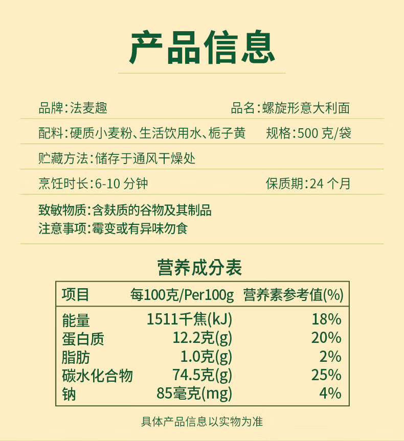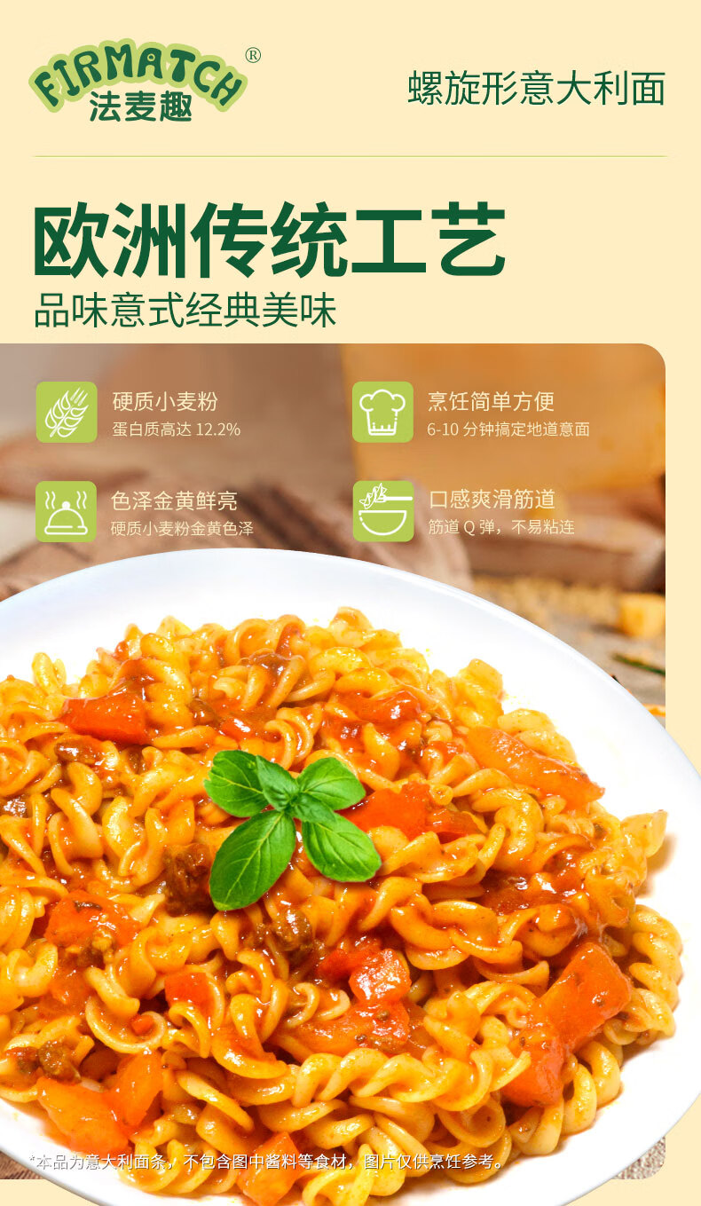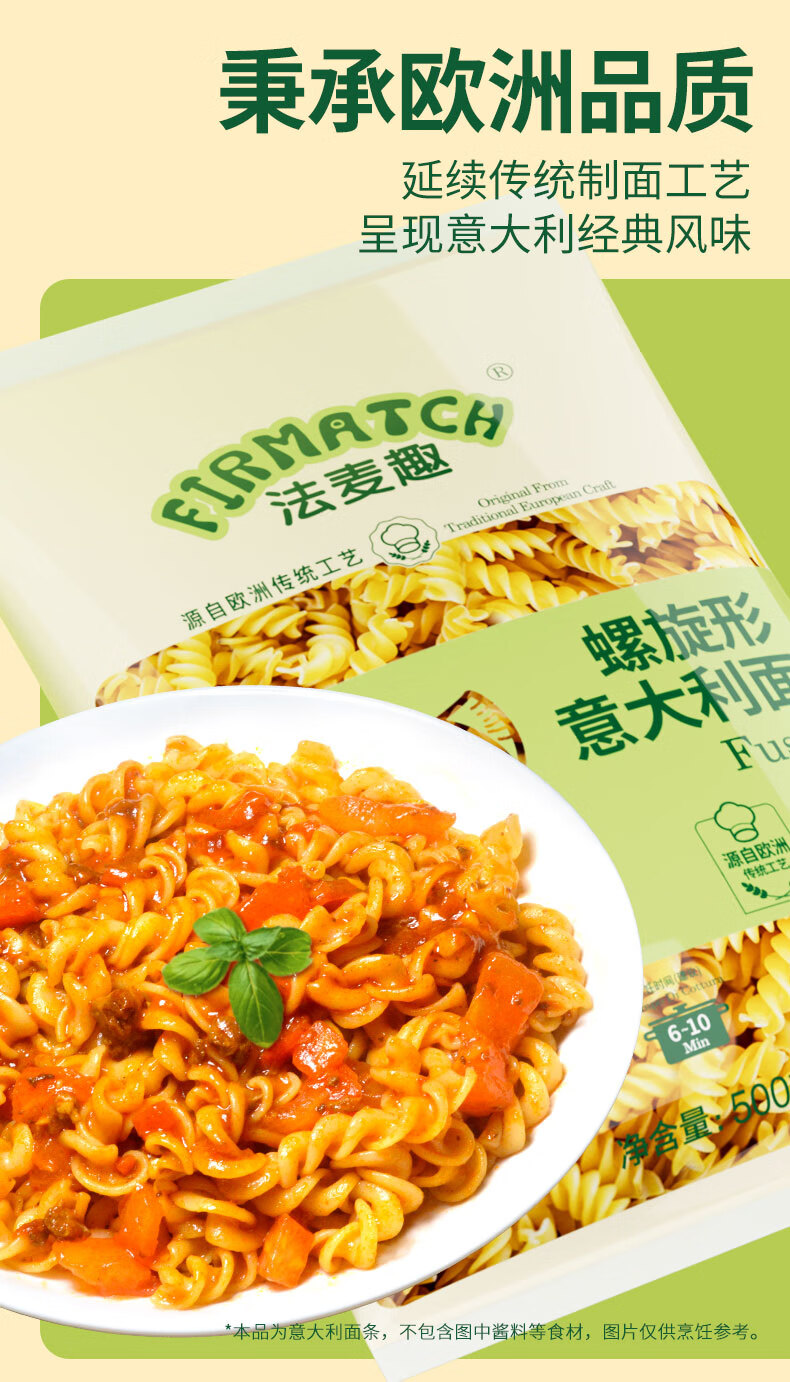 法麦趣(FIRMATCH)螺旋形意大利面500g 螺丝形意面儿童早餐面条 速食面意粉 通心粉