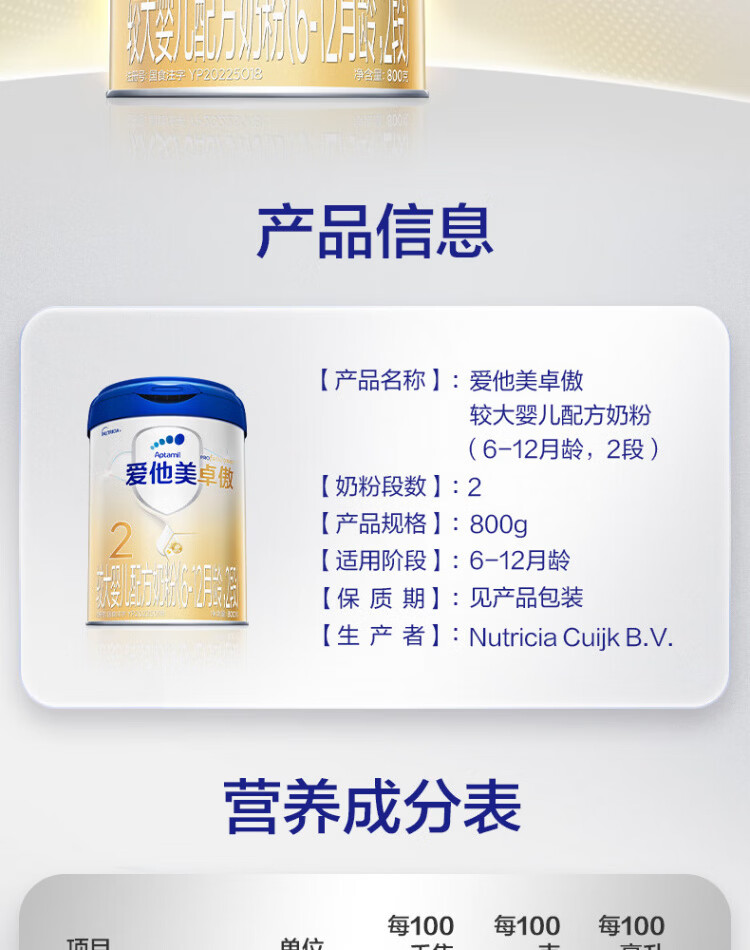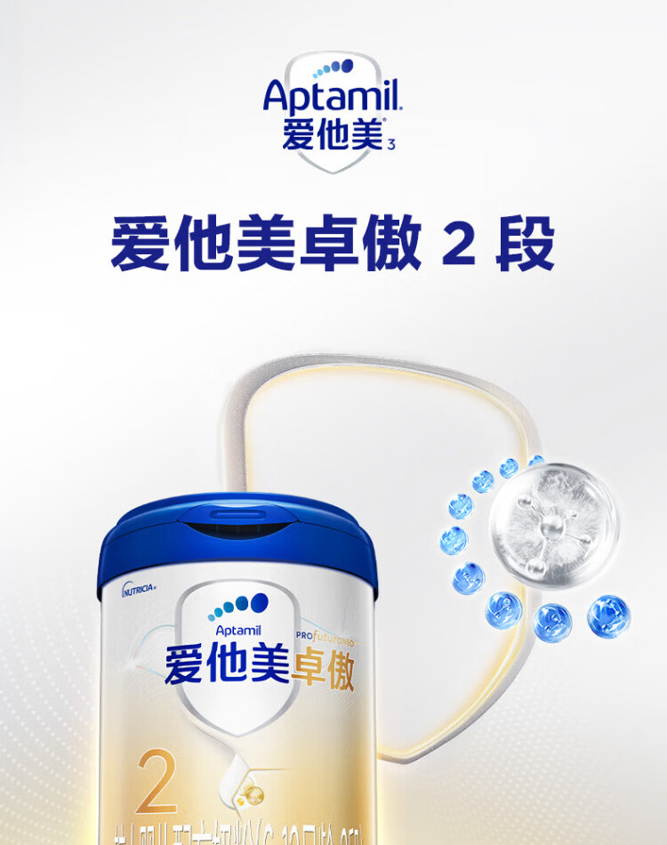 爱他美(Aptamil)卓傲2段较大婴儿配方奶粉(6—12月) 800g*1罐(0元入会)