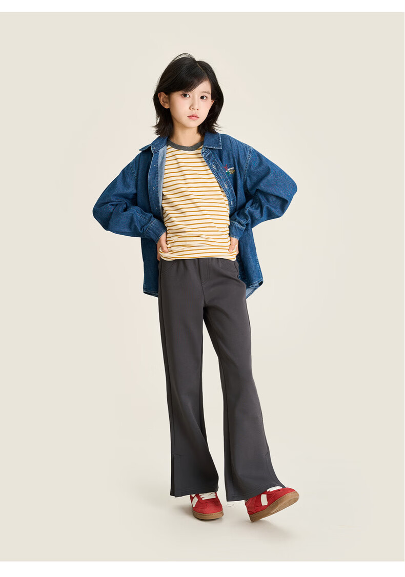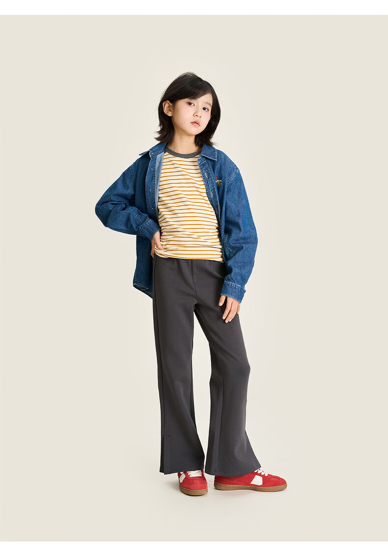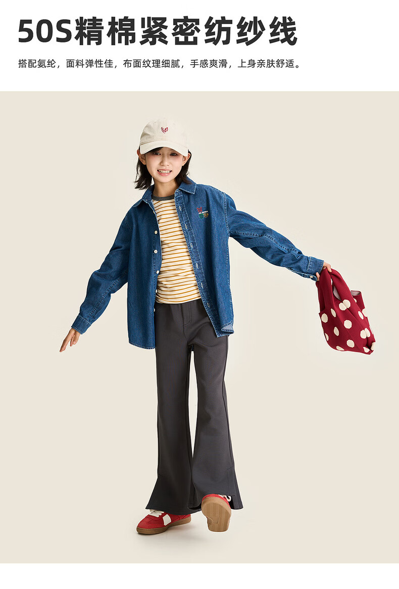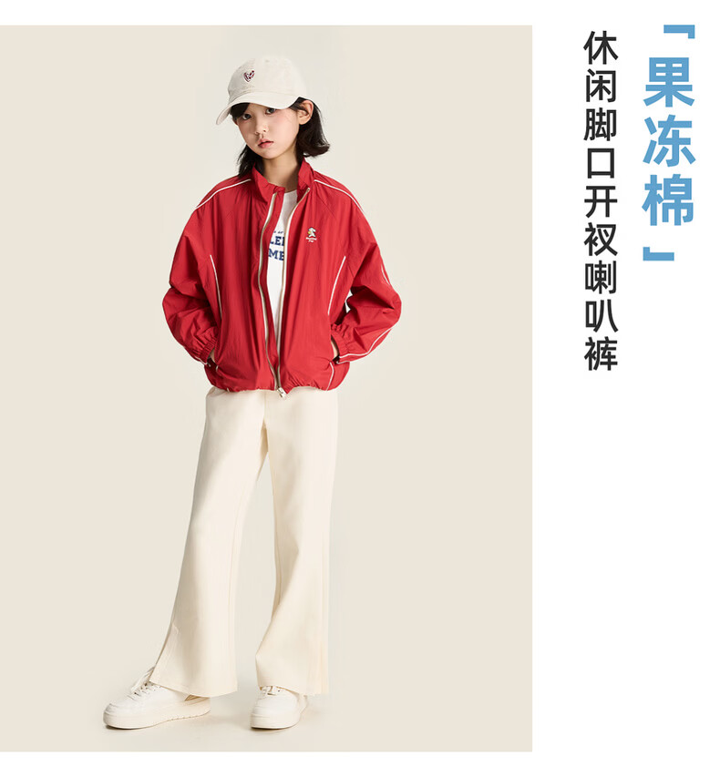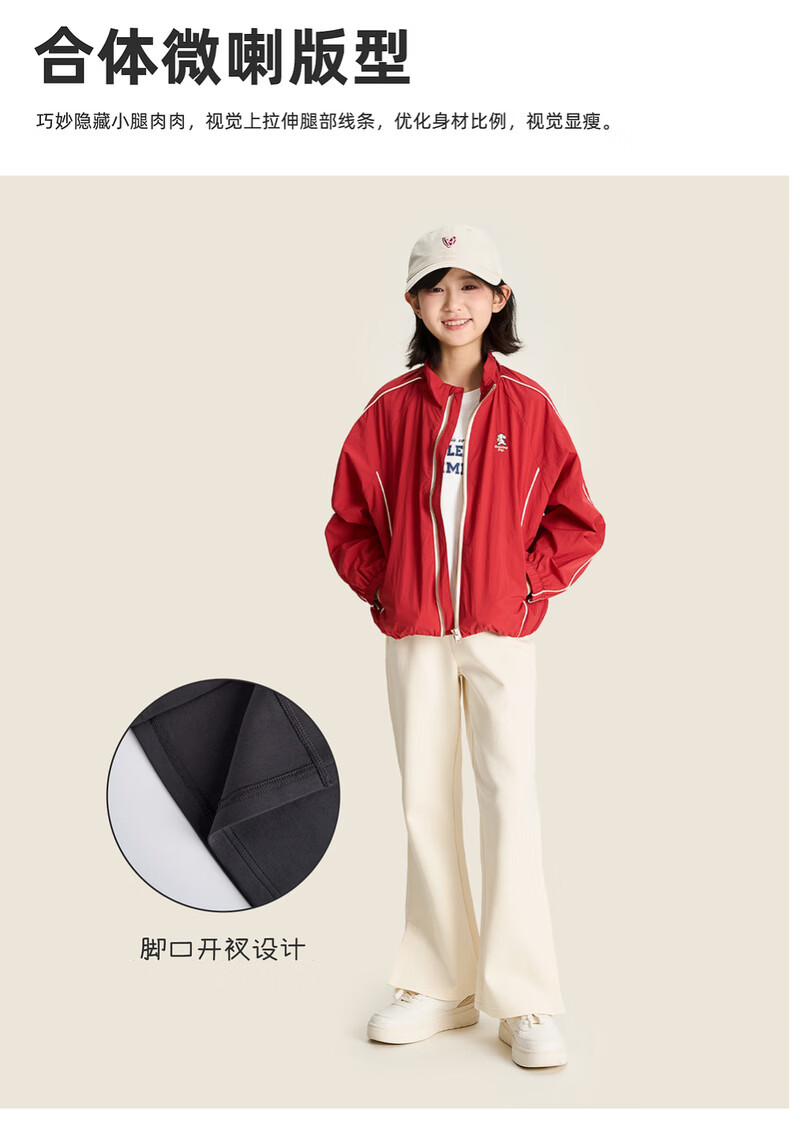 棉叔叔【果冻棉喇叭裤】女童2026春季新品时尚好搭脚口开叉喇叭裤子 米白 120 120