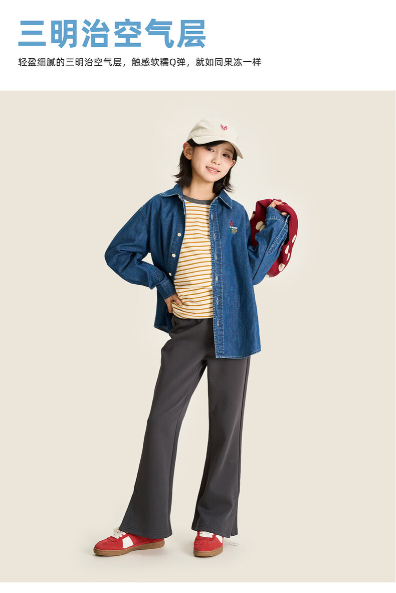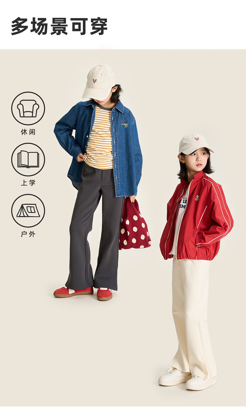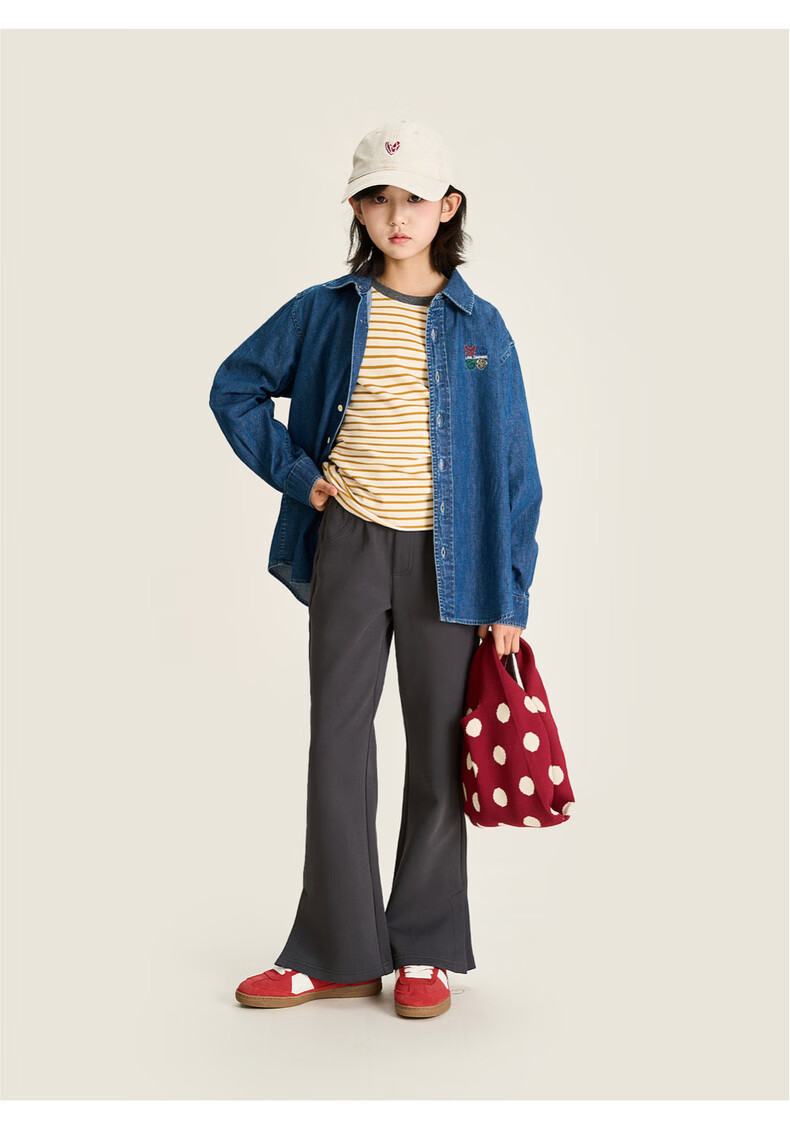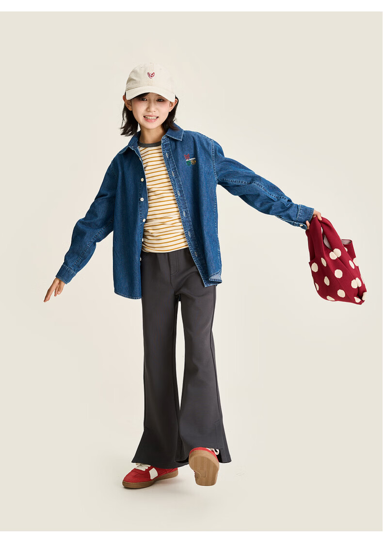棉叔叔【果冻棉喇叭裤】女童2026春季新品时尚好搭脚口开叉喇叭裤子 米白 120 120
