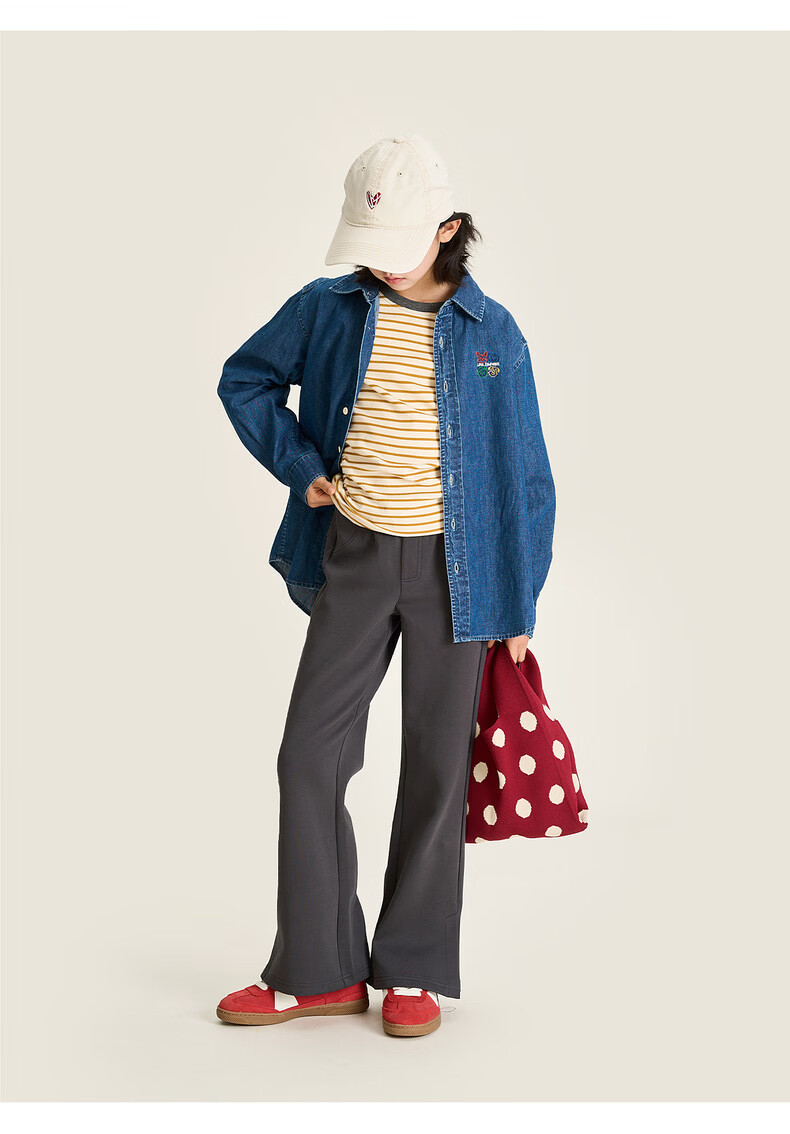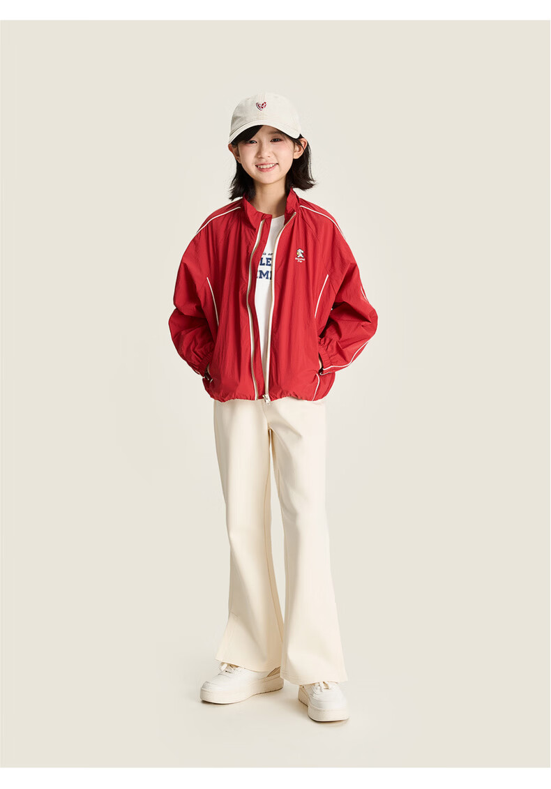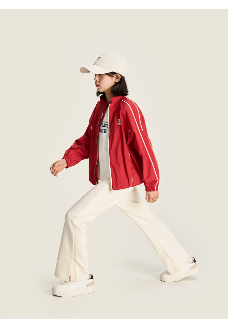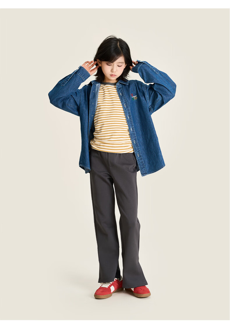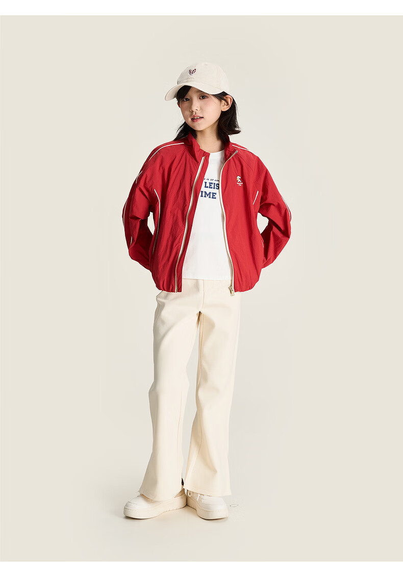 棉叔叔【果冻棉喇叭裤】女童2026春季新品时尚好搭脚口开叉喇叭裤子 米白 120 120