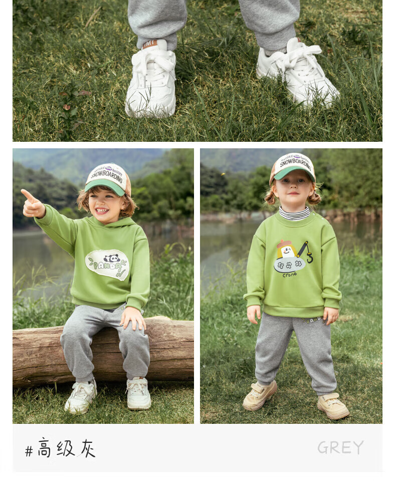 嘟嘟家女童春季休闲套装女孩针织两件套春款蝴蝶外套运动裤两件套童装 麻灰 120