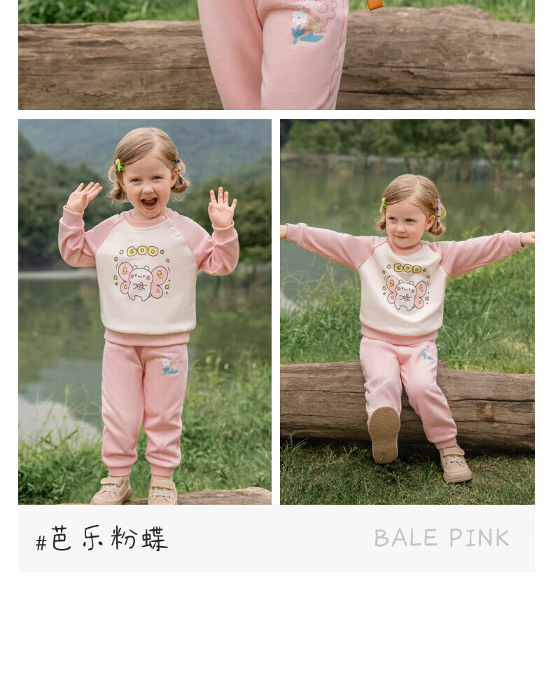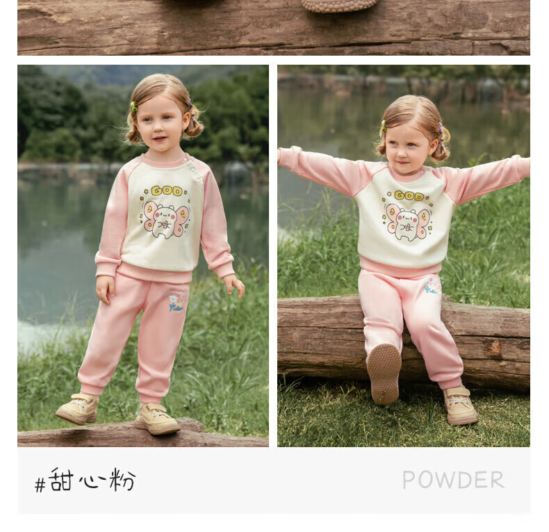 361°童装男女针织套装秋冬长袖新款保暖睡衣儿童休闲居家服 杏花粉 175