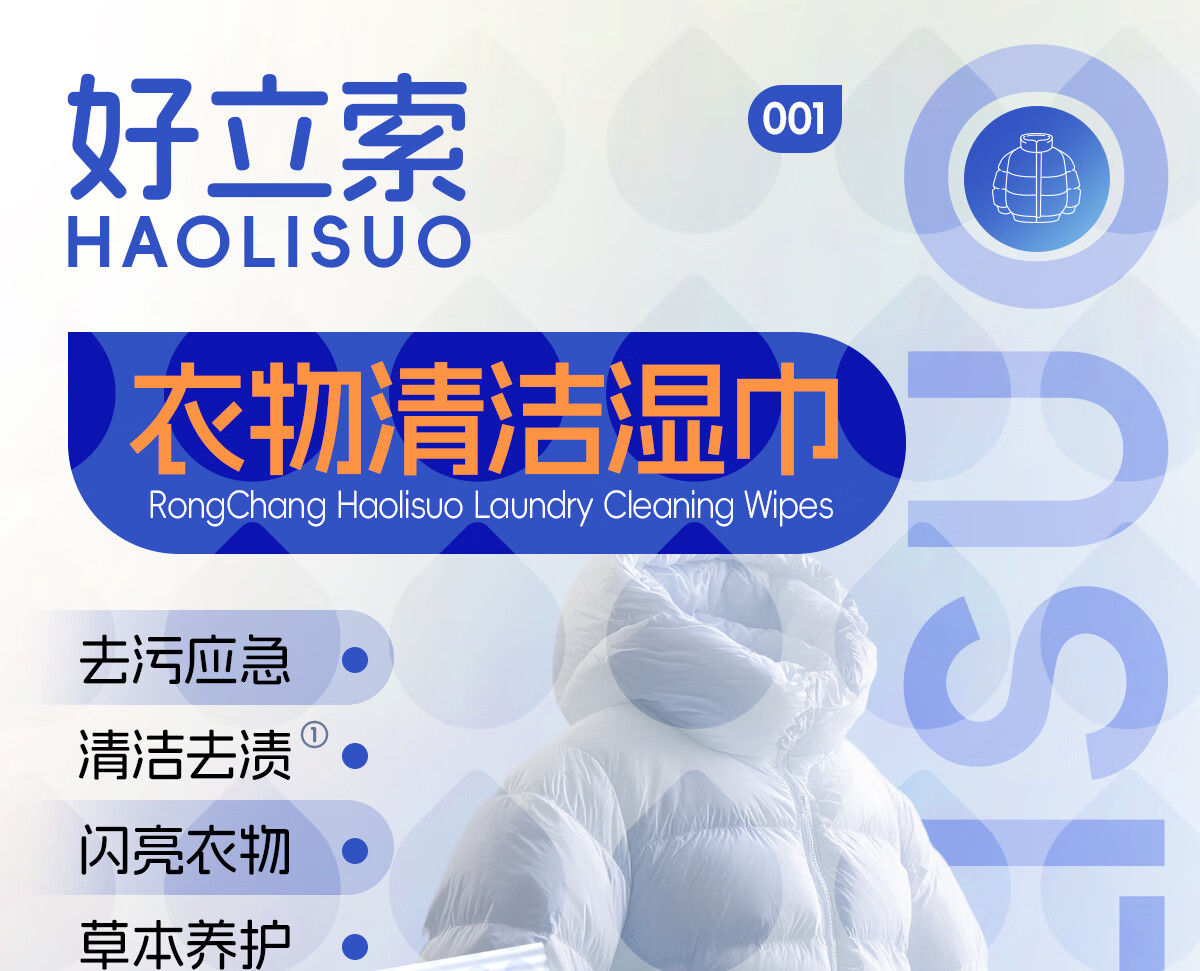 好立索羽绒服专用免水洗清洁湿巾擦衣物清洗强力去污去油渍神器 26片*1包(赠10抽*5包)
