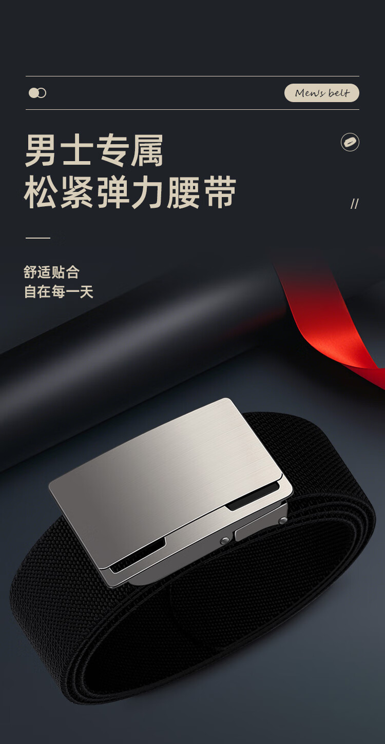 歌带盾皮带男士松紧弹力腰带休闲百搭青年学生潮流工装休闲军训裤带简约 黑色【银扣】 160cm