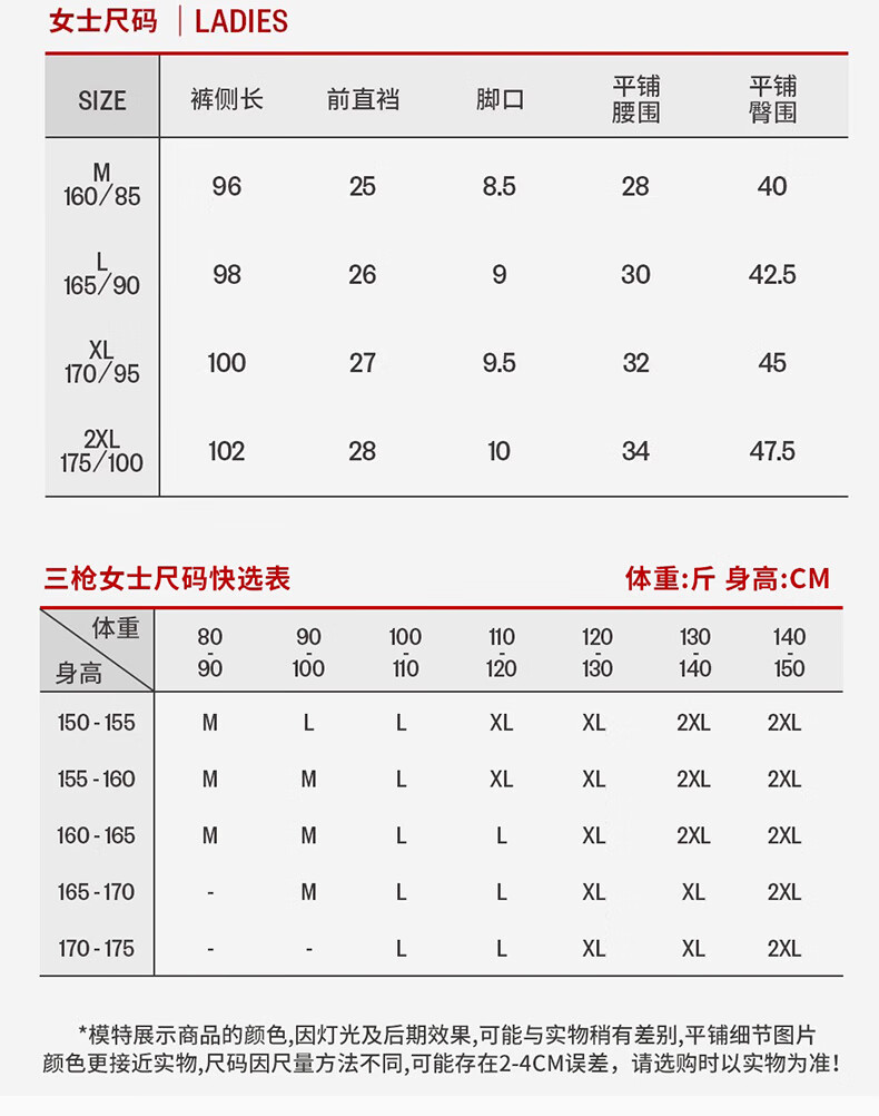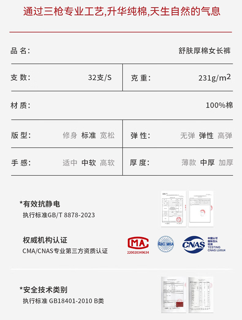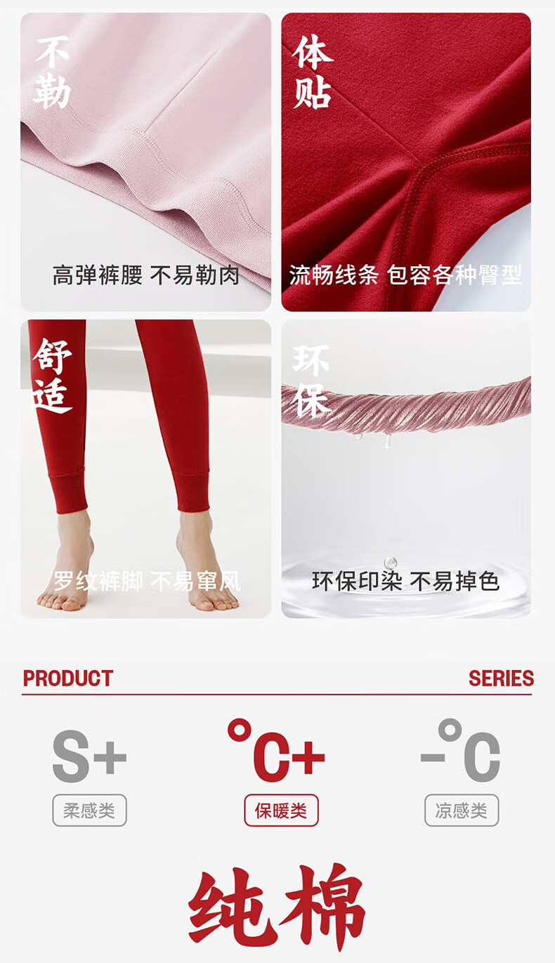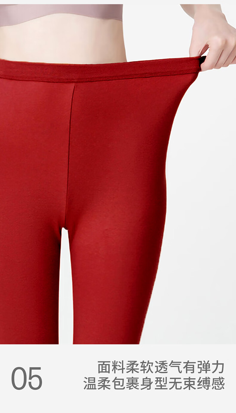 三枪秋冬中老年女士高腰大码宽松防寒秋裤柔软纯棉保暖裤线裤长裤 樱桃红 XL