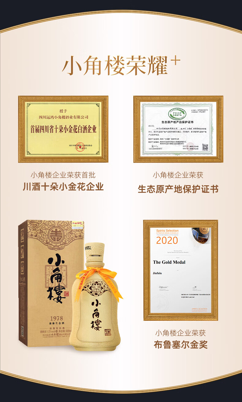 小角楼川酒 浓香型白酒 中华老字号 粮食酒 自饮宴席送礼 52度 2500mL 2坛 楼中情私藏 整箱装