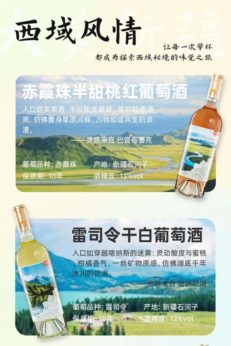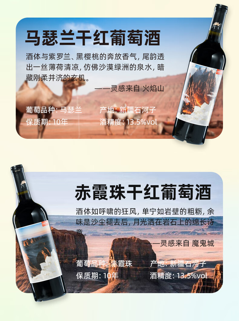 沙地酒庄大美新疆葡萄酒西域风土6种口感组合装国产红酒宴请送礼自饮礼盒 750ml*6(礼盒装)