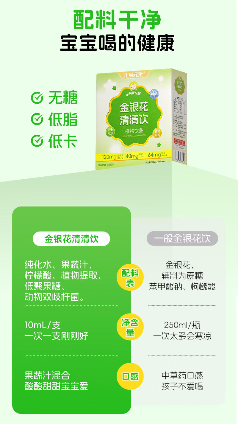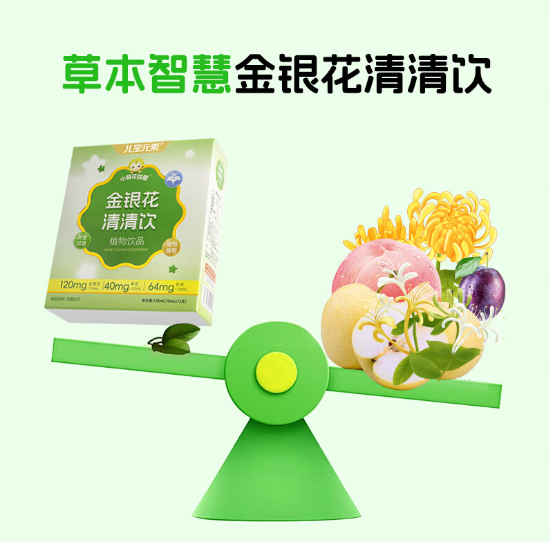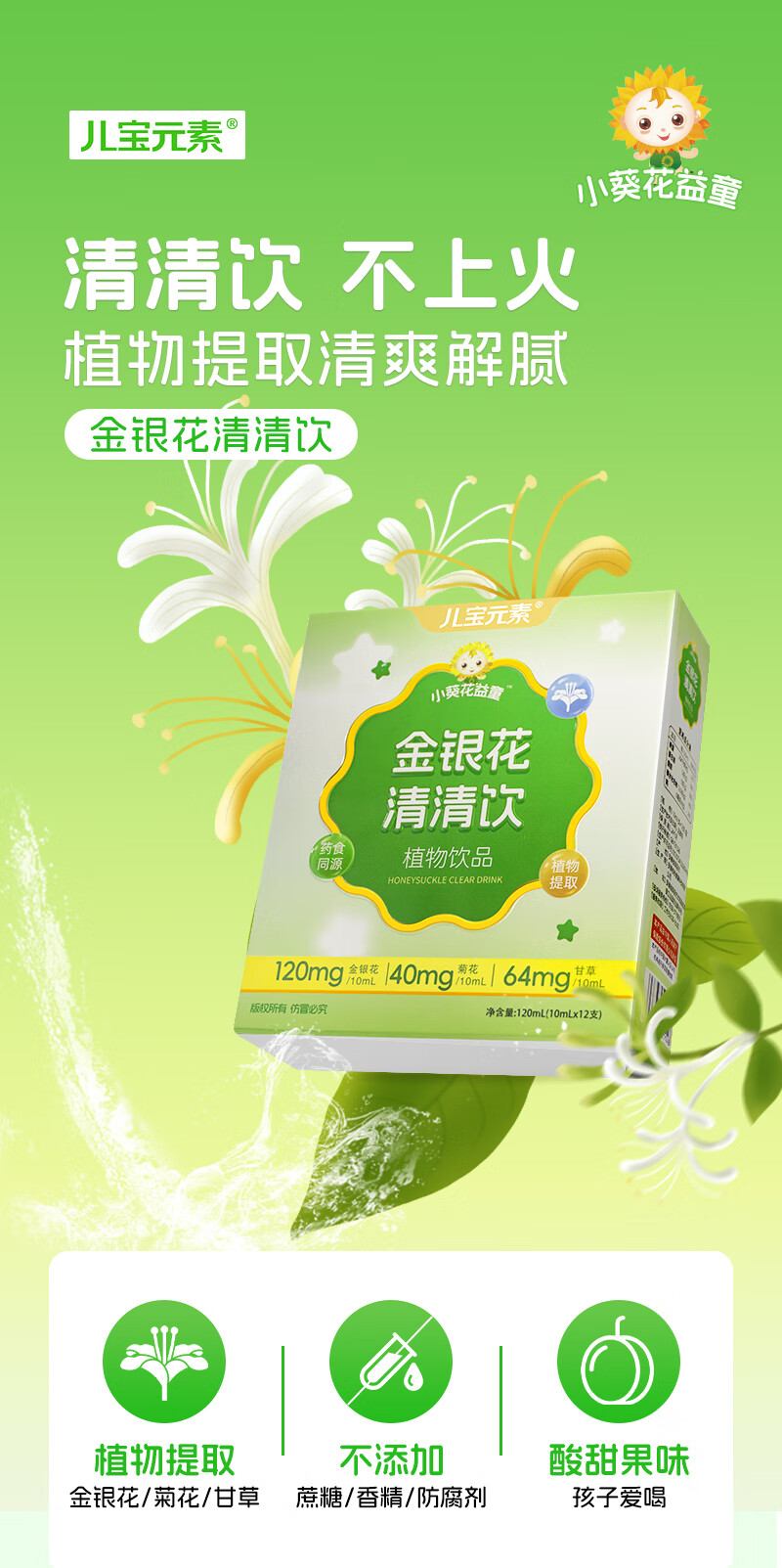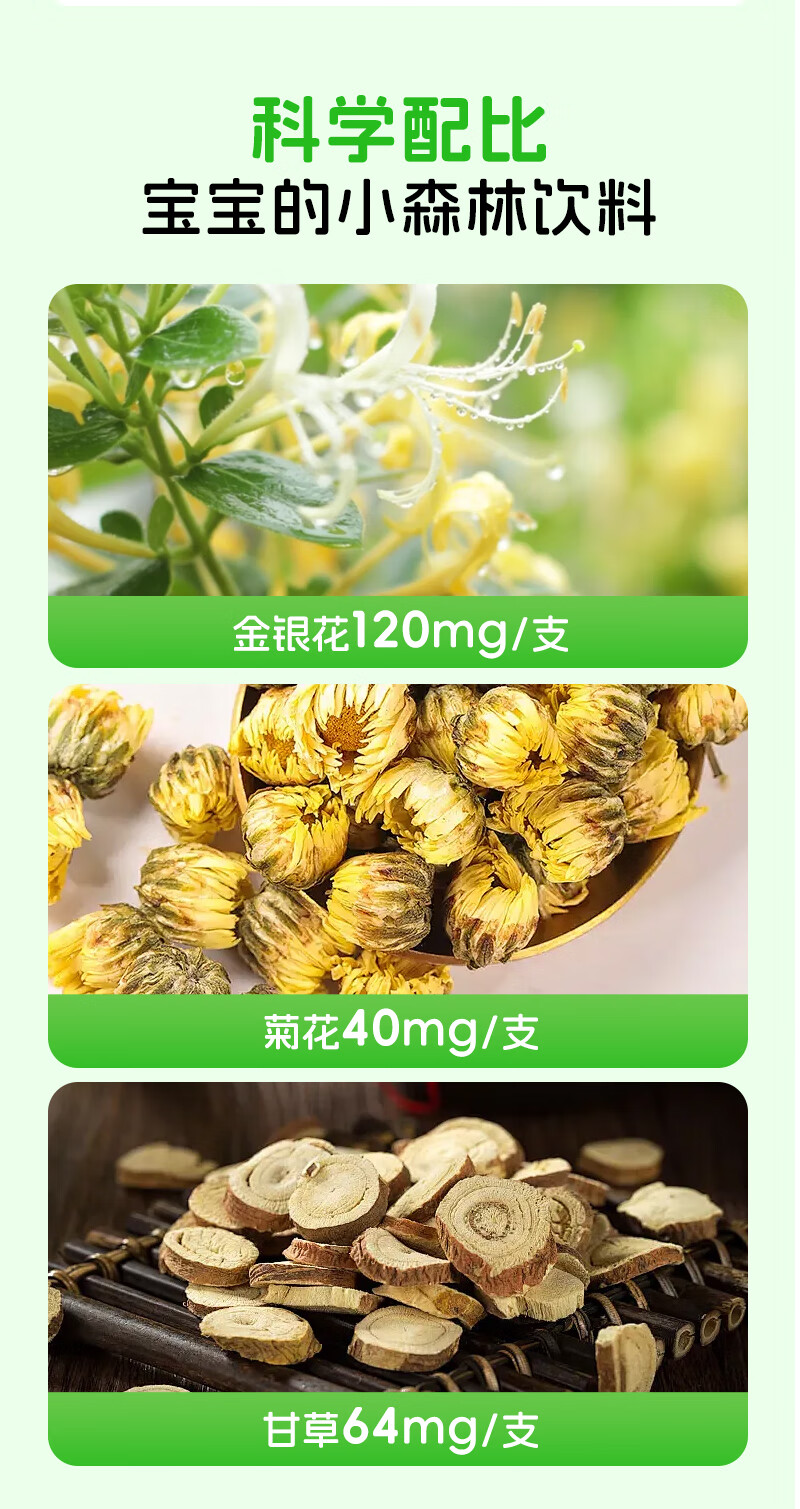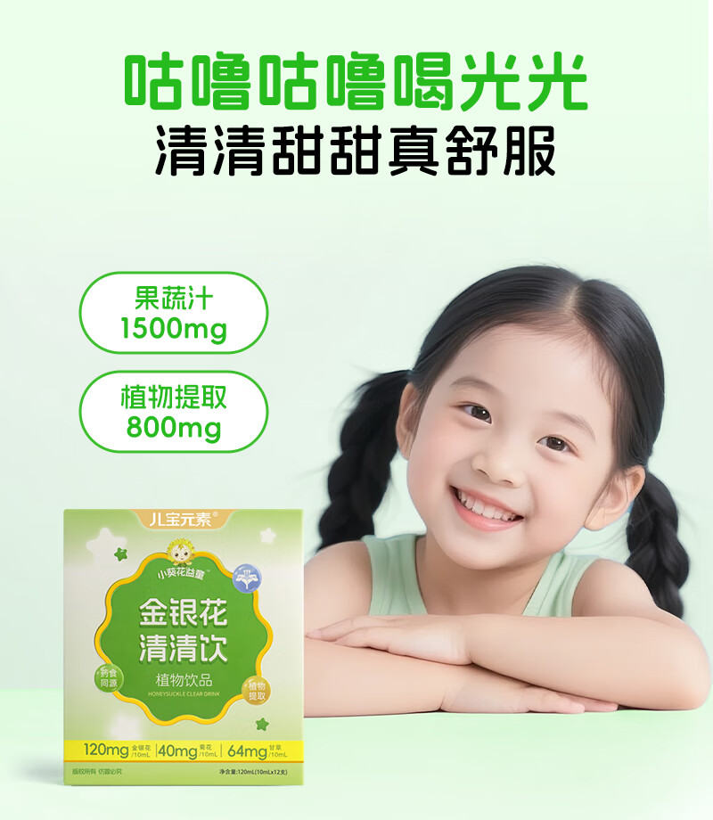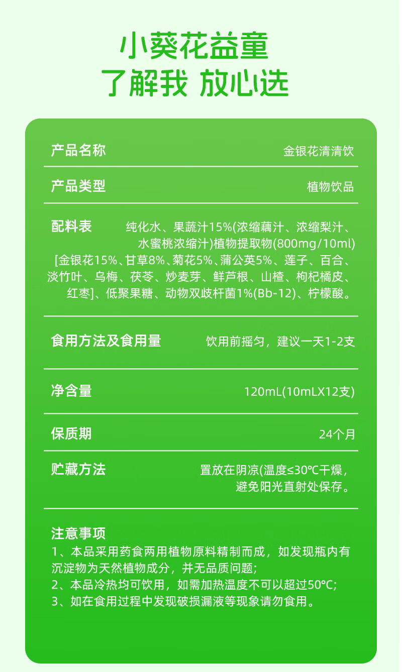小葵花益童金银花清清饮儿童草本植物饮料益生元益生菌清凉果蔬汁水果汁饮品 12支*6盒 【赠1盒金银花】